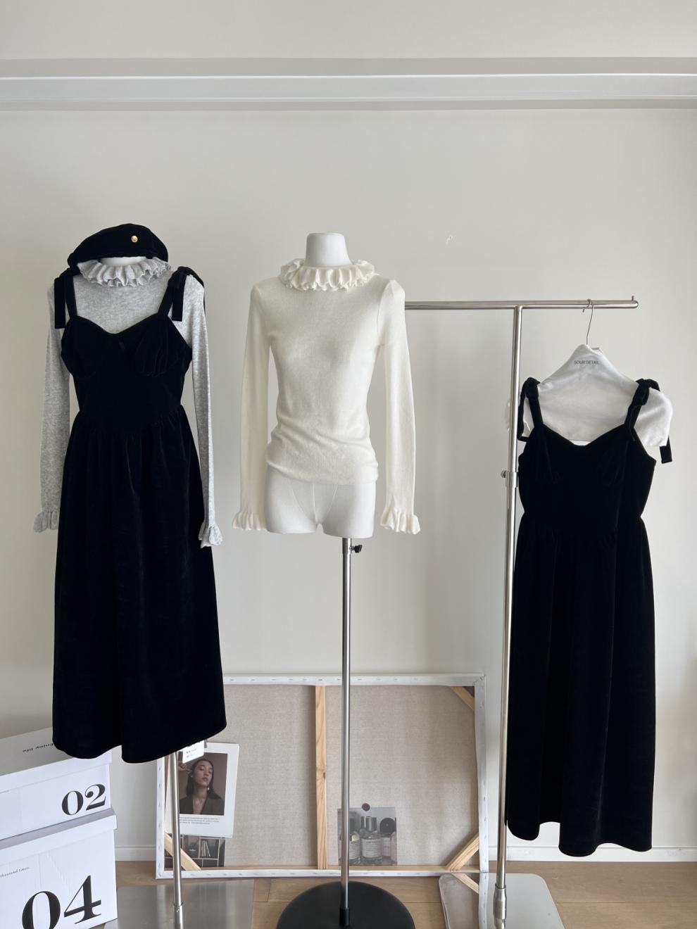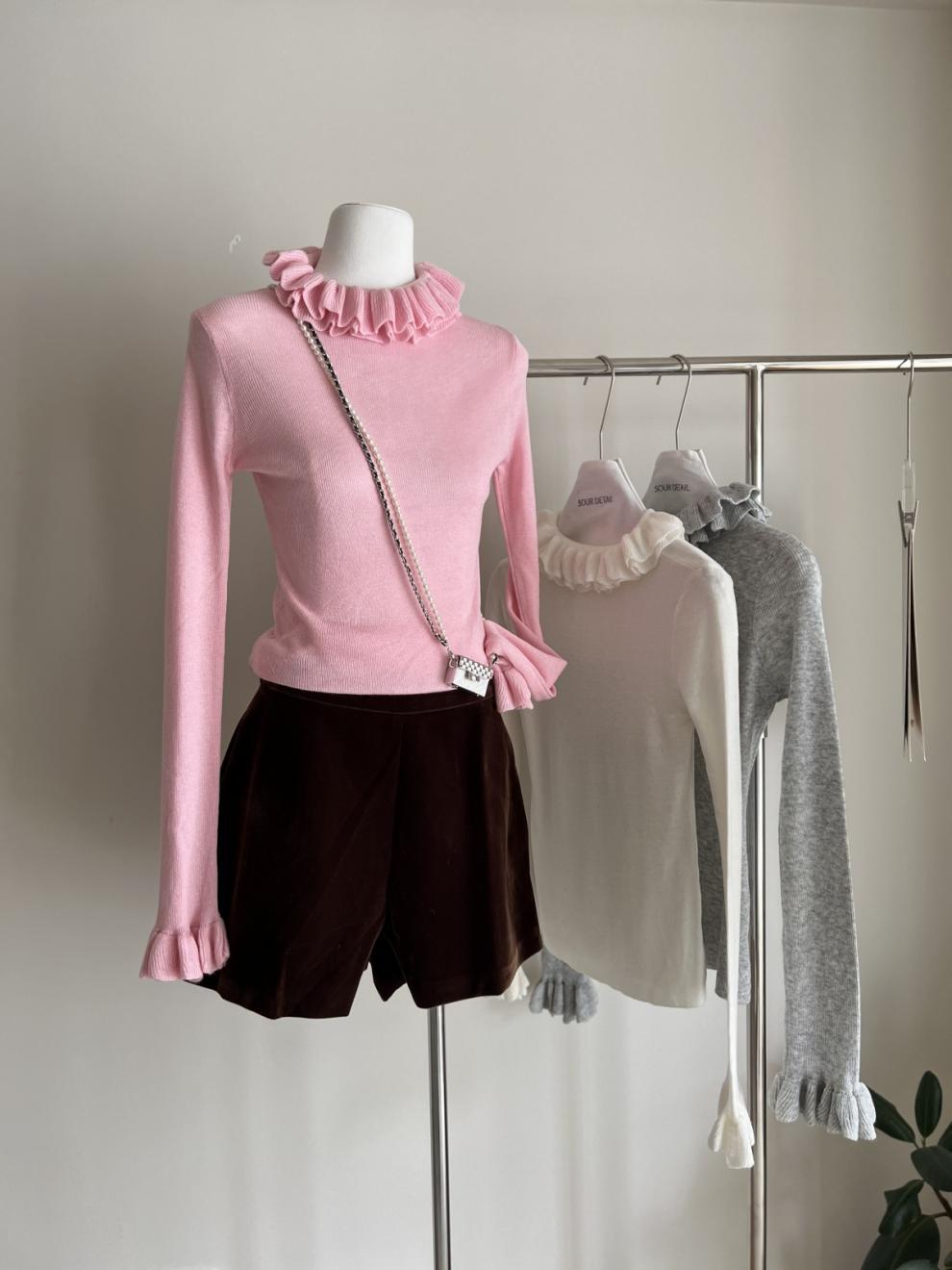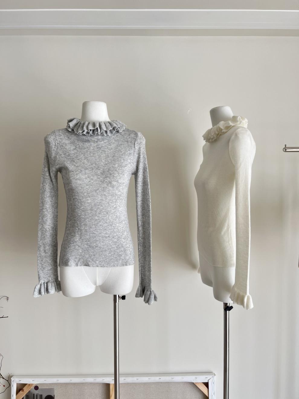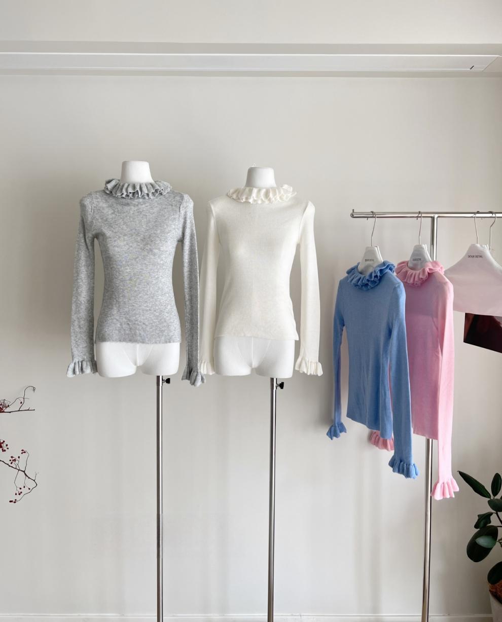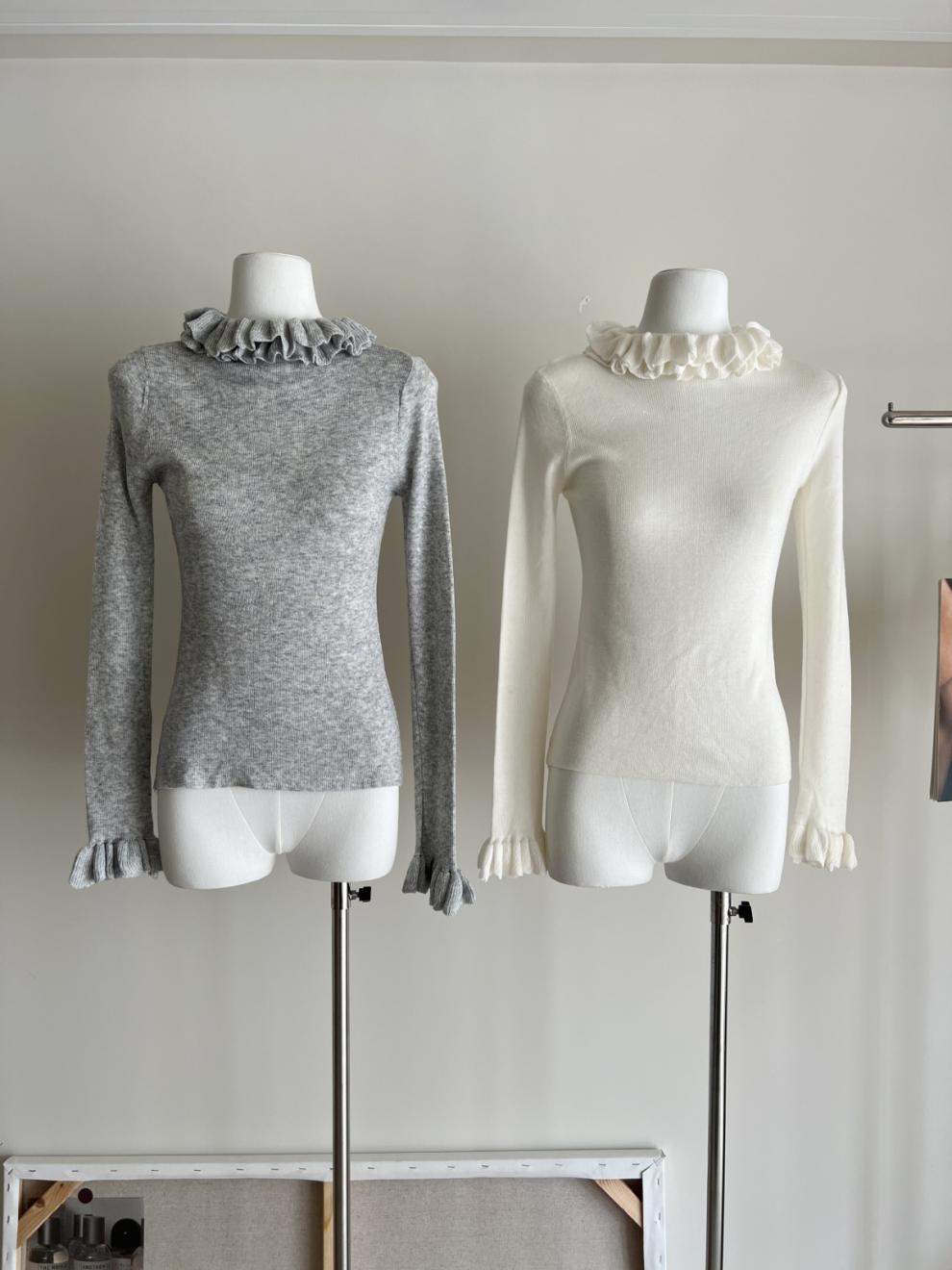 달콤한 나이를 줄이는 연꽃 칼라 더블 레이스 옷깃 슬림 핏 니트 스웨터 우아한 슬리밍 경량 베이스 셔츠 여성용 탑스토어 가기