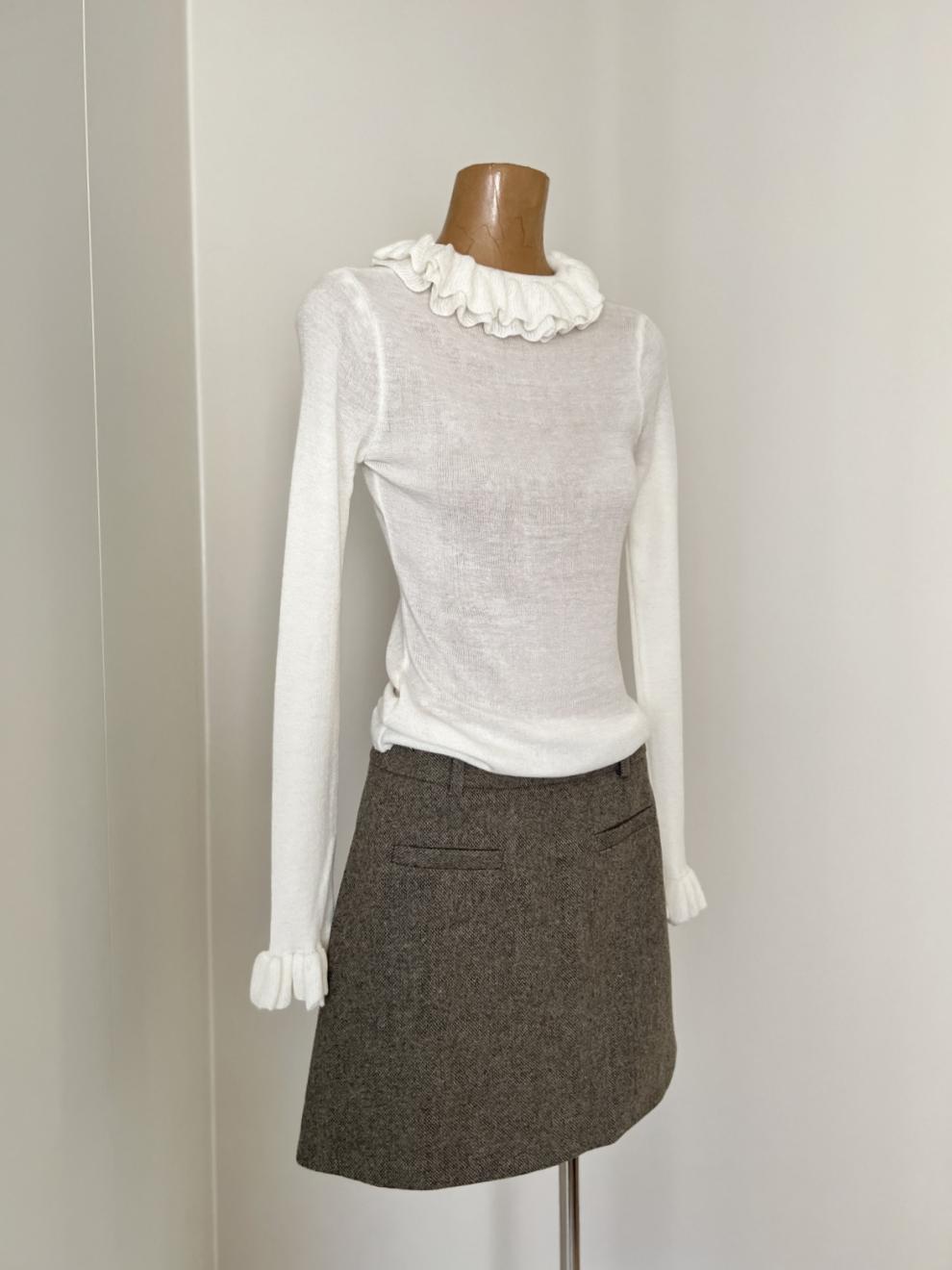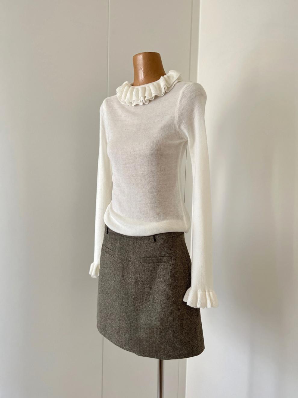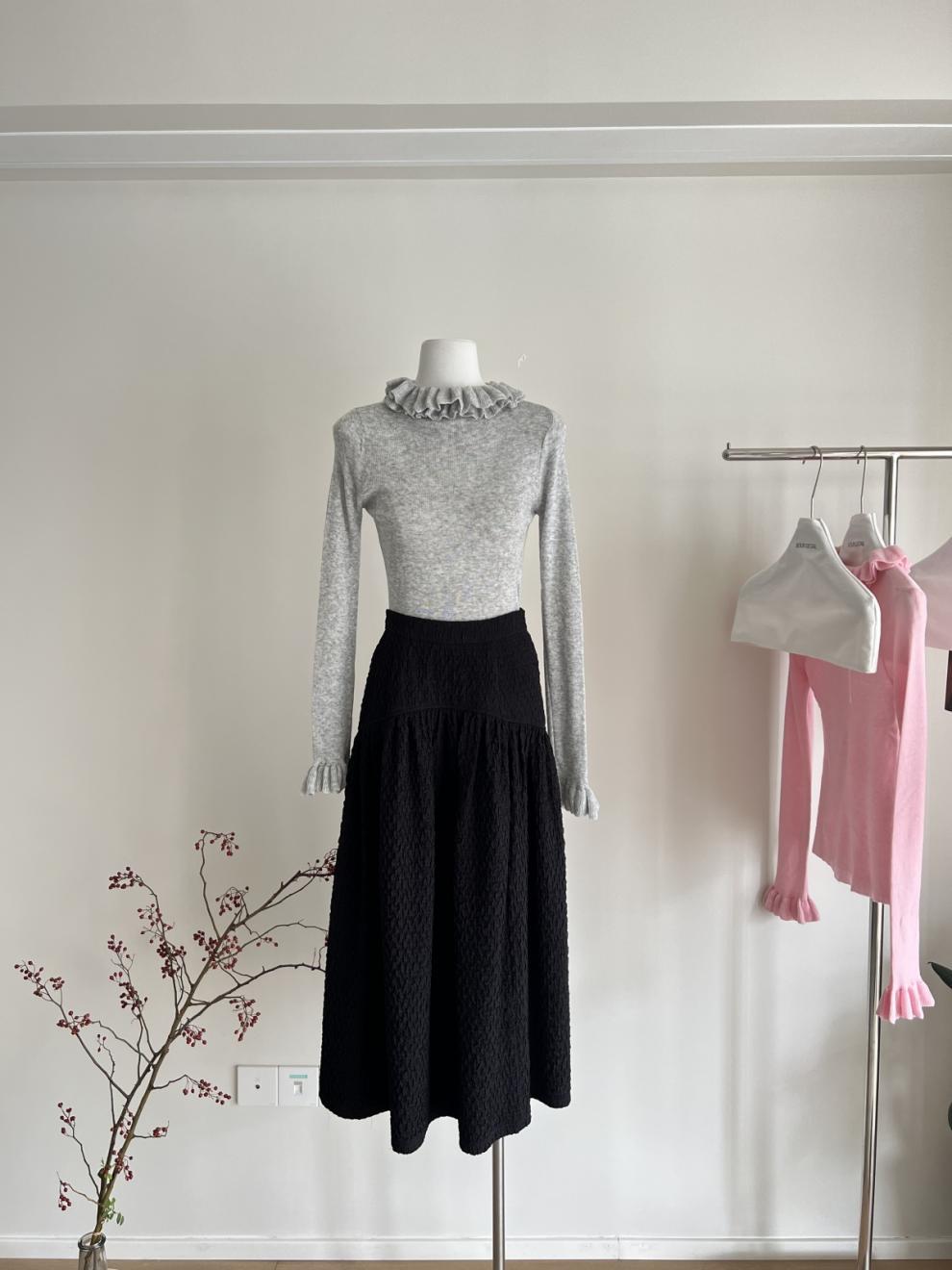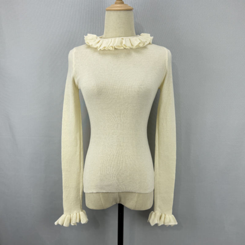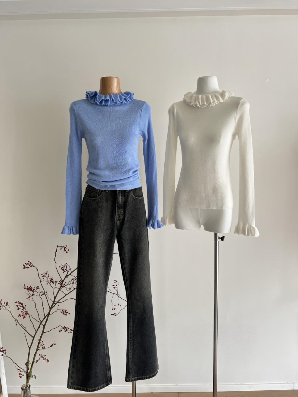 달콤한 나이를 줄이는 연꽃 칼라 더블 레이스 옷깃 슬림 핏 니트 스웨터 우아한 슬리밍 경량 베이스 셔츠 여성용 탑스토어 가기