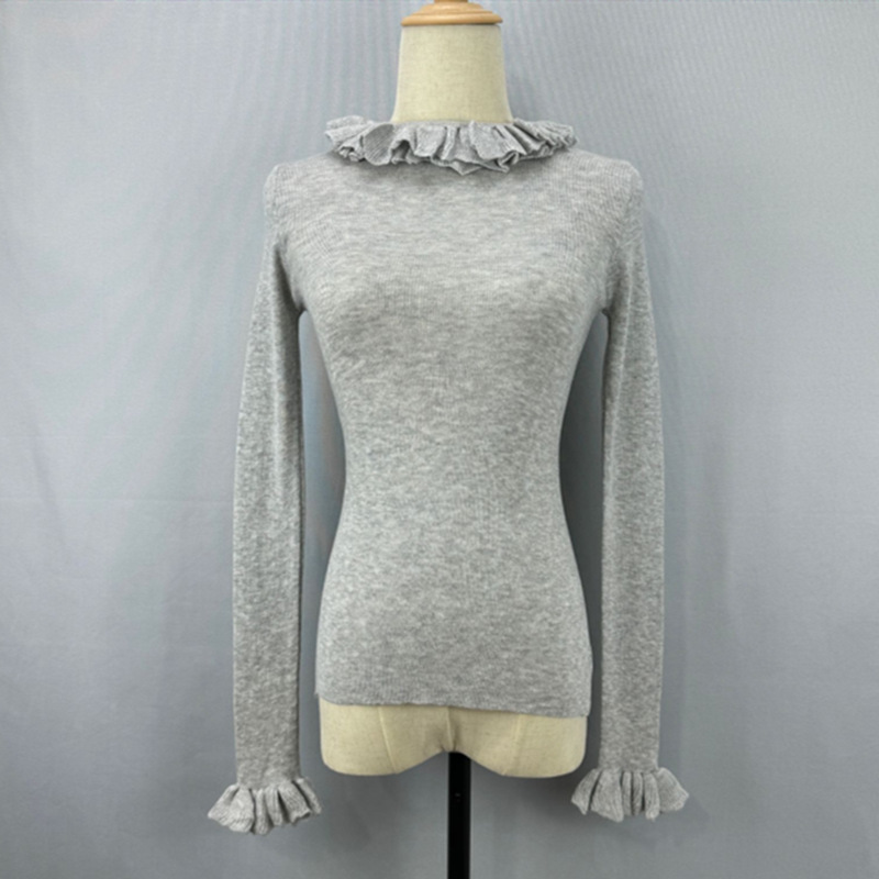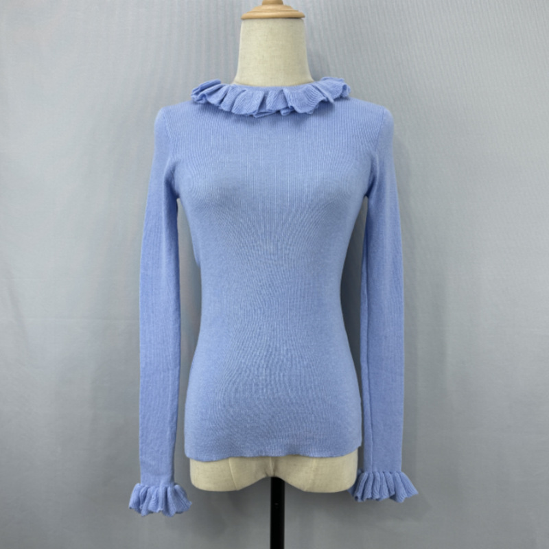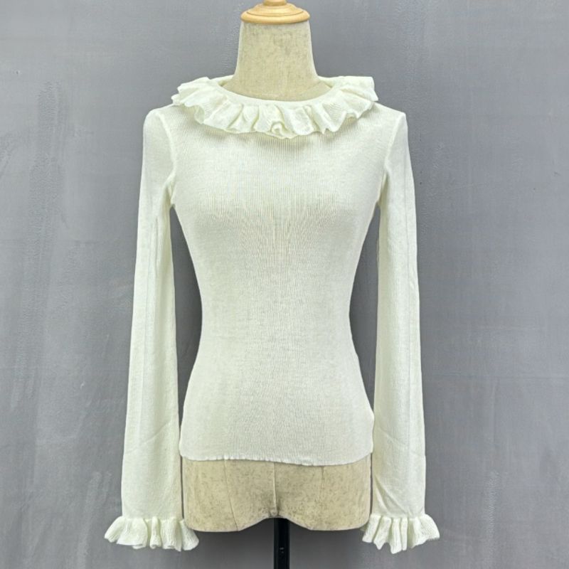 달콤한 나이를 줄이는 연꽃 칼라 더블 레이스 옷깃 슬림 핏 니트 스웨터 우아한 슬리밍 경량 베이스 셔츠 여성용 탑