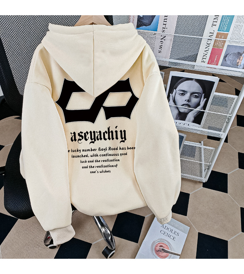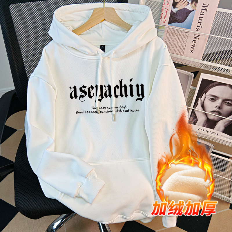 아메리칸 레트로 2024 가을과 겨울 새로운 후드 스웨트 기모 두꺼운 여성 남성 유행 탑
