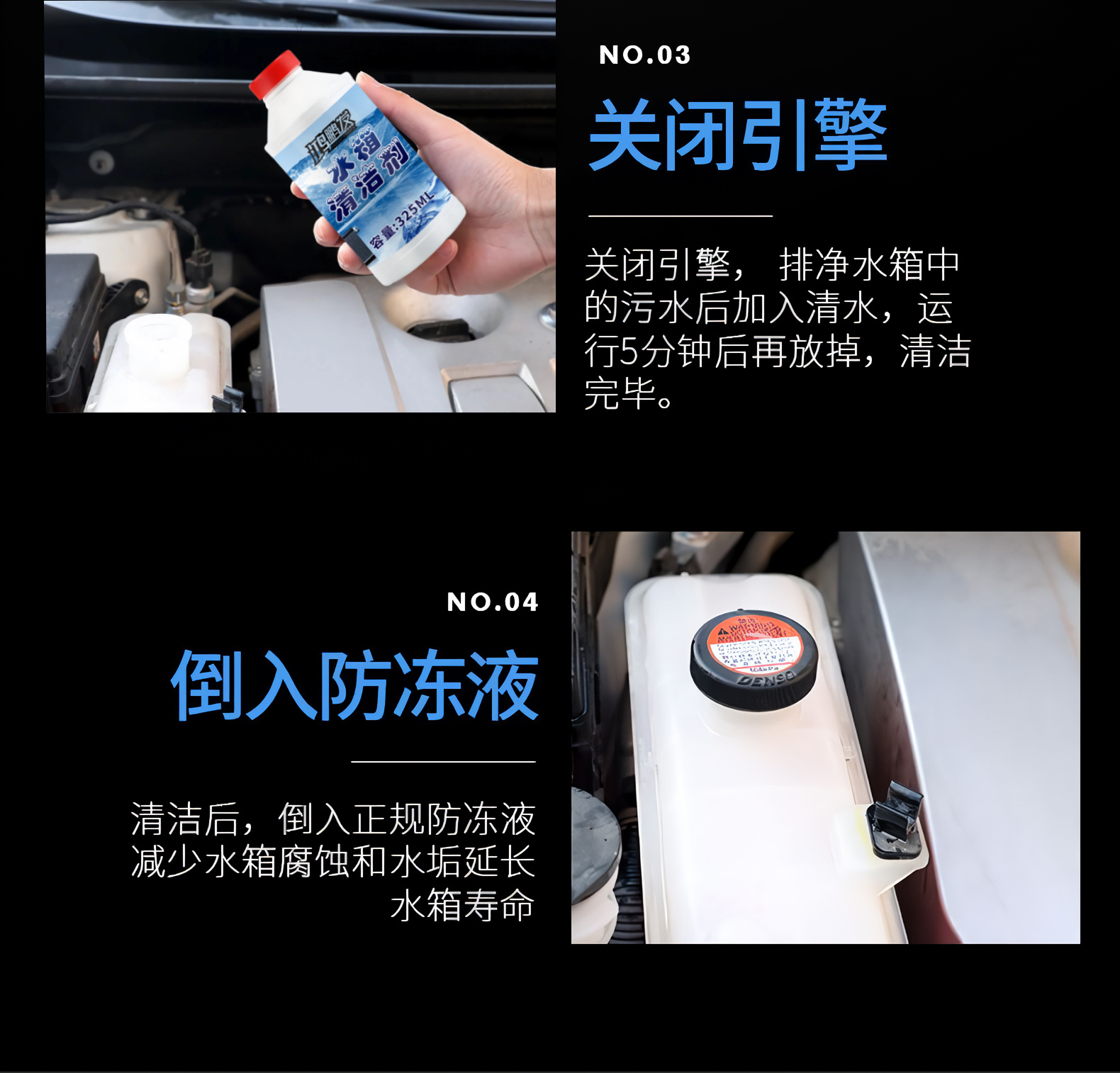 Hongpeng 물 탱크 청소기 내림 및 녹 방지 자동차 냉각 시스템 물 탱크 유지 보수 청소기를 위한 일반 보호 액체스토어 가기