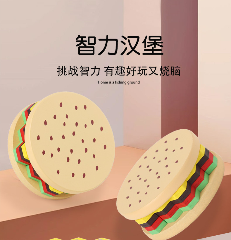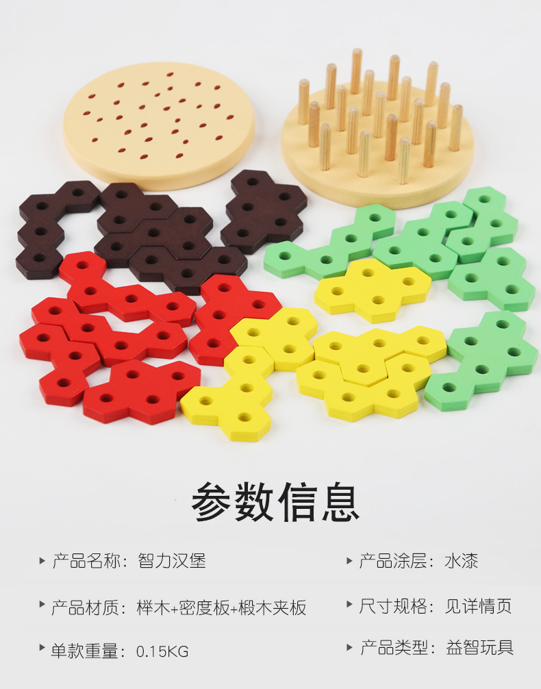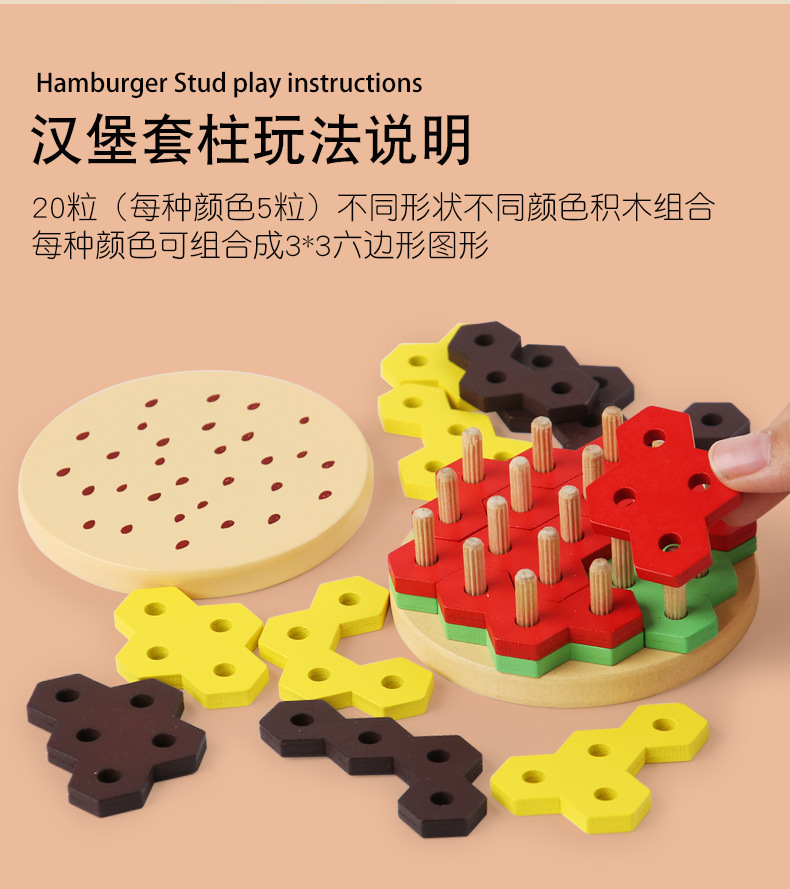 어린이 나무 지능 햄버거 세트 칼럼 퍼즐 빌딩 블록 퍼즐 공간 논리적 사고 훈련 조기 교육 계몽주의 장난감스토어 가기