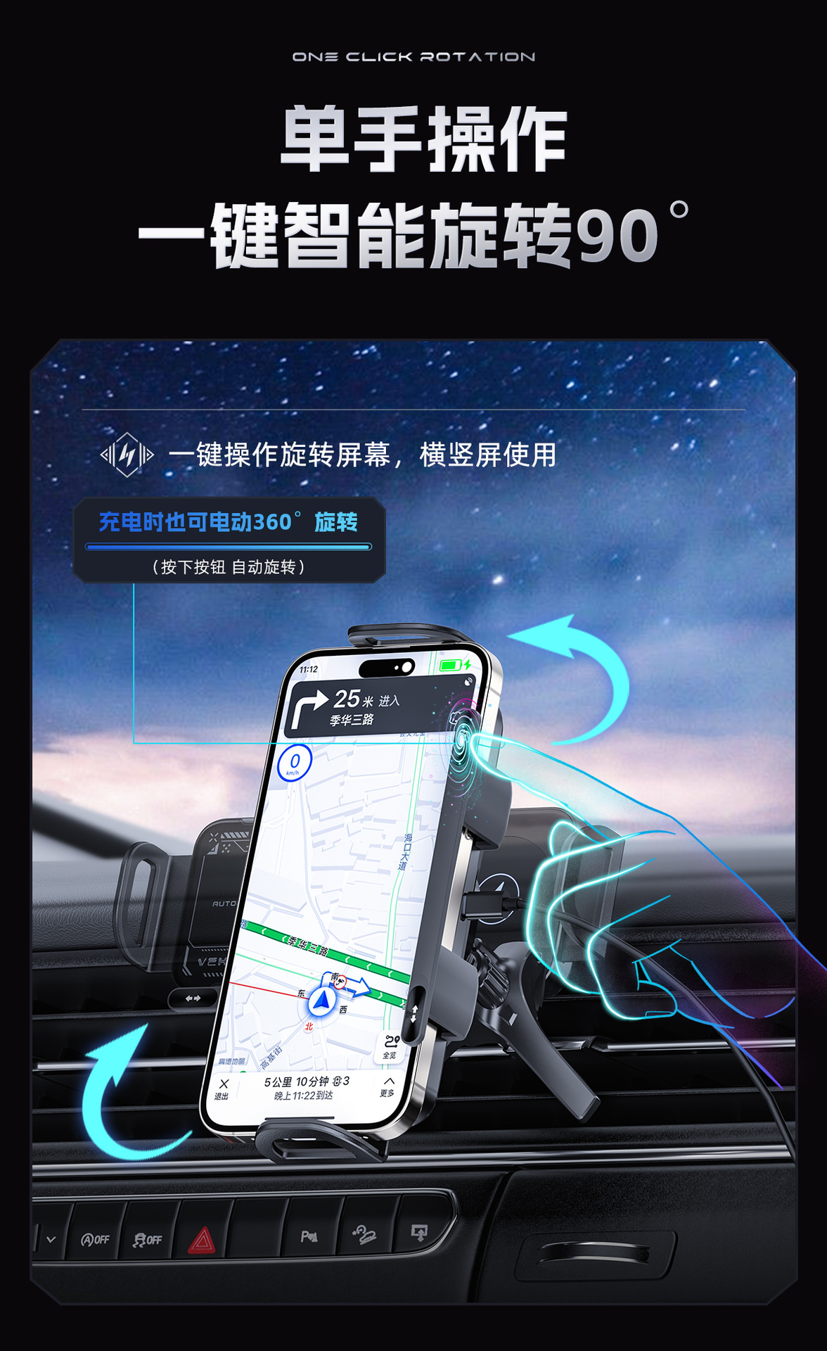 인기있는 접이식 스크린 자동차 무선 충전 휴대 전화 홀더 자동차 네비게이션 공기 배출구 회전 휴대 전화 홀더 공장