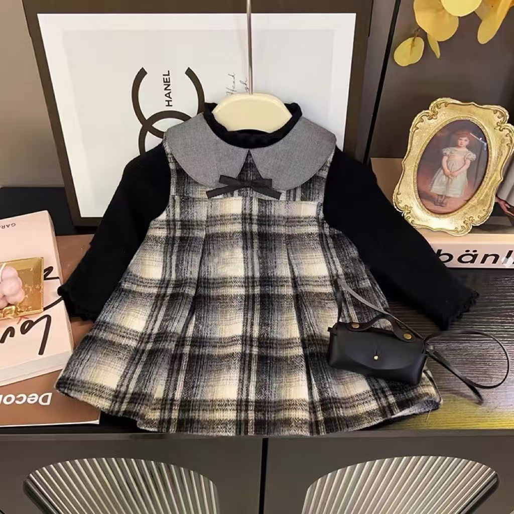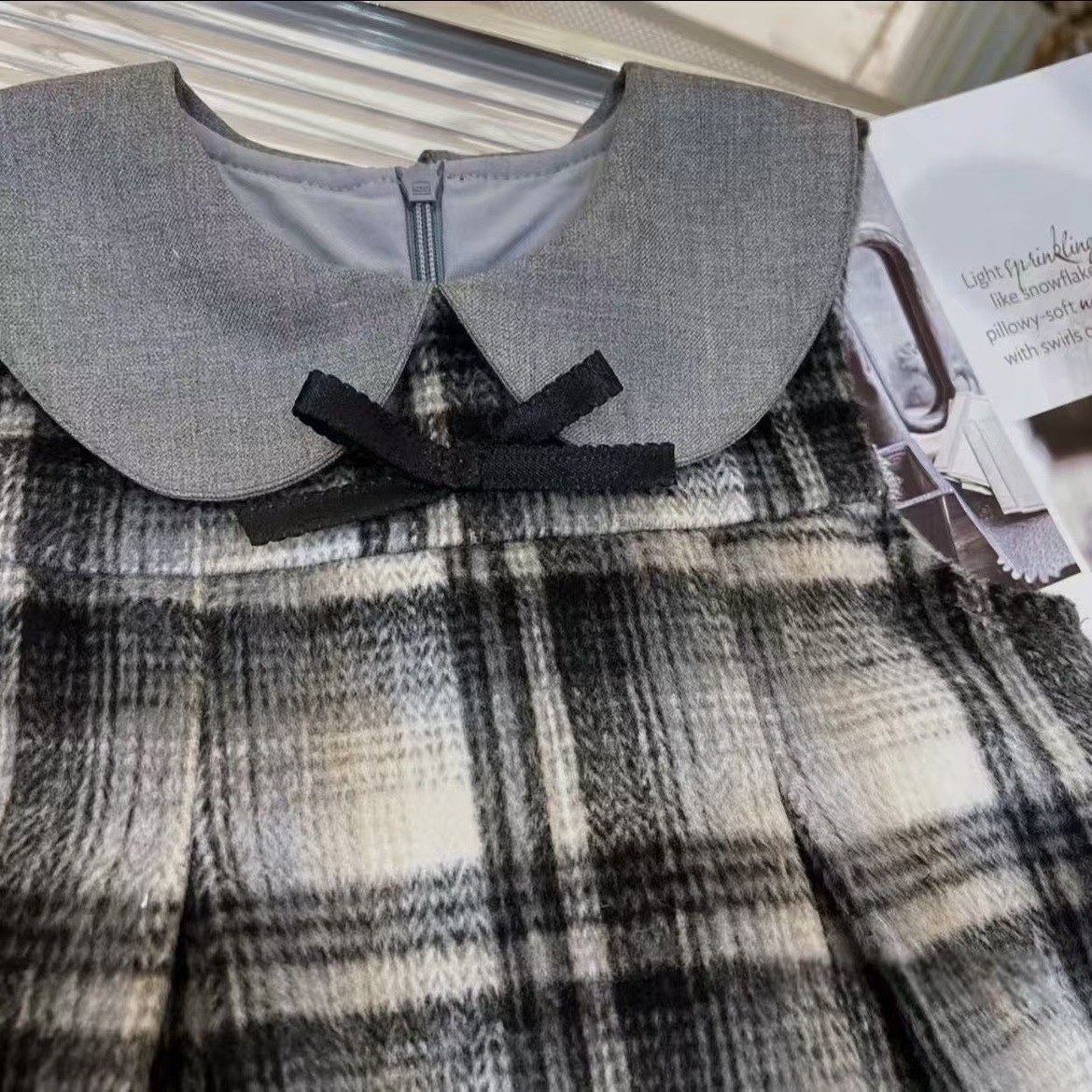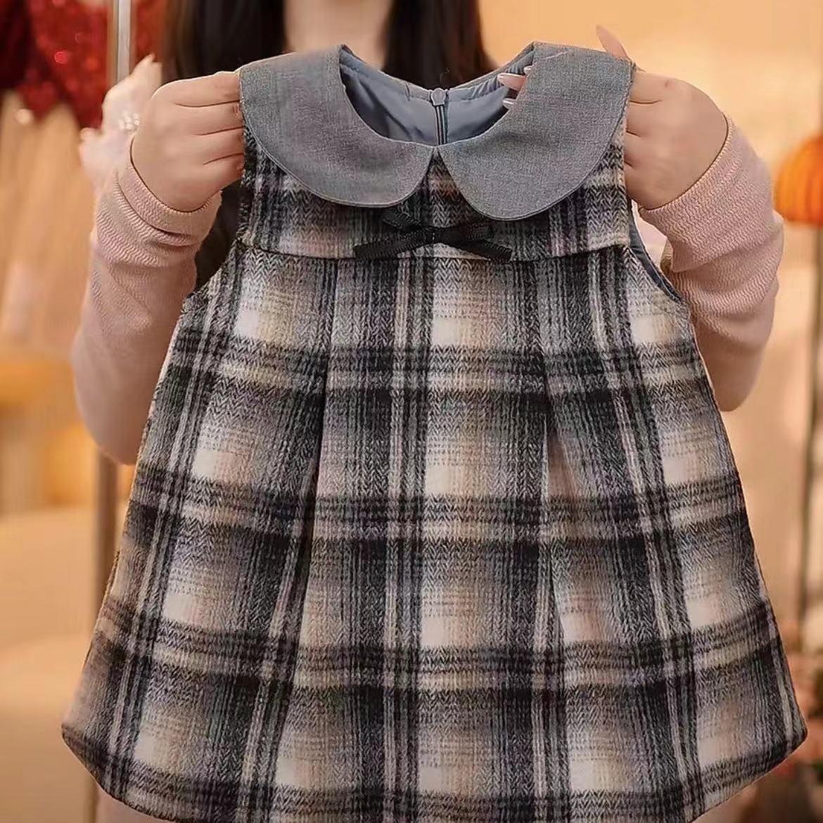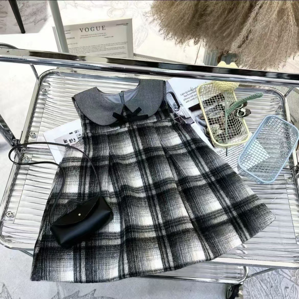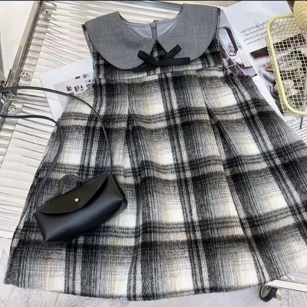 여자 치마 울 원피스 조끼 격자 무늬 공주 2024 새로운 대외 무역 머리카락 세대