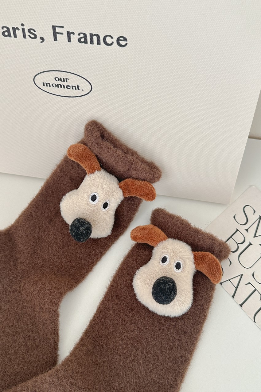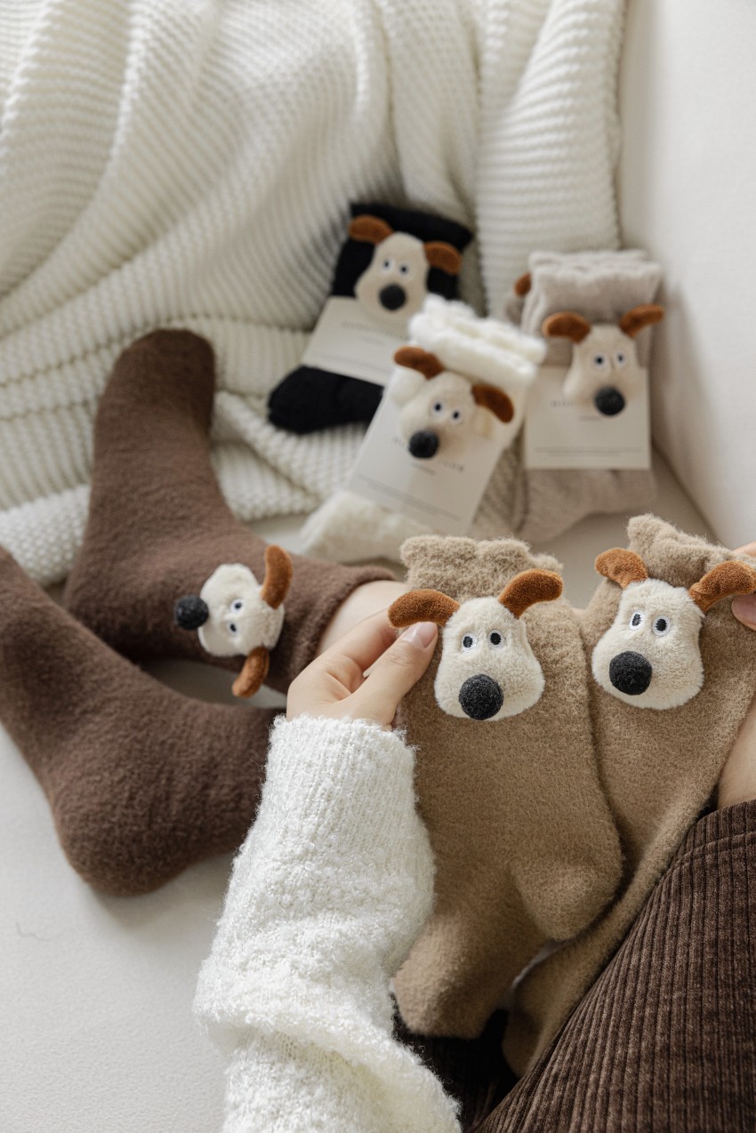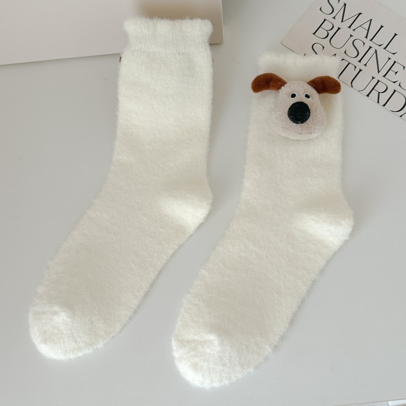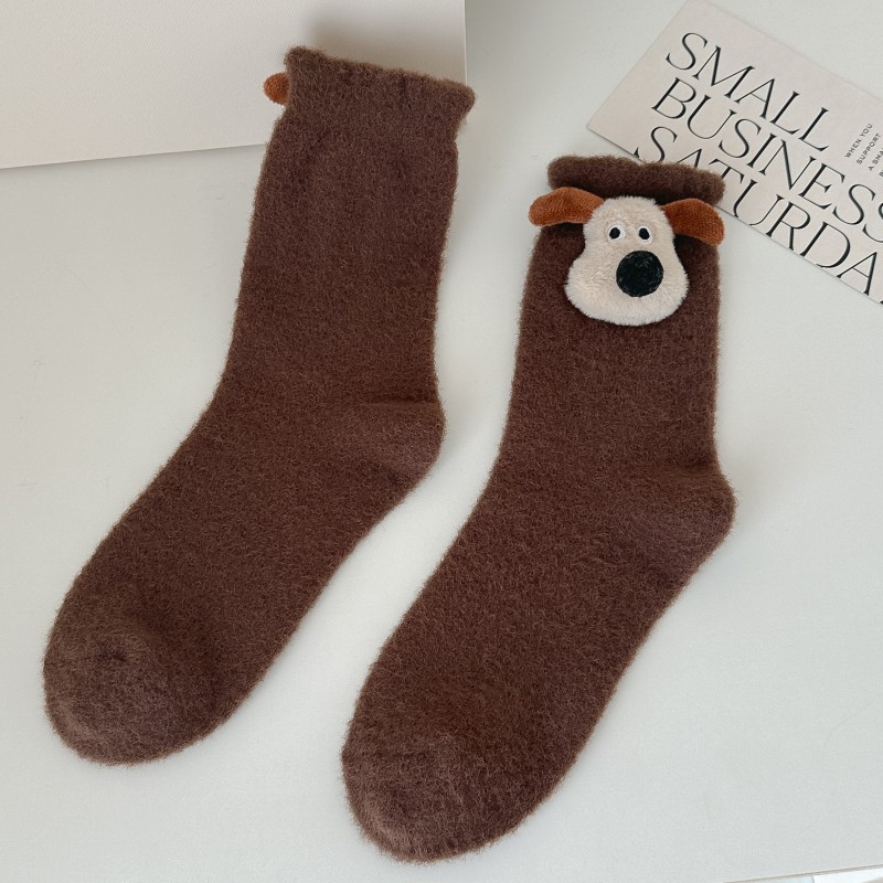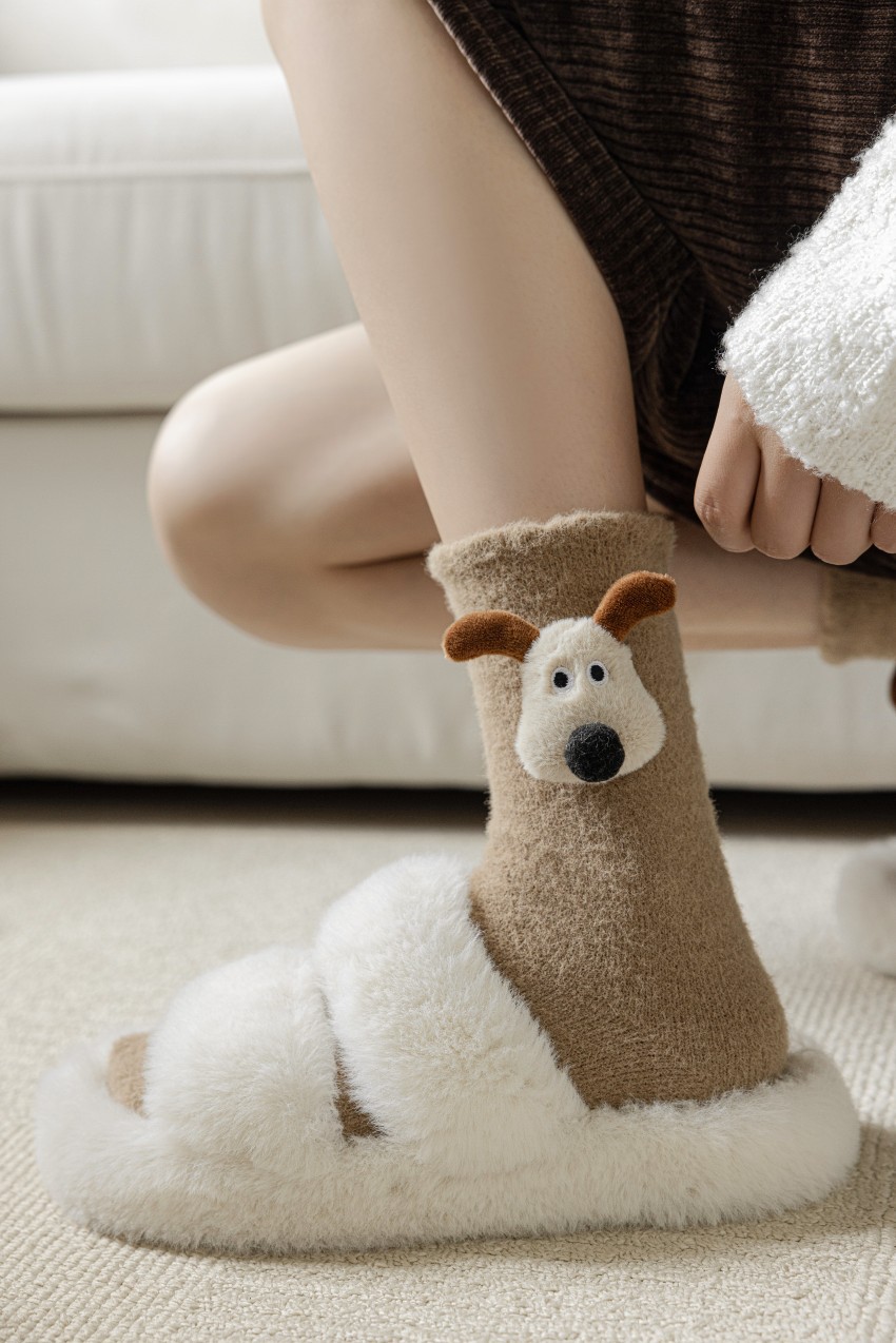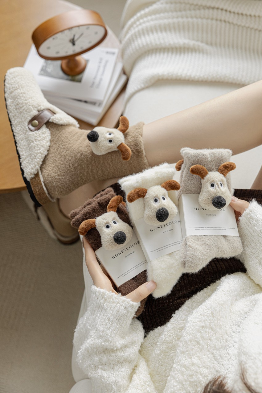 겨울 따뜻한 기모 여성용 양말 두꺼운 호주 벨벳 강아지 귀여운 만화 여성 양말 홈 플로어 양말