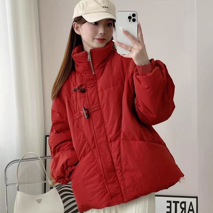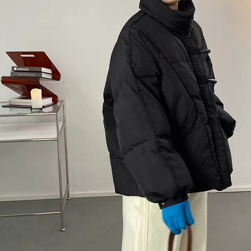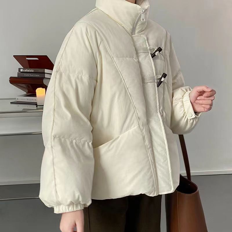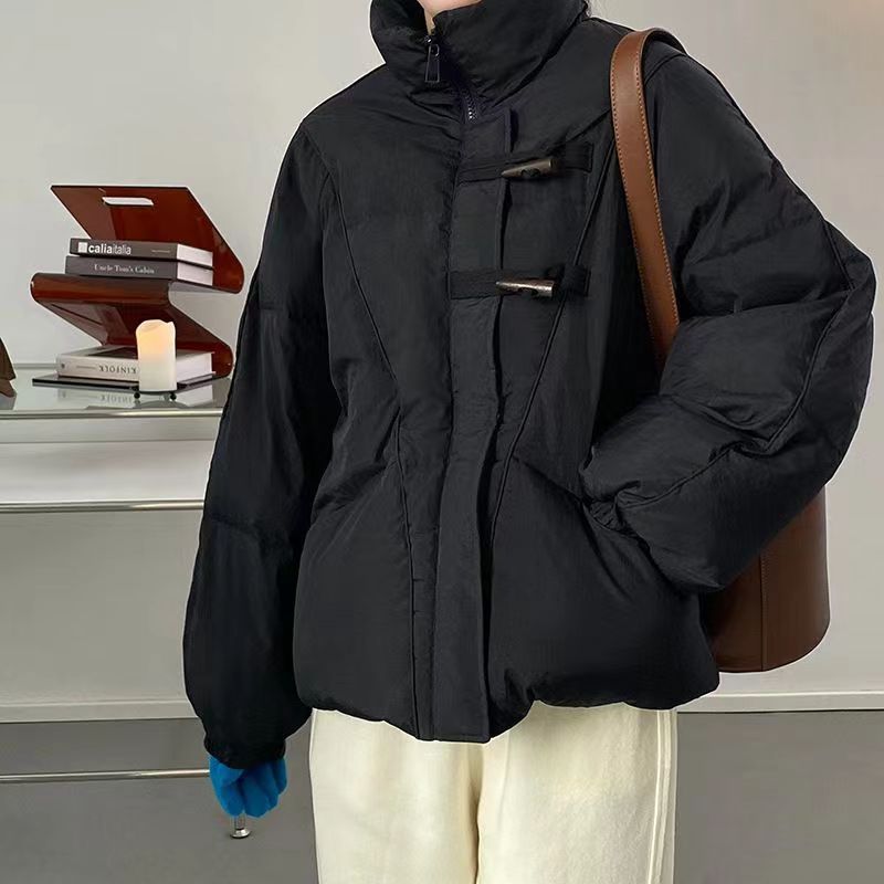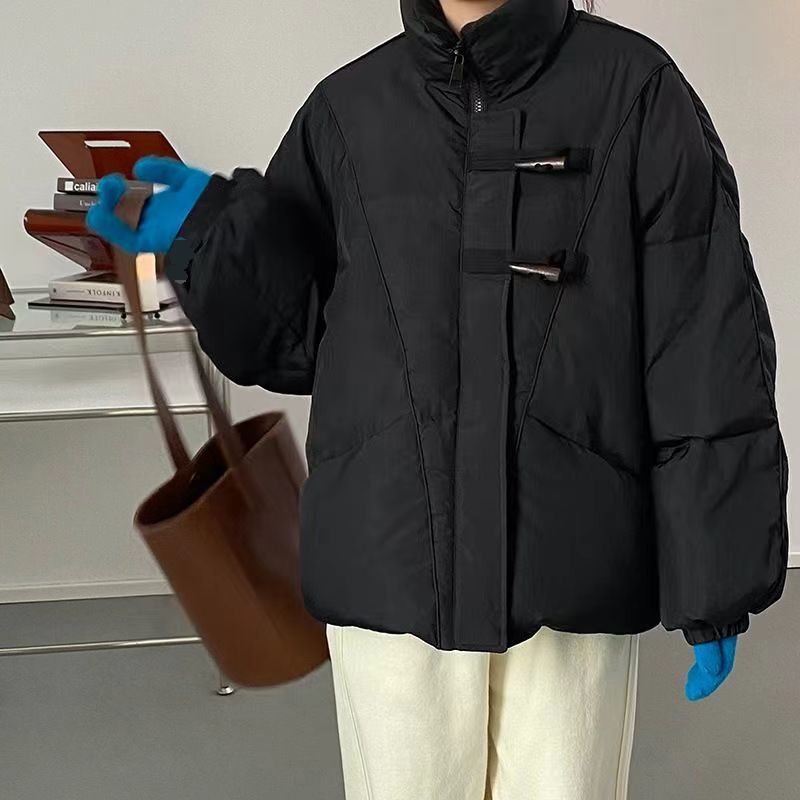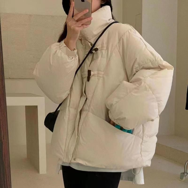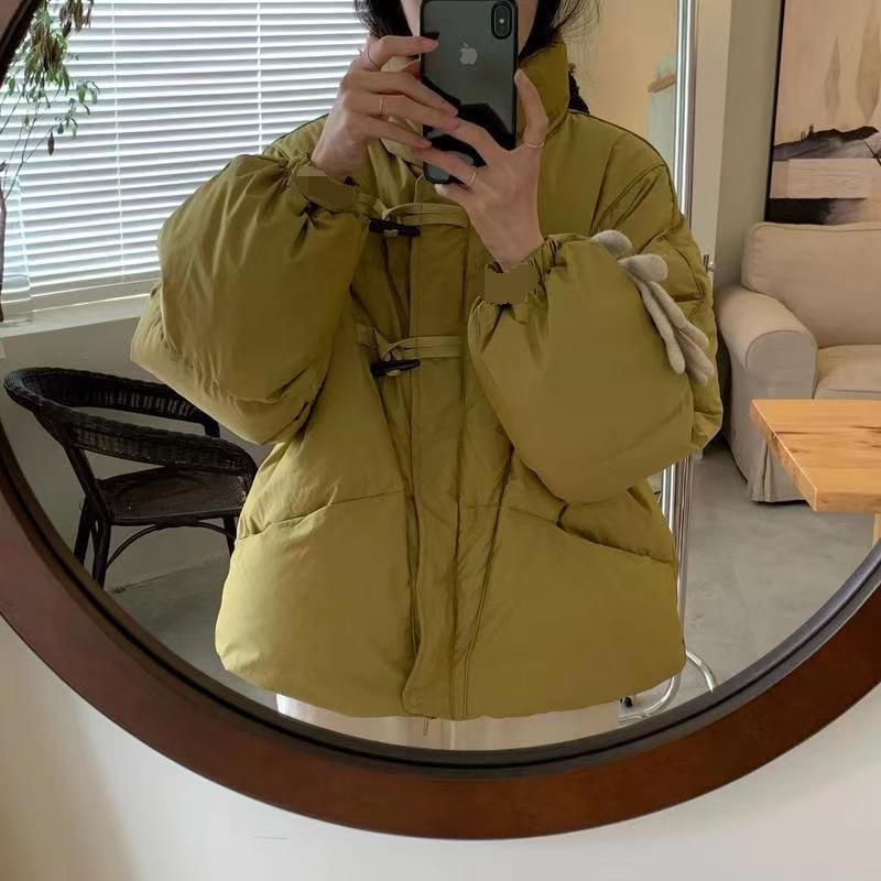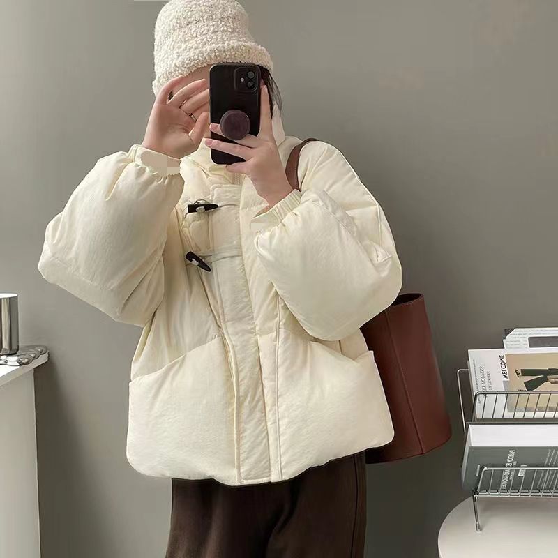 다운 코튼 패딩 재킷 여성의 2024 새로운 두꺼운 혼 버클 한국 버전의 느슨한 빵 의류 겨울 짧은 코트스토어 가기