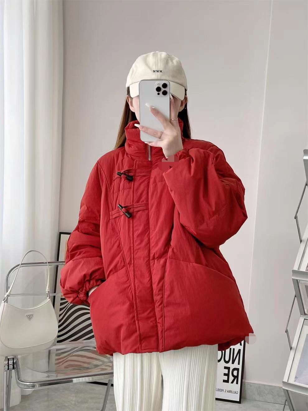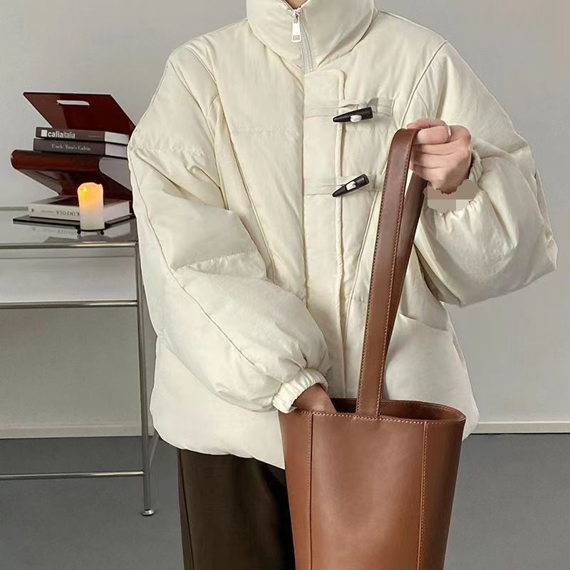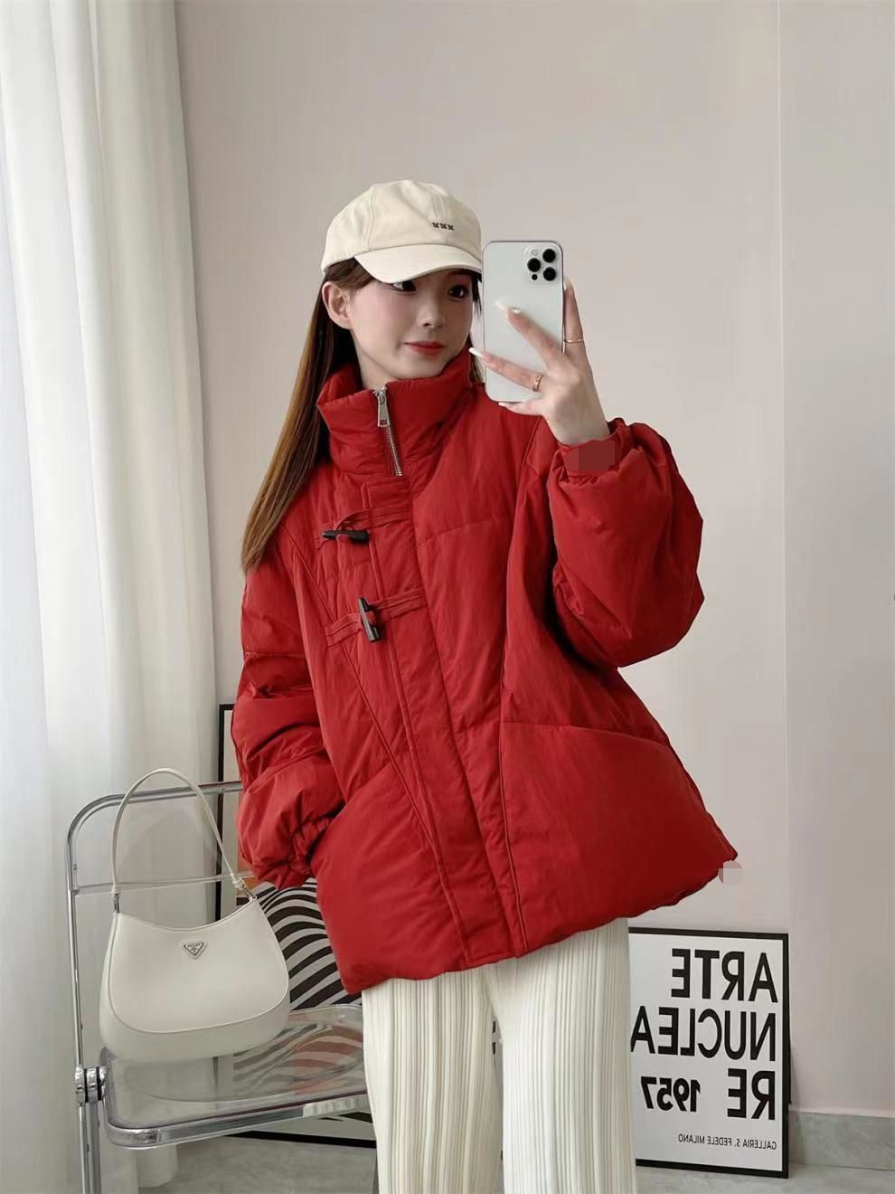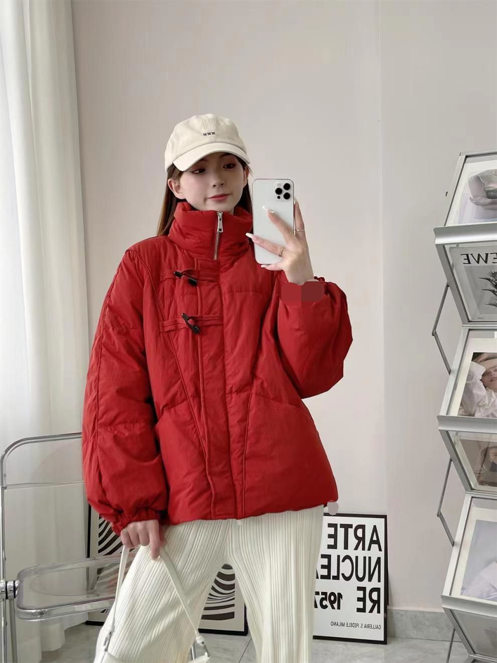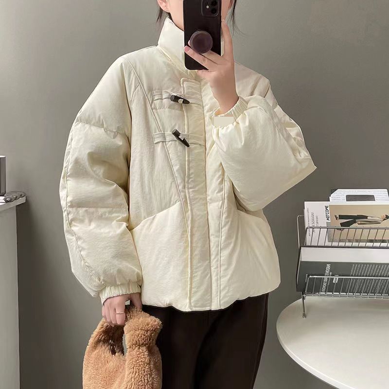 다운 코튼 패딩 재킷 여성의 2024 새로운 두꺼운 혼 버클 한국 버전의 느슨한 빵 의류 겨울 짧은 코트스토어 가기