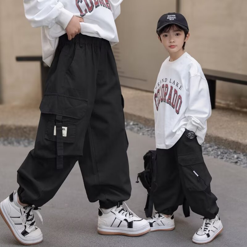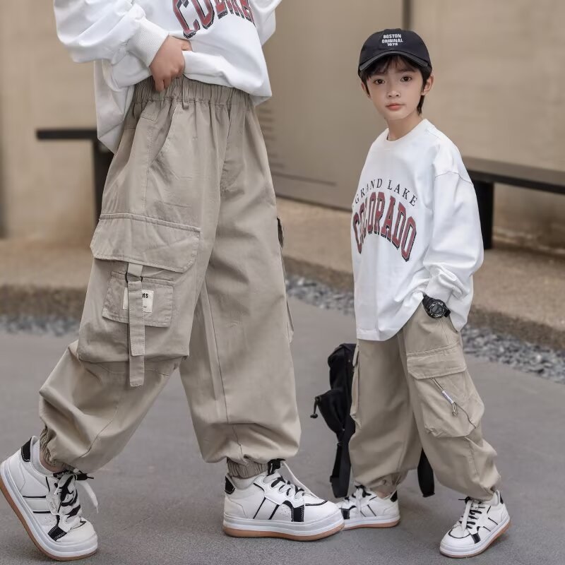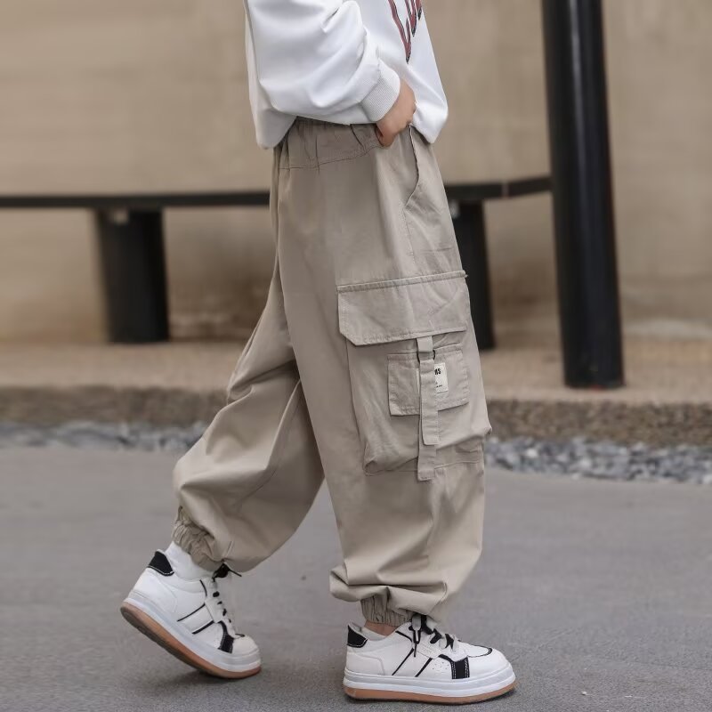 소년 카키 바지 캐주얼 작업복 느슨한 봄과 가을 큰 어린이 2024 새로운 스타일 소년 트렌디스토어 가기