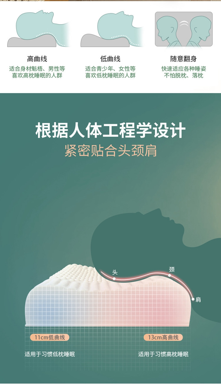 천연 라텍스 베개 태국 싱글 홈 베개 성인 목 베개 마사지 베개 공장 선물 도매 세대스토어 가기