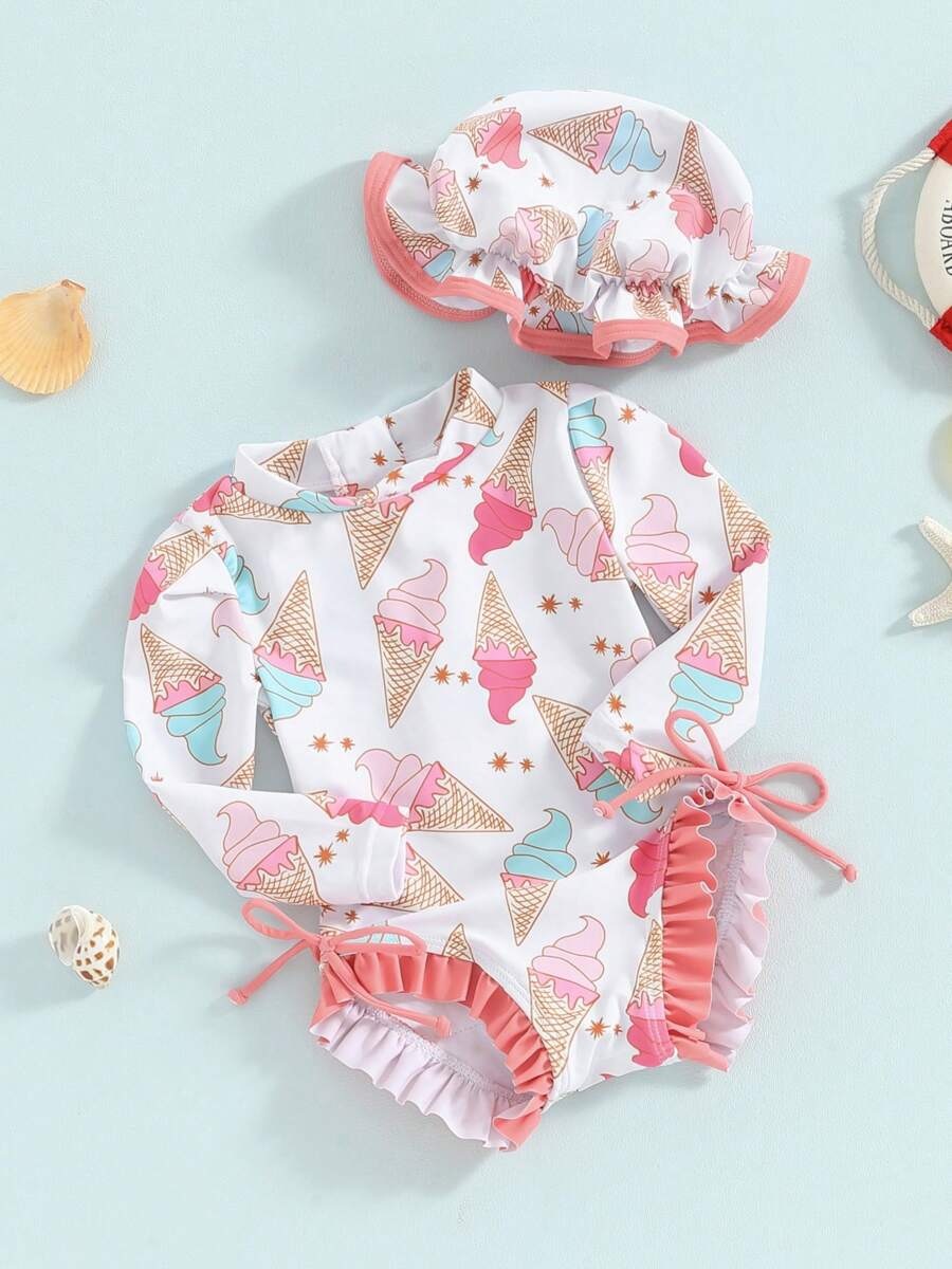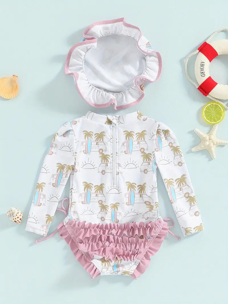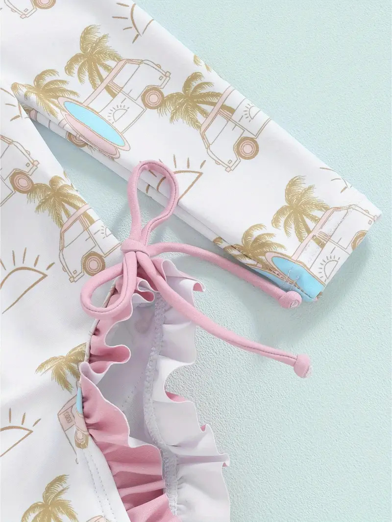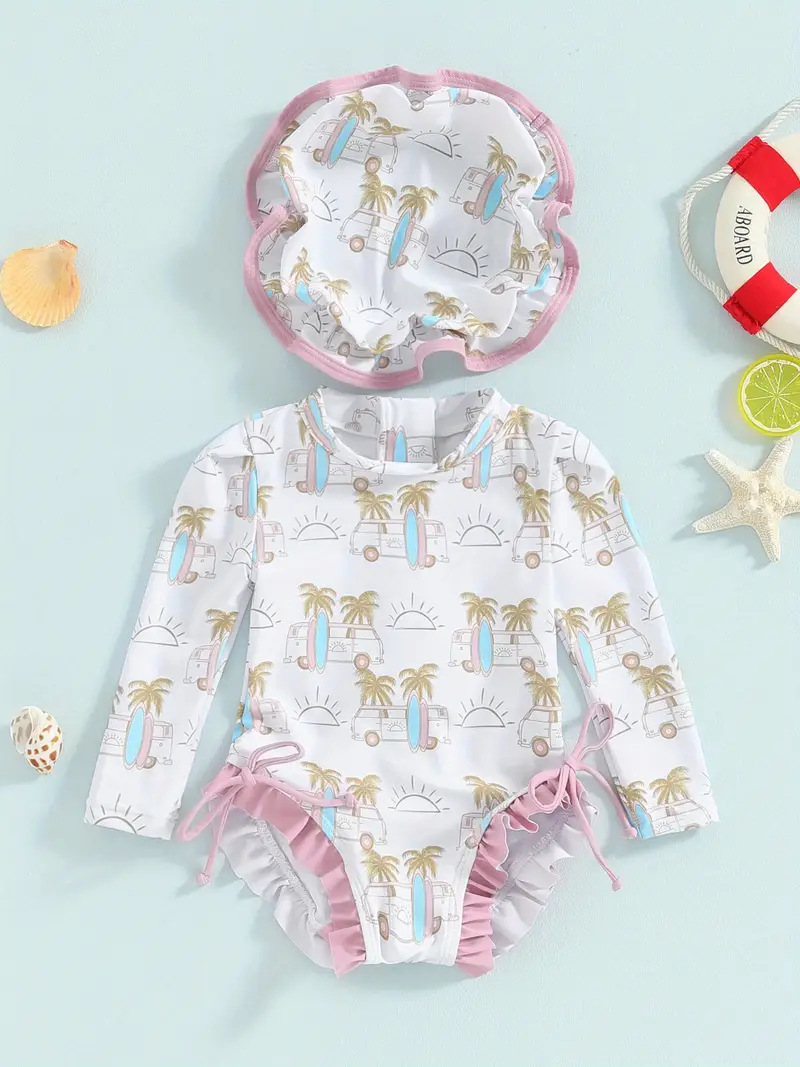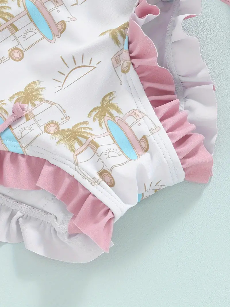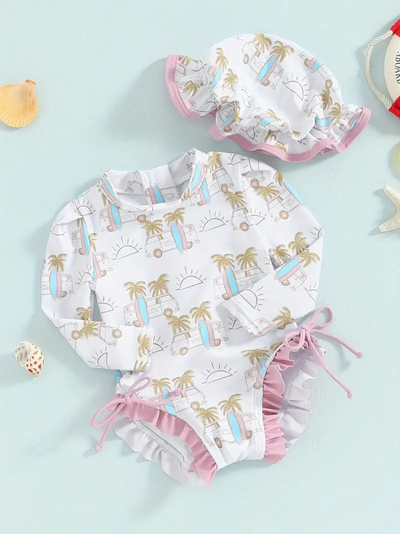20240 국경 어린이 귀여운 주름 아기 원피스 수영복 인쇄 패션 스타일