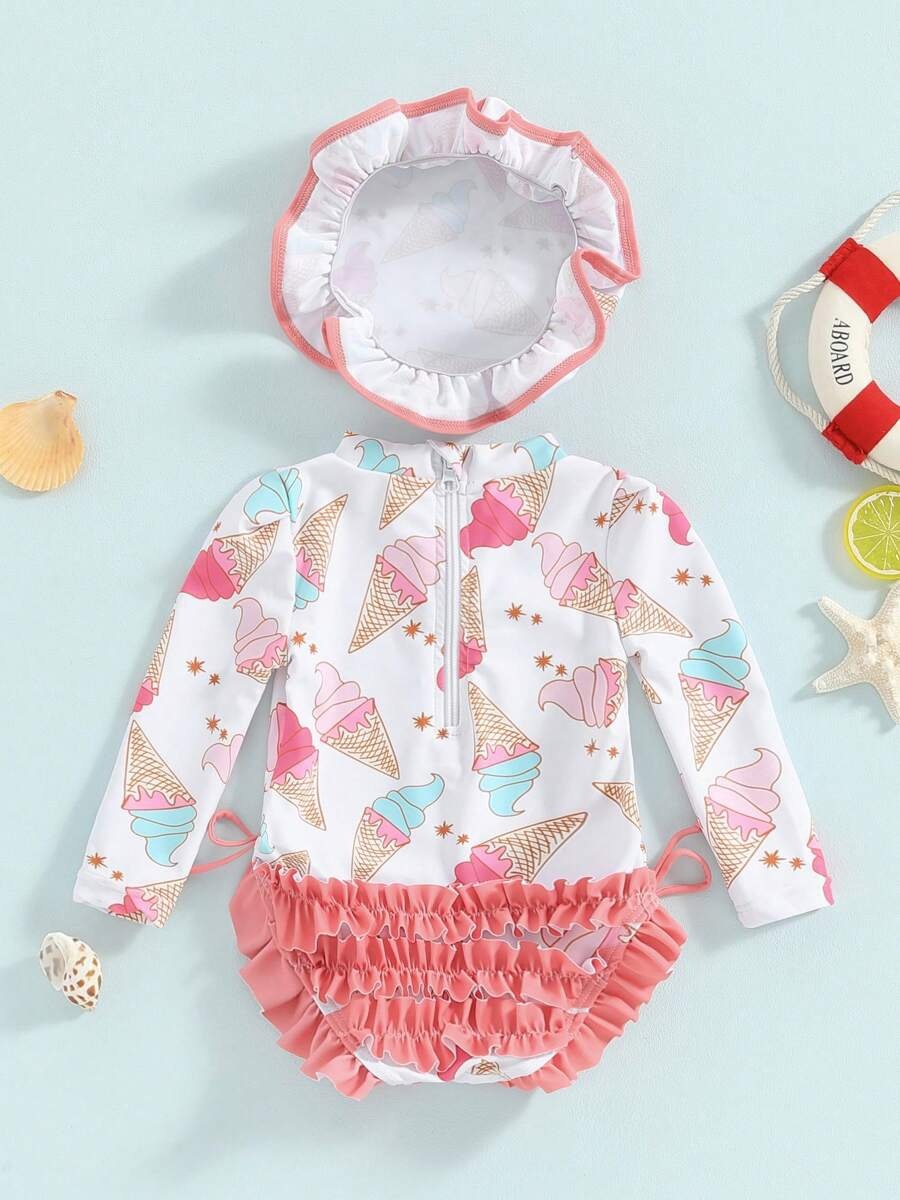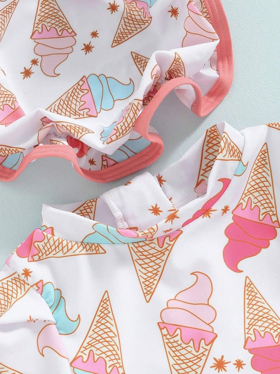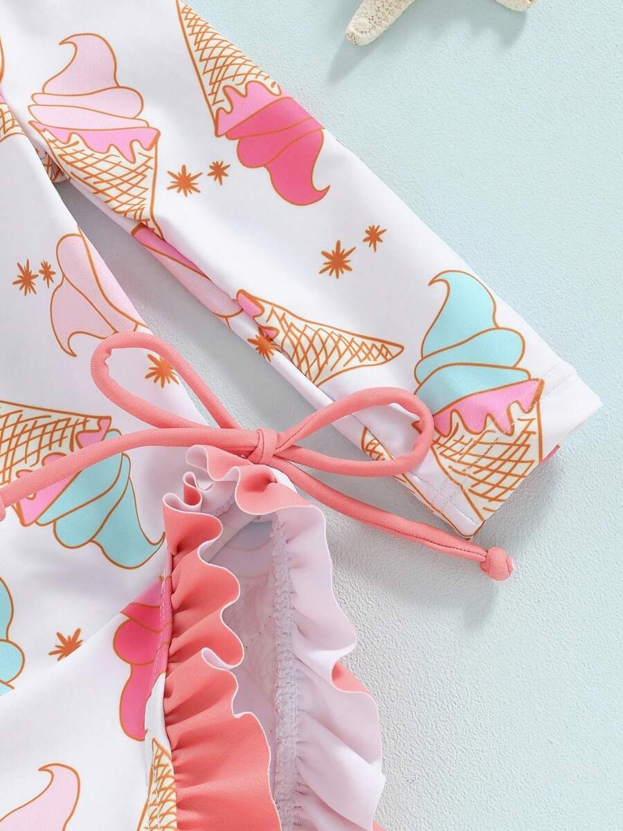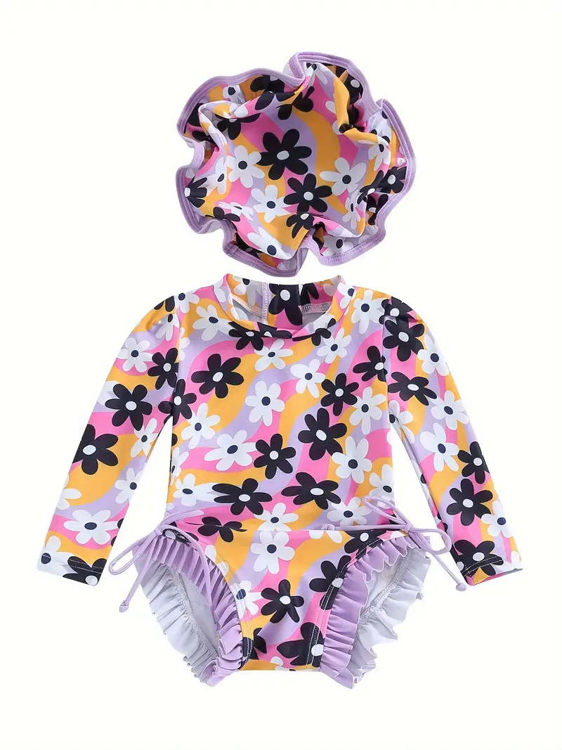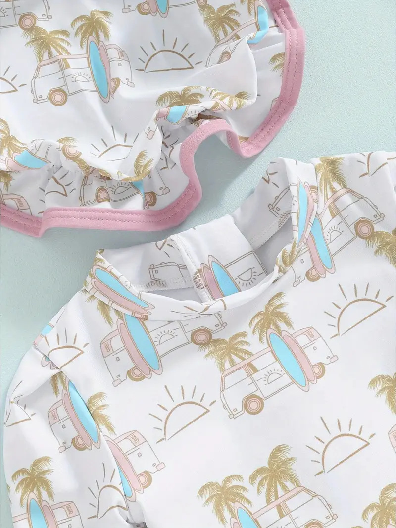 20240 국경 어린이 귀여운 주름 아기 원피스 수영복 인쇄 패션 스타일