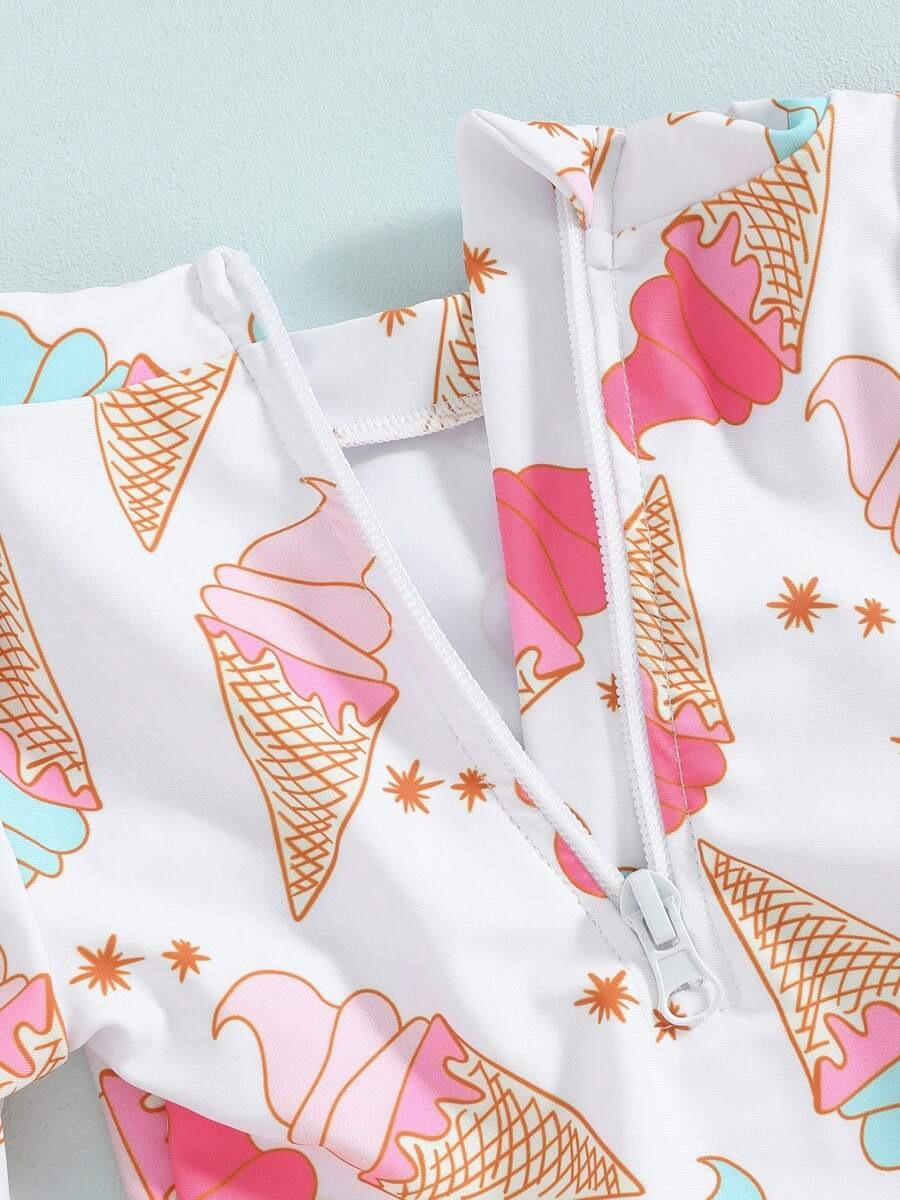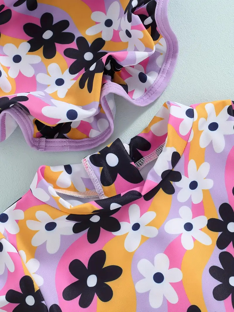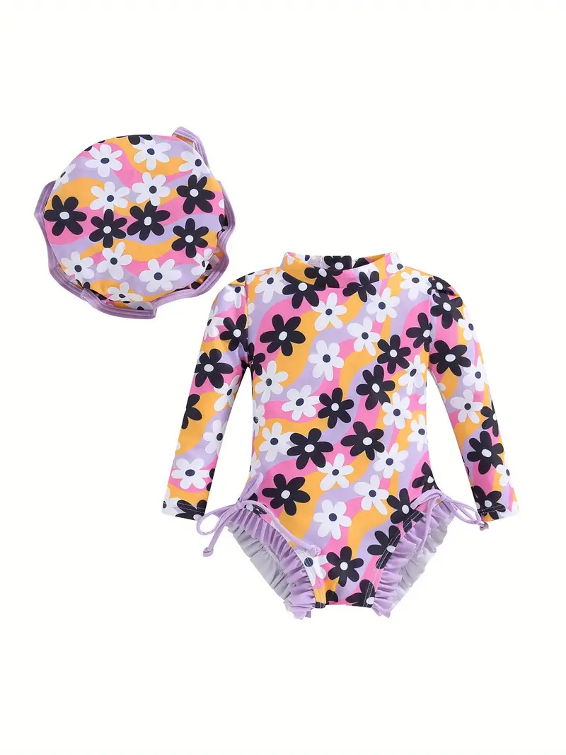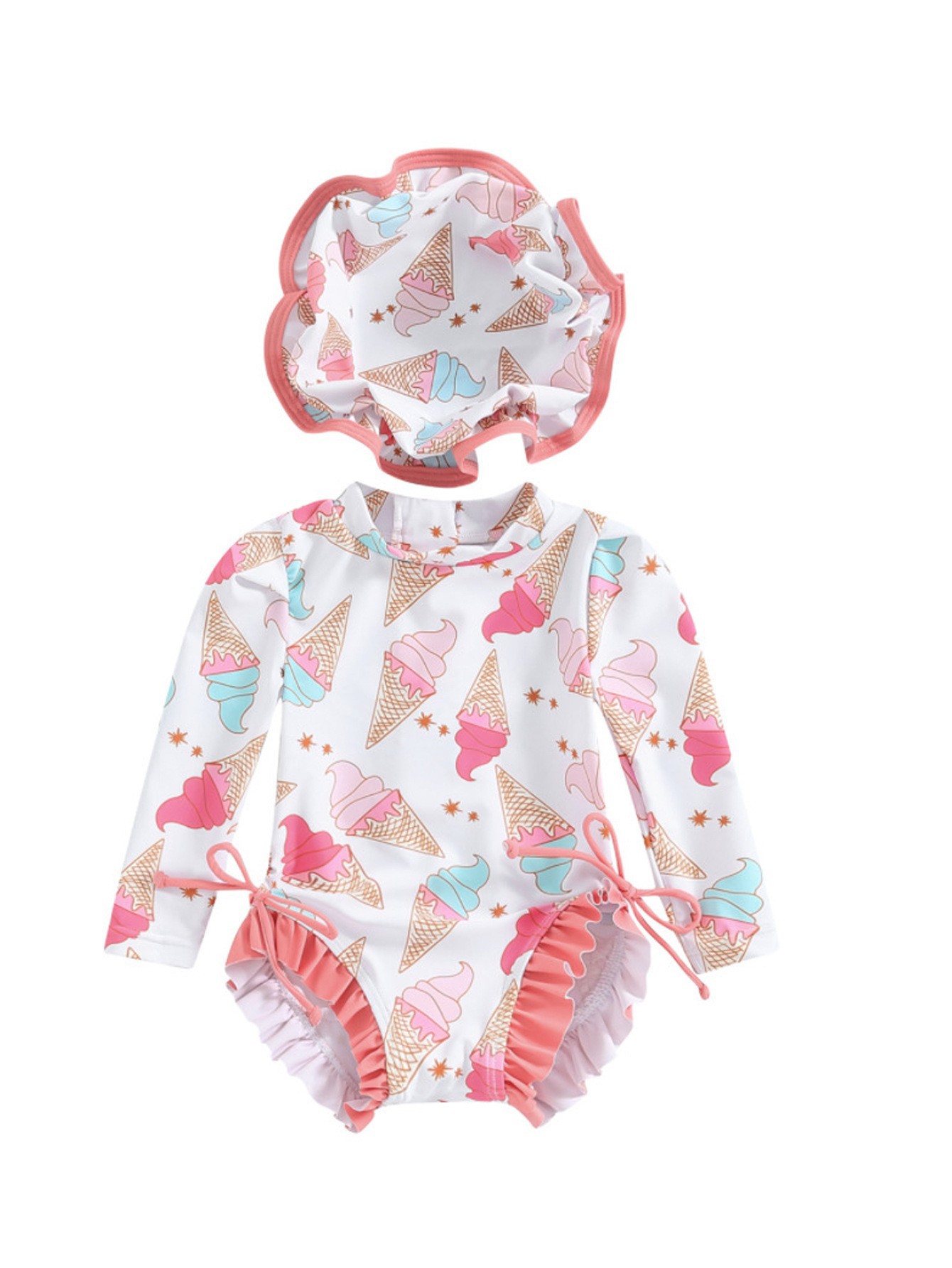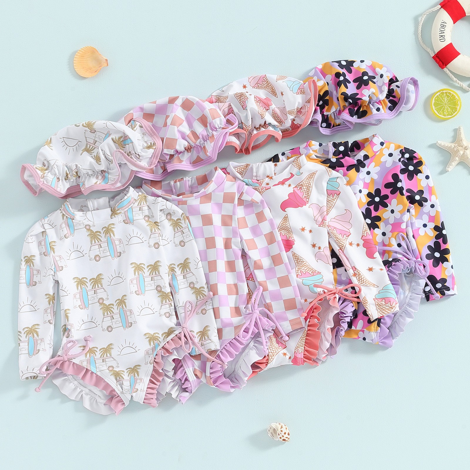 20240 국경 어린이 귀여운 주름 아기 원피스 수영복 인쇄 패션 스타일