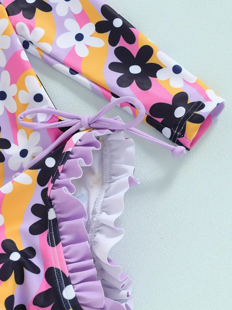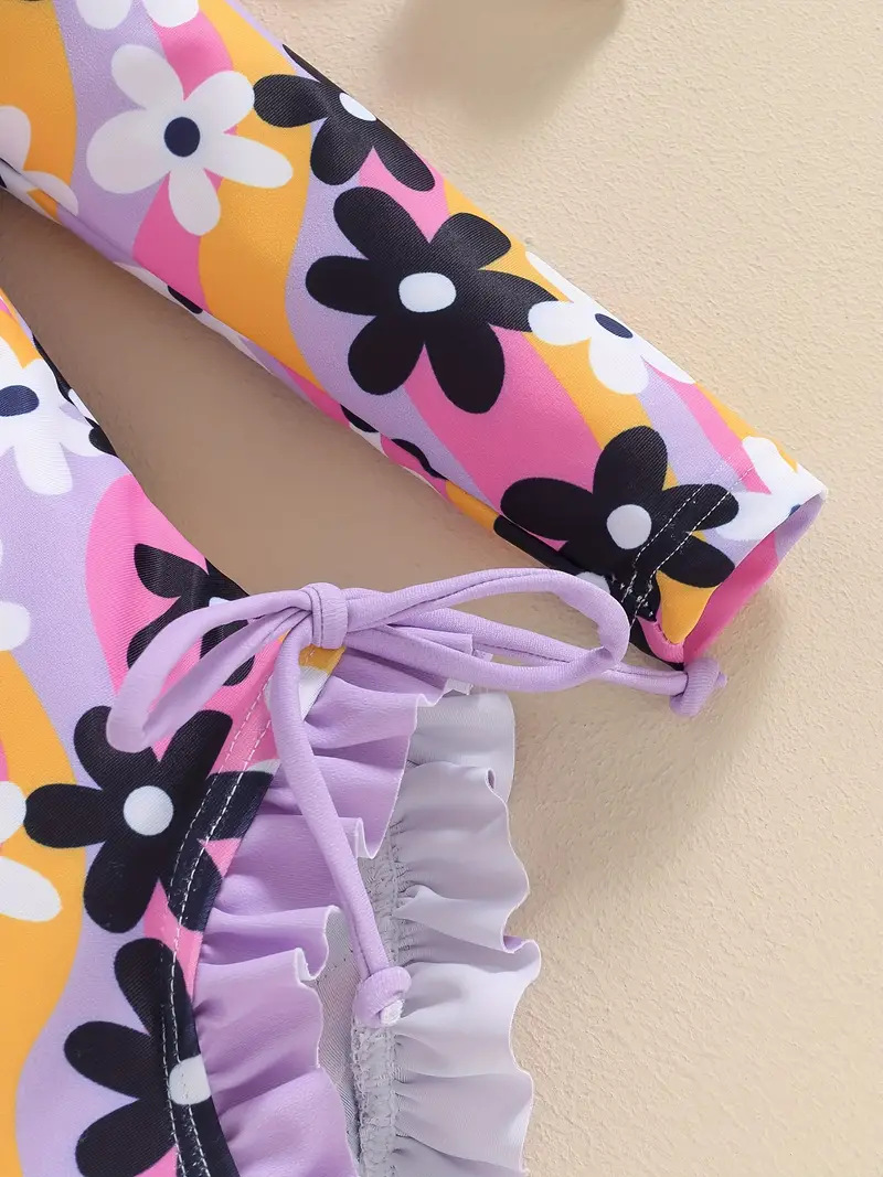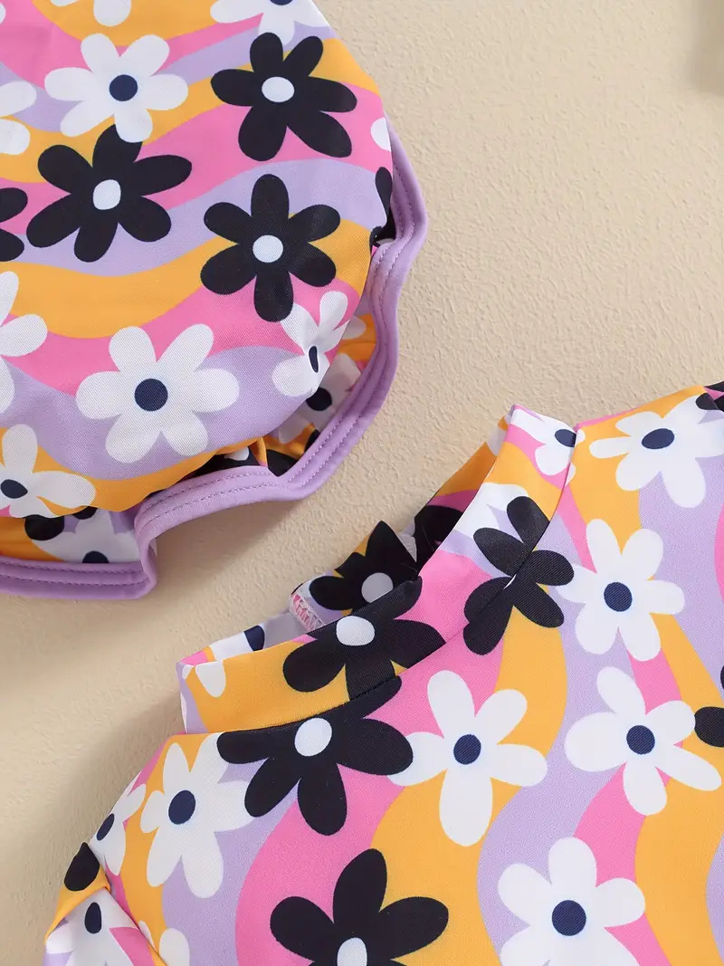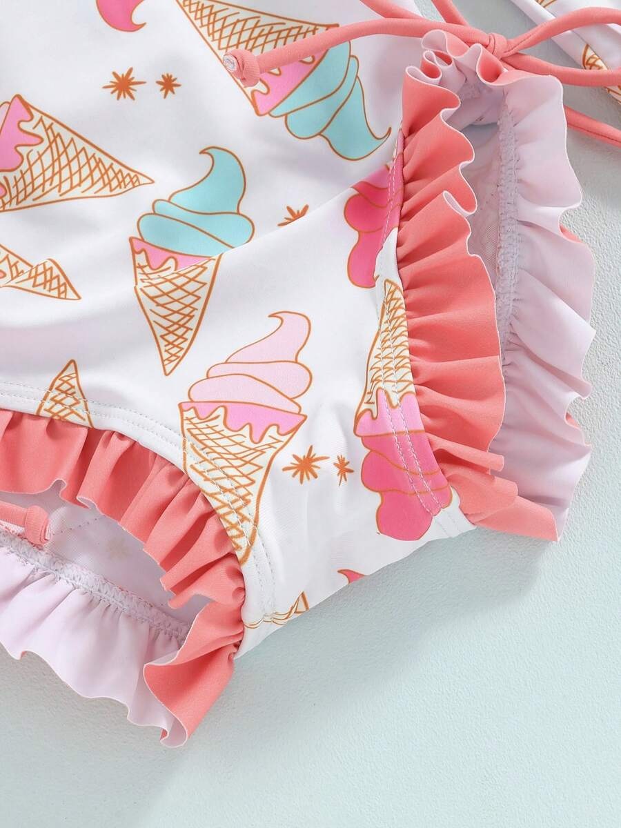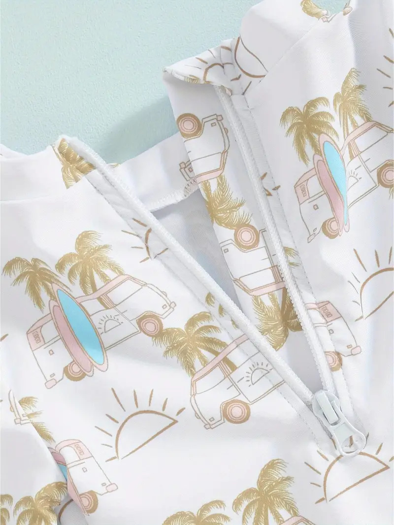 20240 국경 어린이 귀여운 주름 아기 원피스 수영복 인쇄 패션 스타일