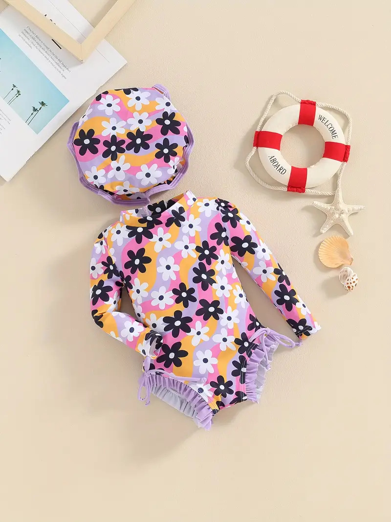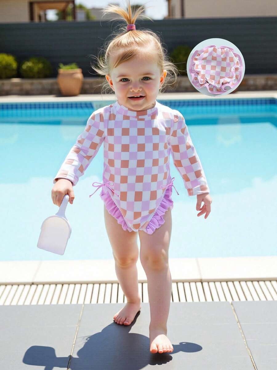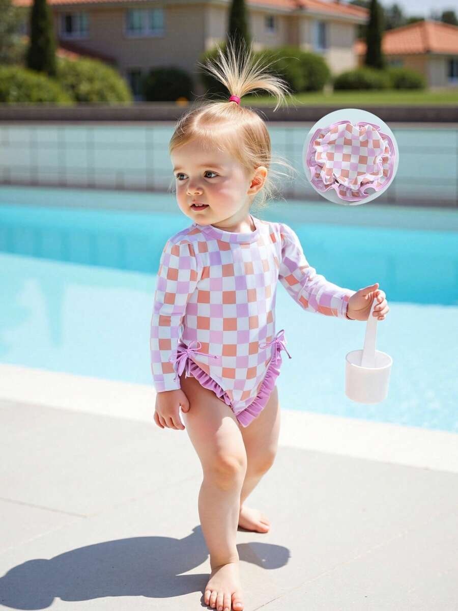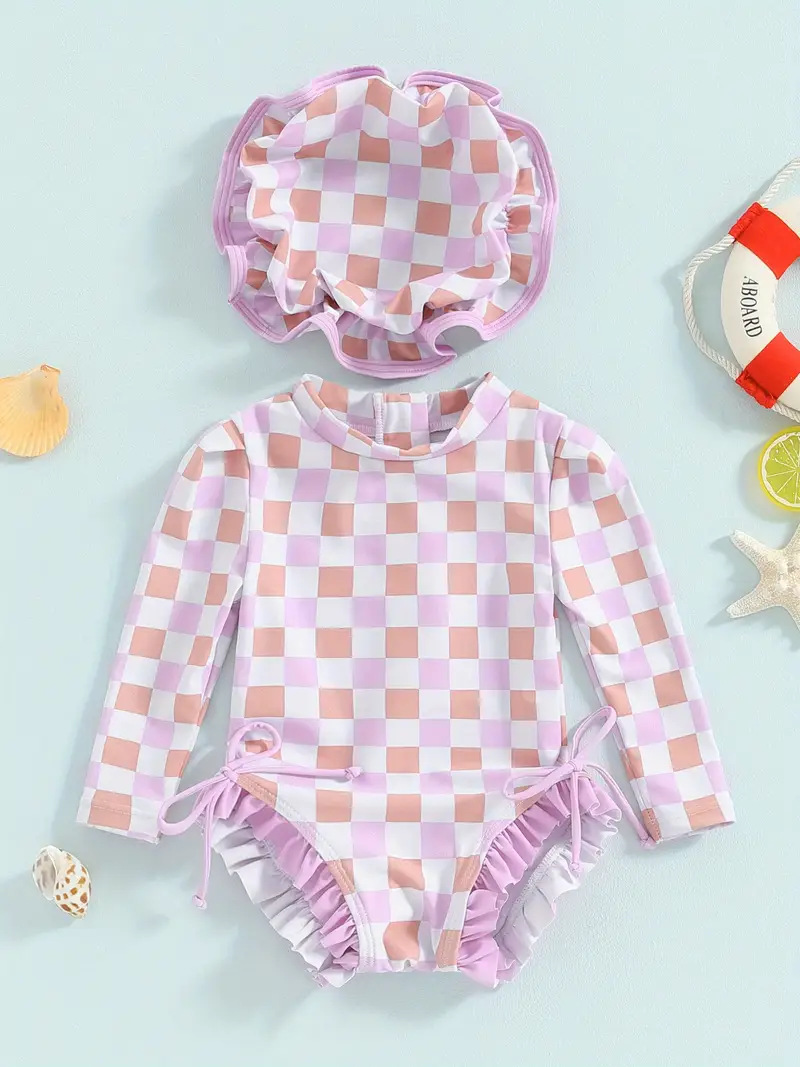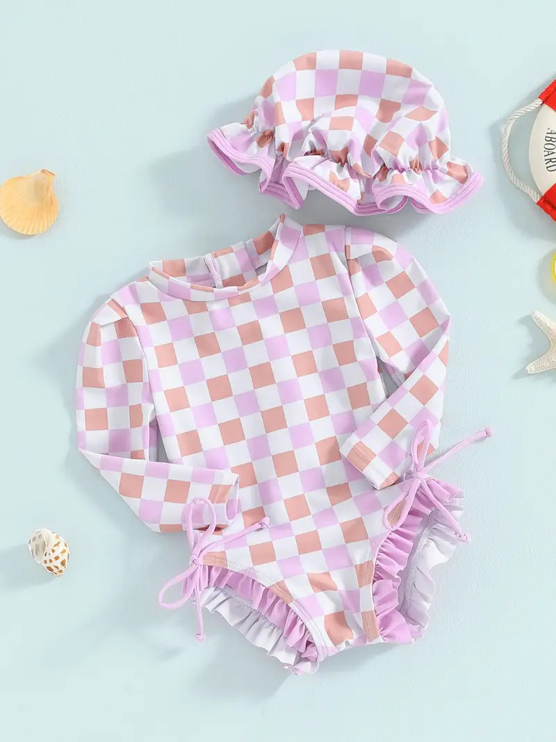 20240 국경 어린이 귀여운 주름 아기 원피스 수영복 인쇄 패션 스타일스토어 가기