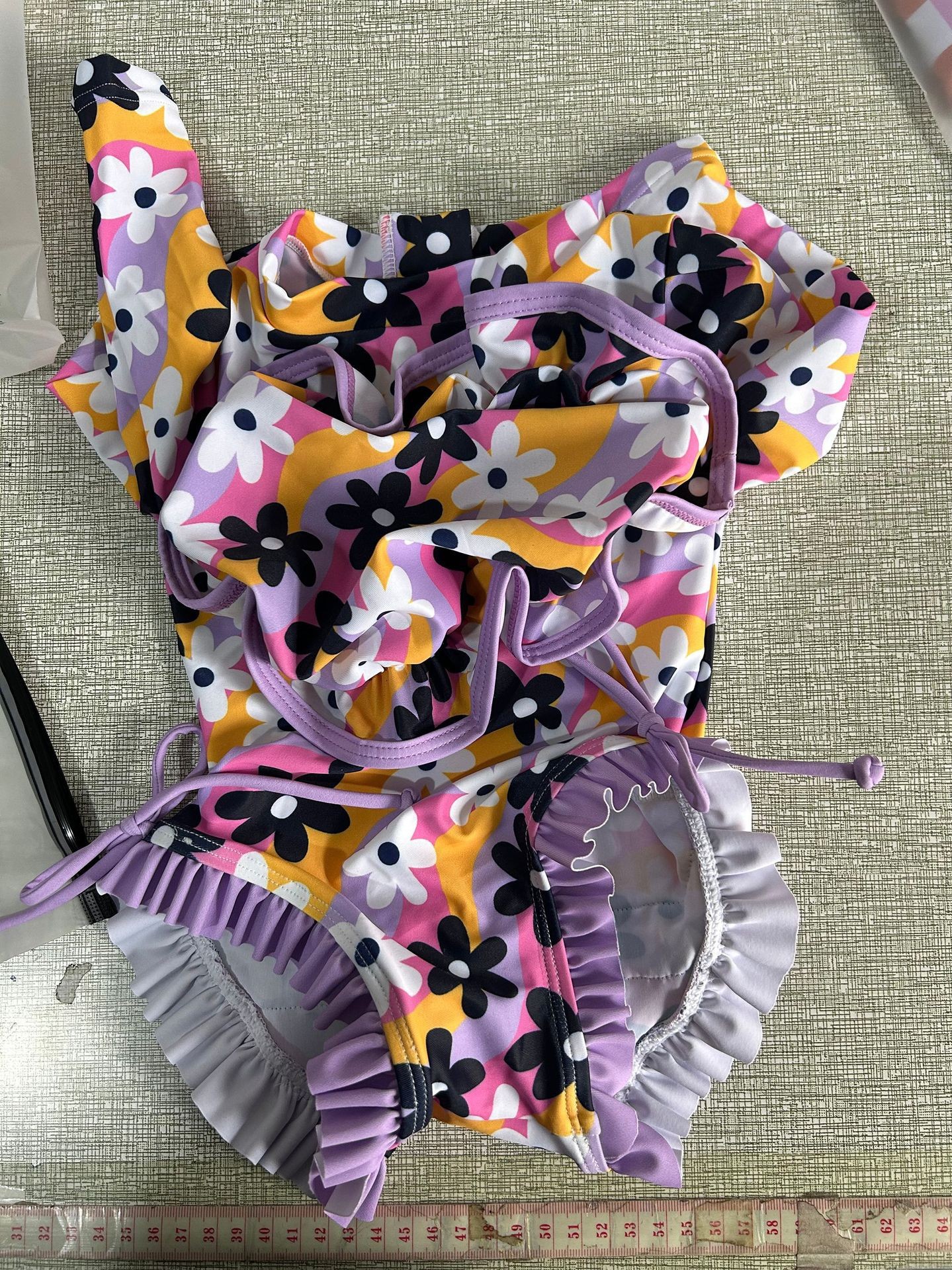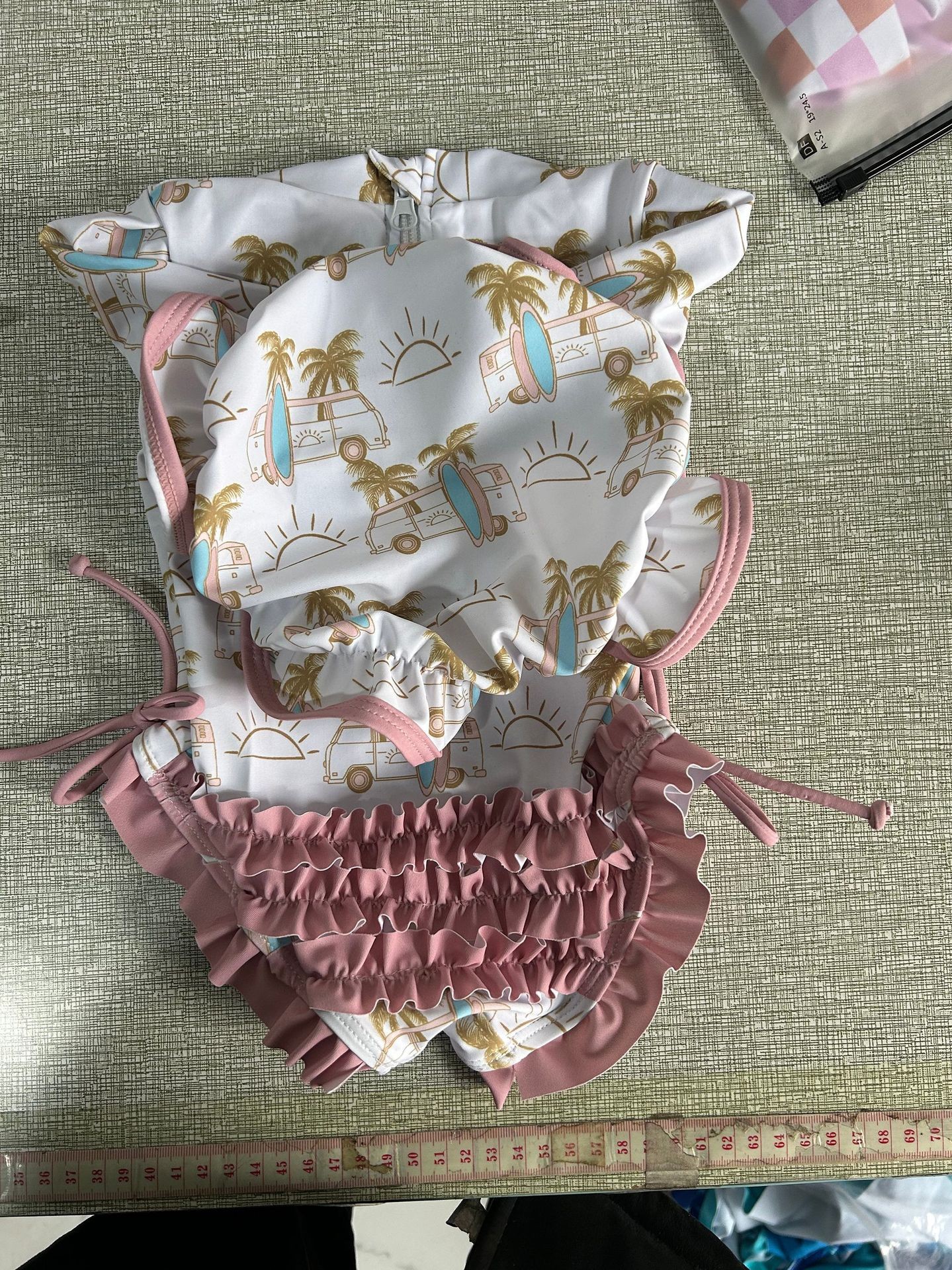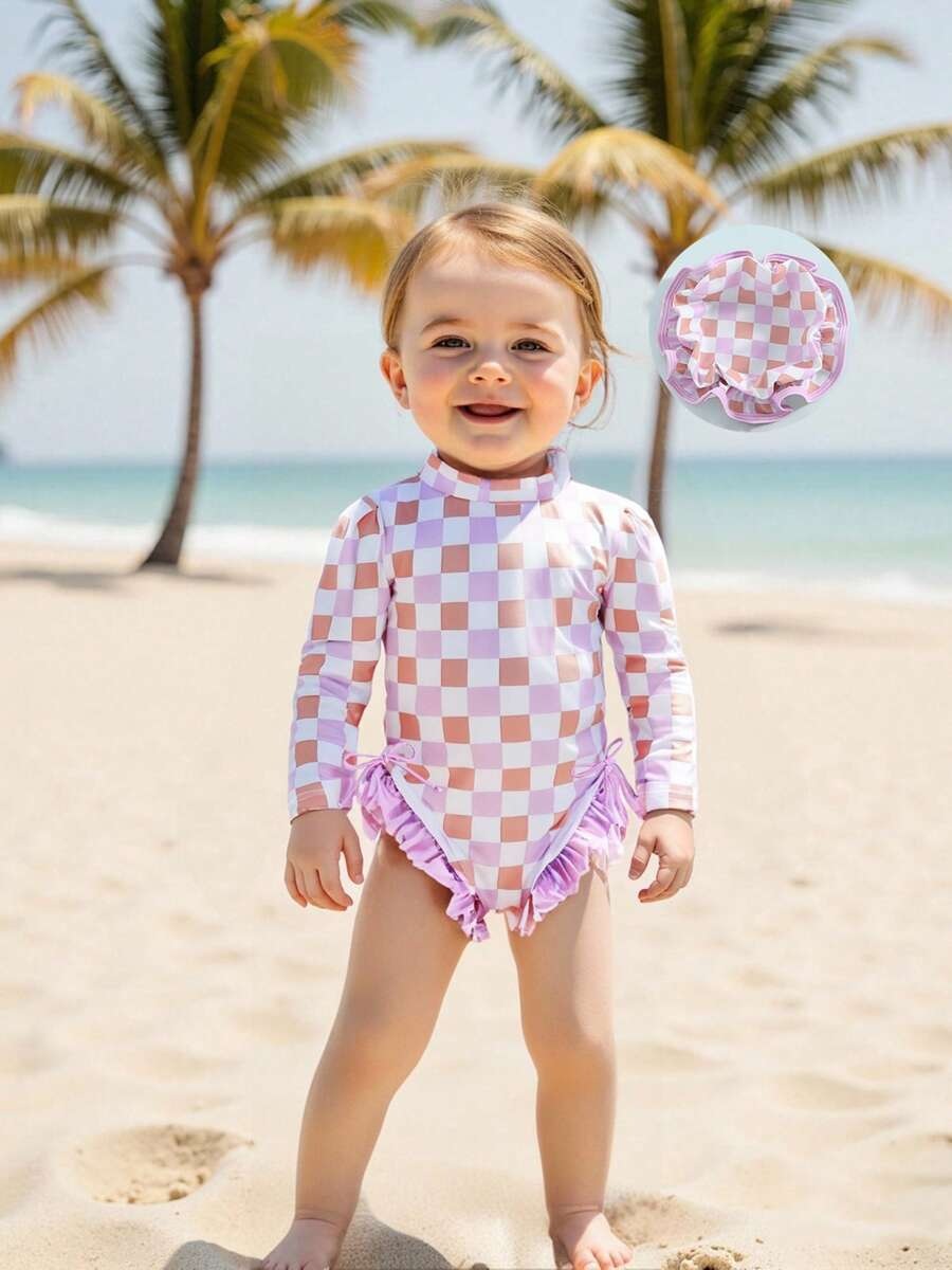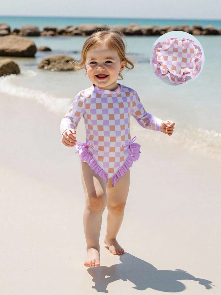 20240 국경 어린이 귀여운 주름 아기 원피스 수영복 인쇄 패션 스타일스토어 가기