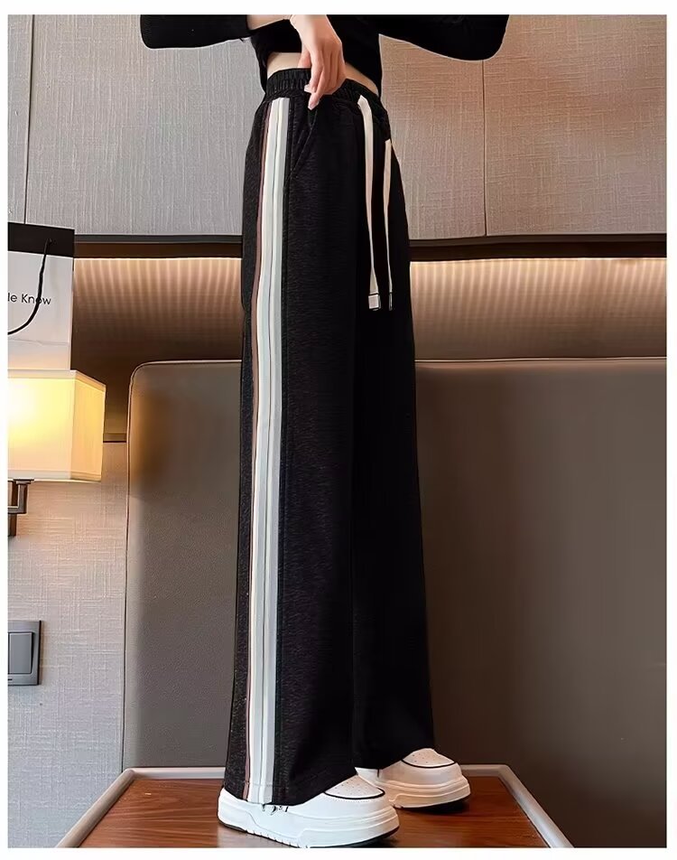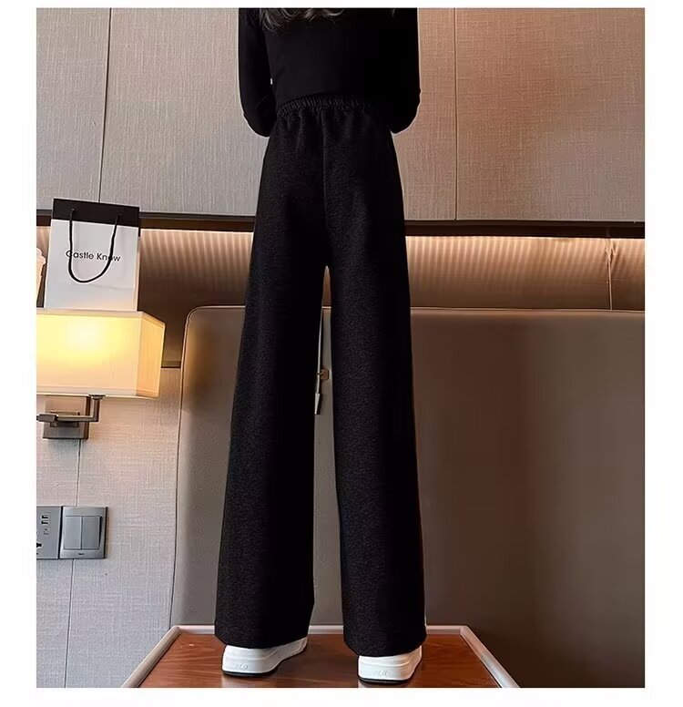 여자 바지 가을 겨울 2024 새로운 어린이 대비 기모 캐주얼 바지 여성 큰 어린이 느슨한 넓은 다리 바지 가을 착용