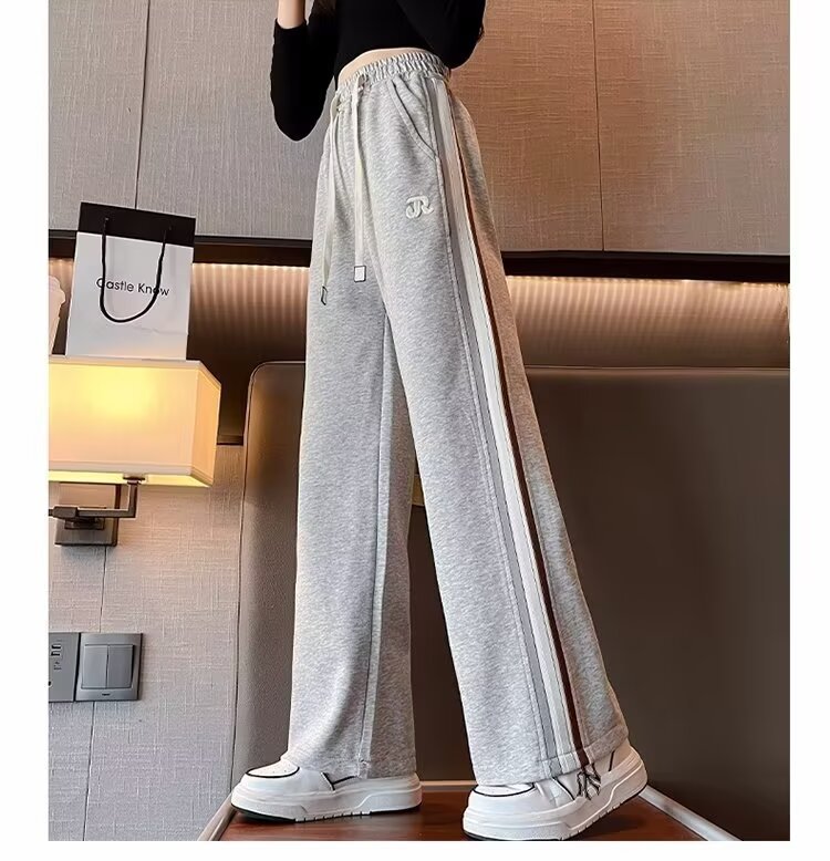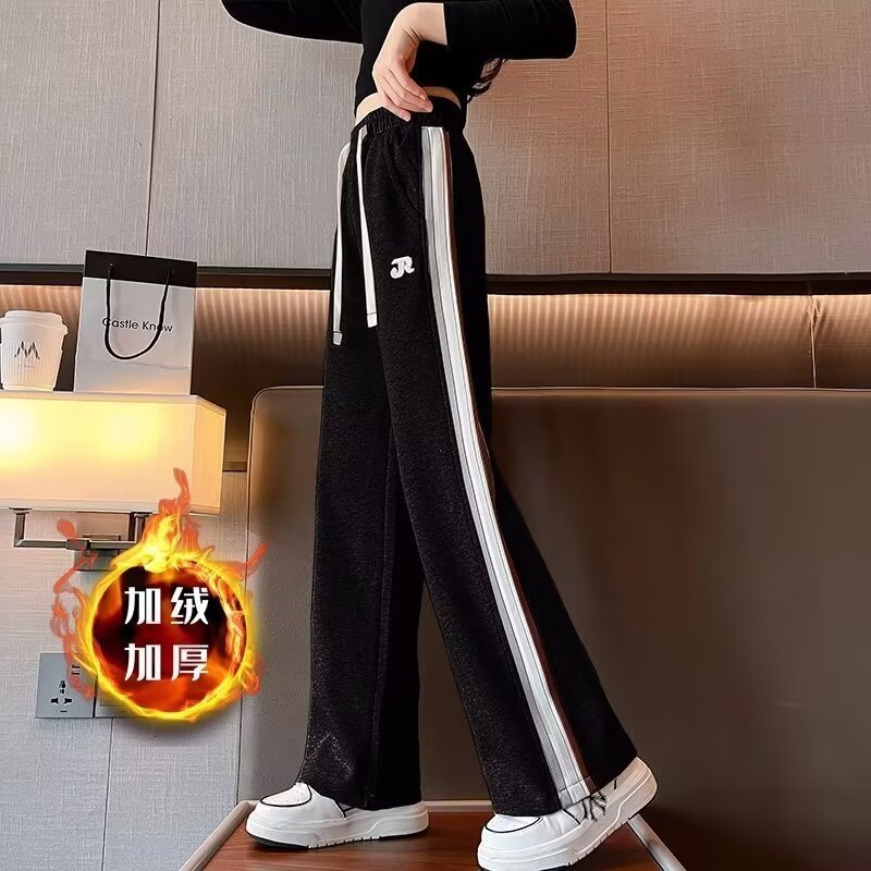 여자 바지 가을 겨울 2024 새로운 어린이 대비 기모 캐주얼 바지 여성 큰 어린이 느슨한 넓은 다리 바지 가을 착용스토어 가기