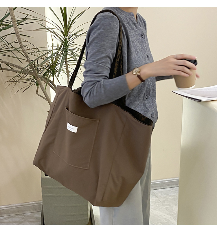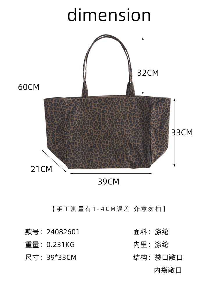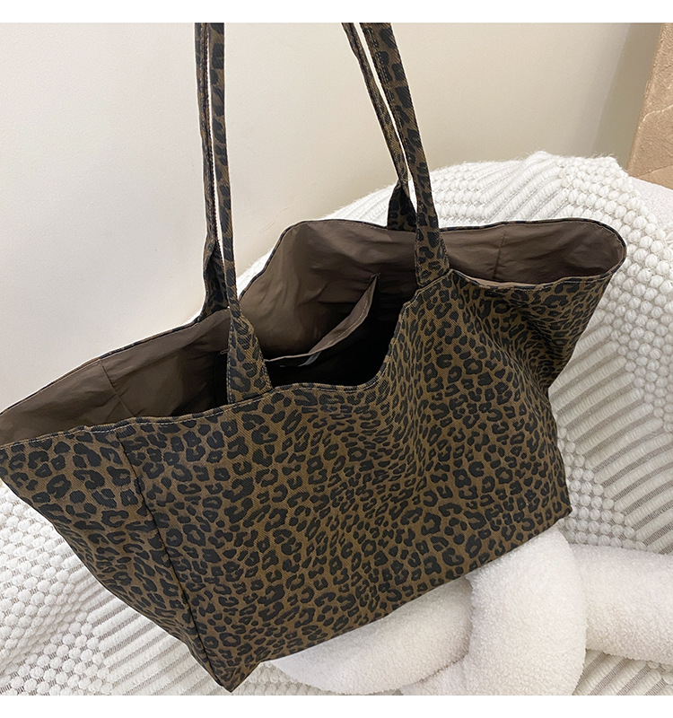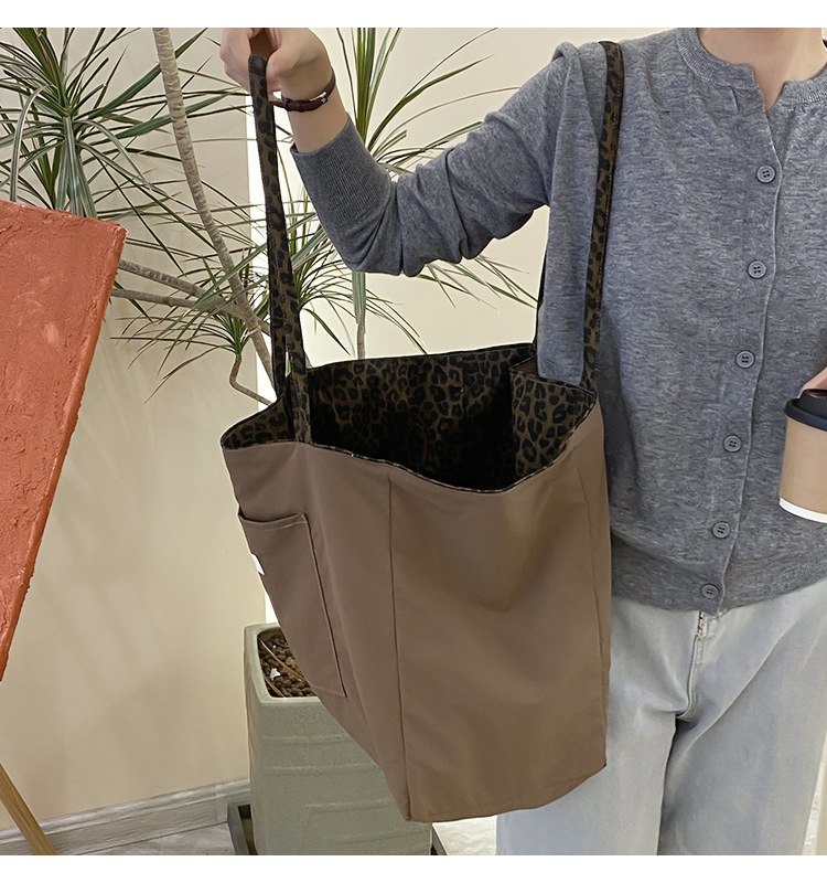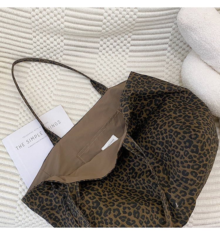 새로운 한국식 레오파드 무늬 어깨 가방 유행 올 매치 휴대용 캔버스 가방 캐주얼 대용량 통근 토트 백