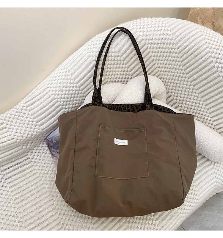 • 브라운 레오파드 포켓 대용량 양면 숄더