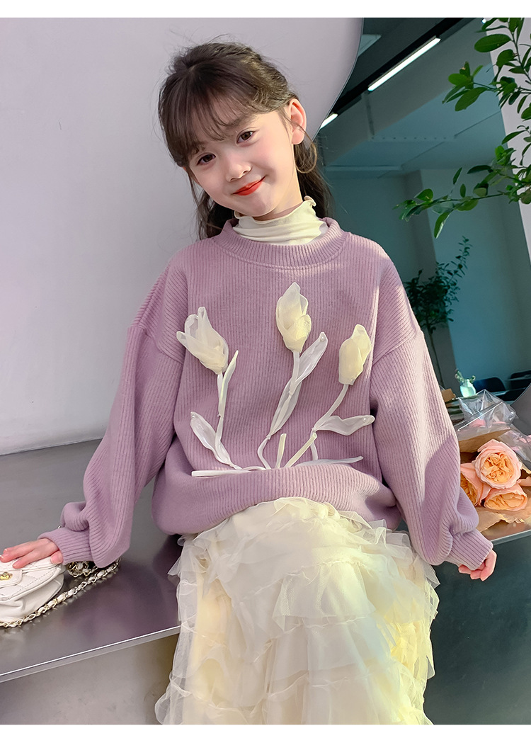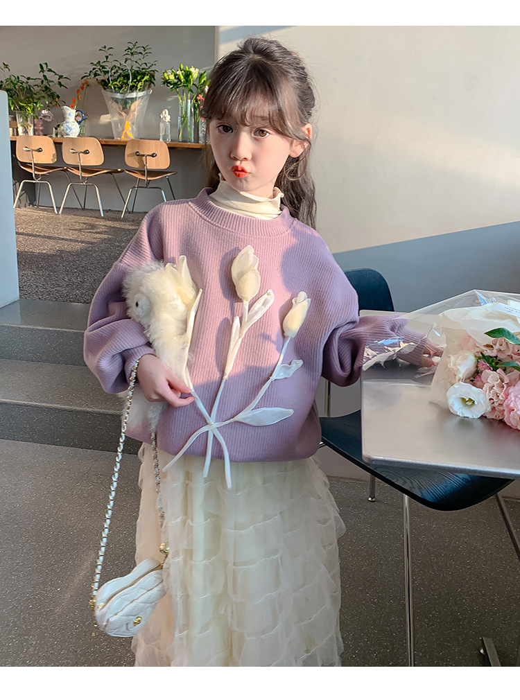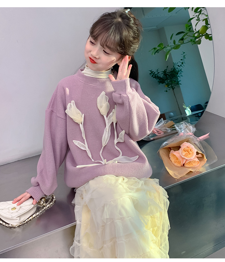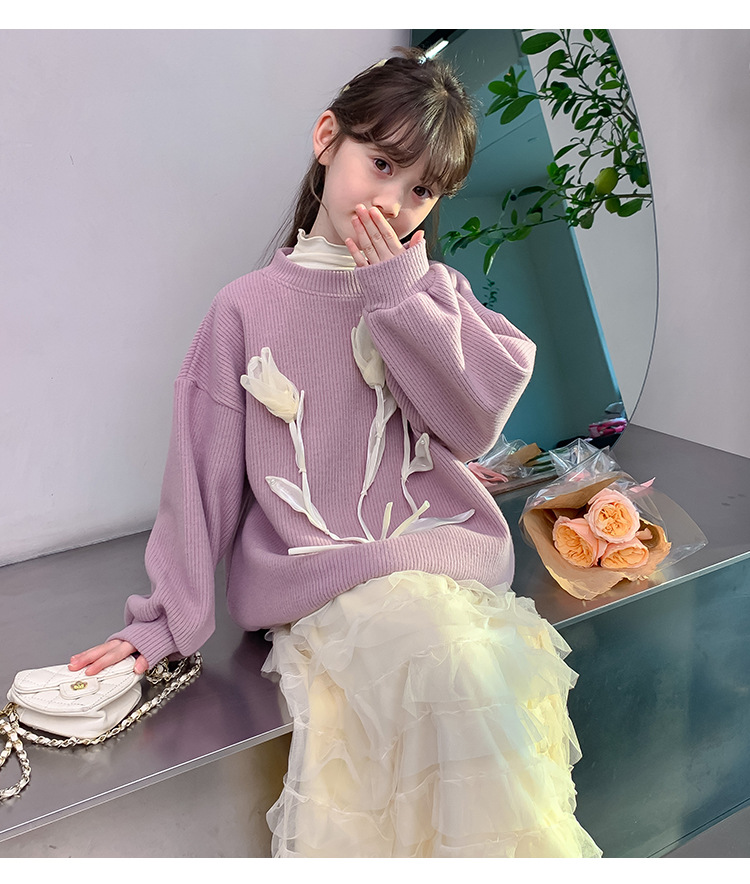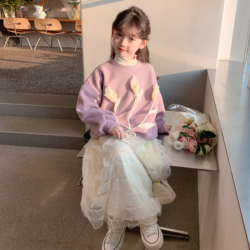 여자 세트 가을 겨울 새로운 어린이 입체 꽃 스웨터 기모 한국 공주 원사 스커트 투피스 세트