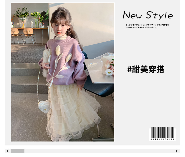 여자 세트 가을 겨울 새로운 어린이 입체 꽃 스웨터 기모 한국 공주 원사 스커트 투피스 세트스토어 가기