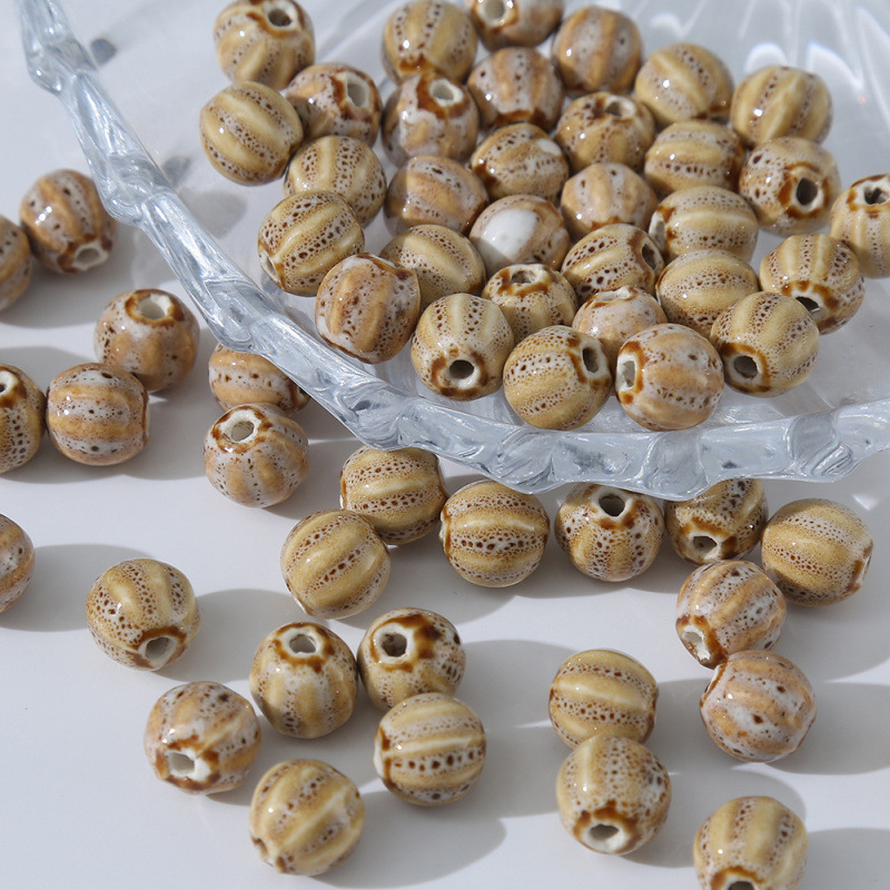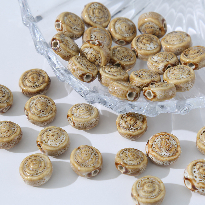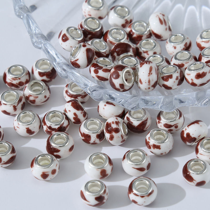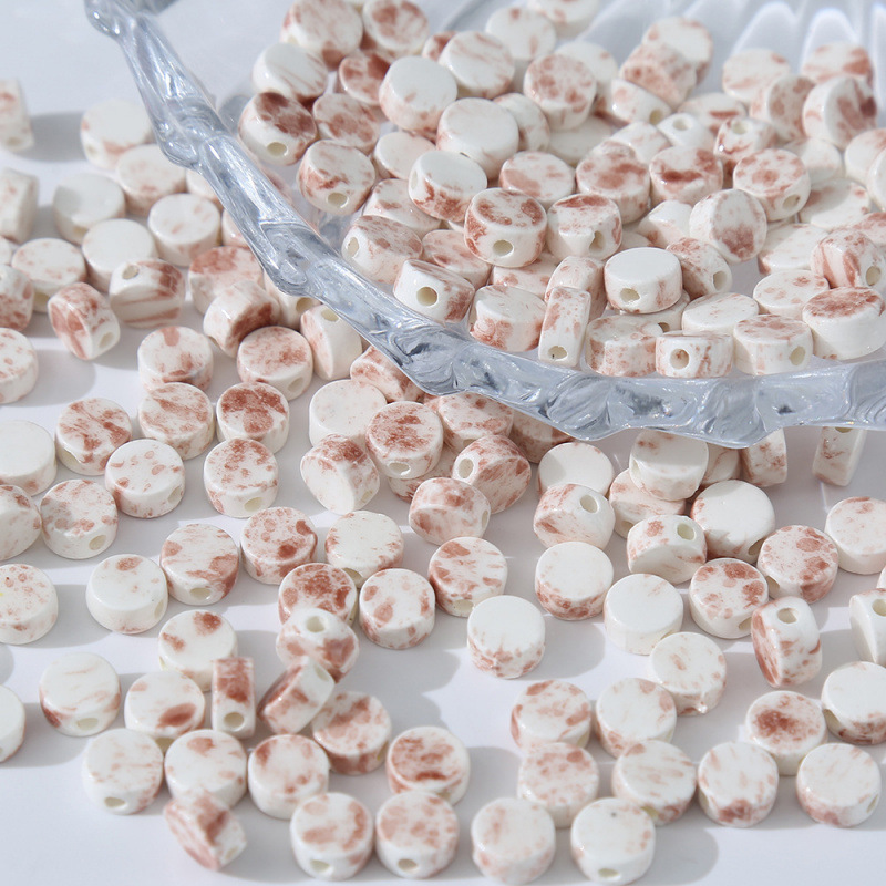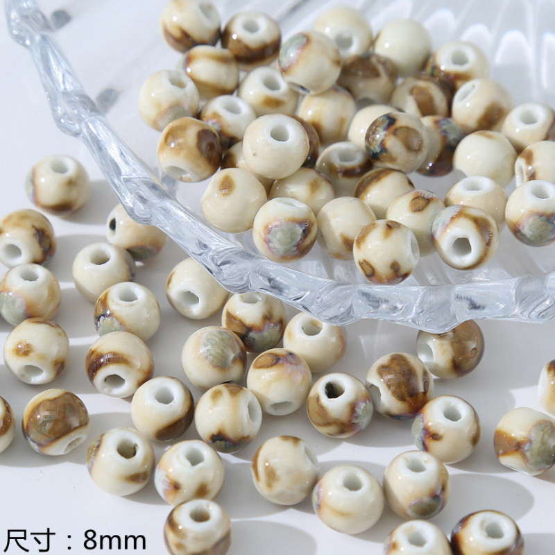가을과 겨울 우유 차 컬러 3 차원 세라믹 구슬 DIY 수제 재료 골동품 팔찌 목걸이 구멍이 뚫린 후광 구슬 액세서리스토어 가기