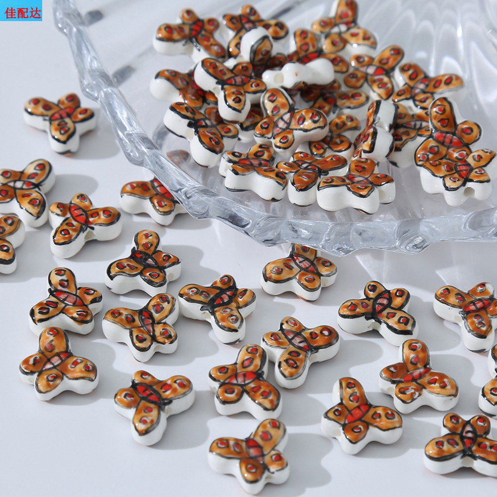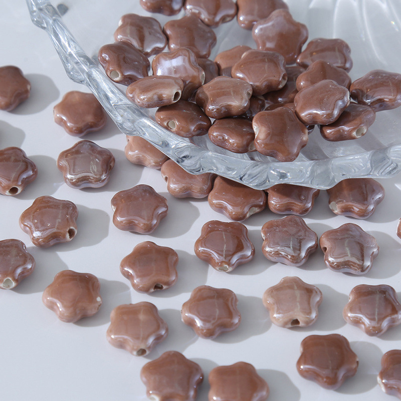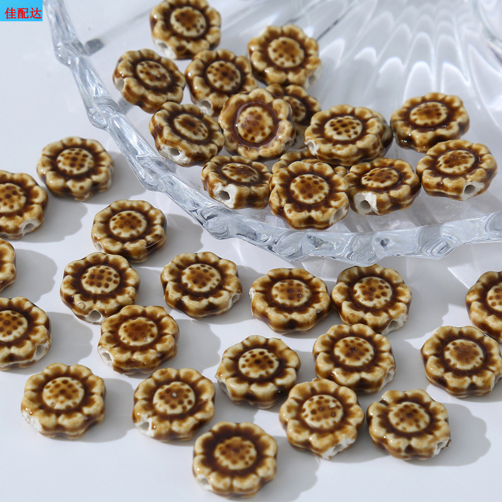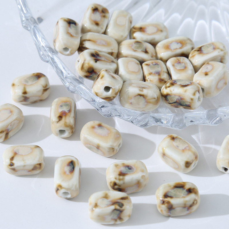 가을과 겨울 우유 차 컬러 3 차원 세라믹 구슬 DIY 수제 재료 골동품 팔찌 목걸이 구멍이 뚫린 후광 구슬 액세서리스토어 가기