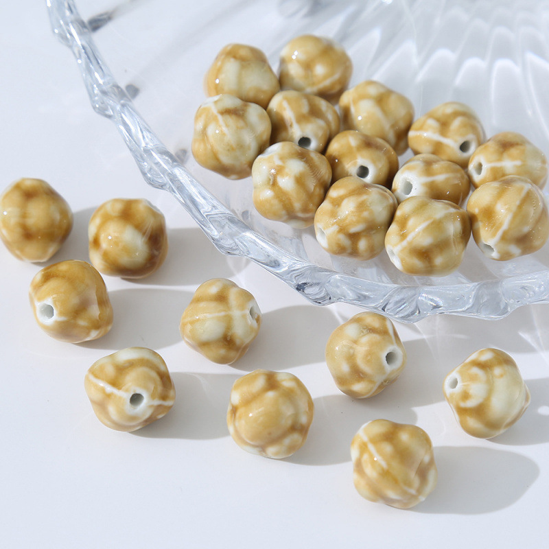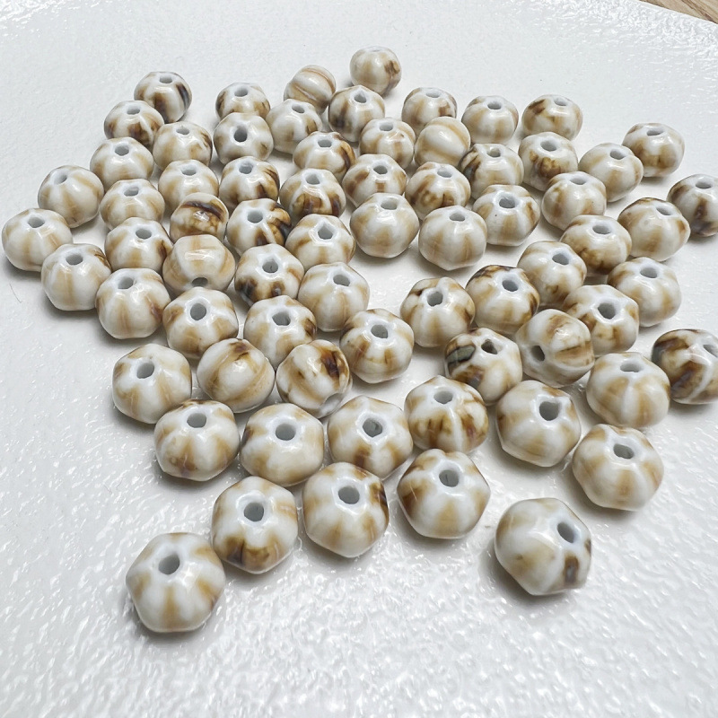 가을과 겨울 우유 차 컬러 3 차원 세라믹 구슬 DIY 수제 재료 골동품 팔찌 목걸이 구멍이 뚫린 후광 구슬 액세서리