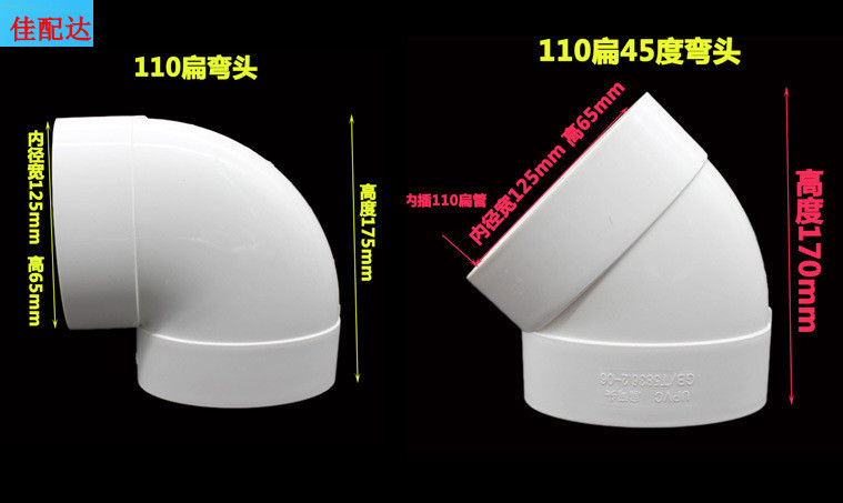 PVC110 편평한 파이프 이음쇠 편평한 직접 팔꿈치 감소 팔꿈치 변위 타원형 배수 이음쇠스토어 가기