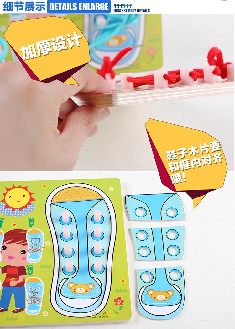 중산층 교육 지역 장난감 작은 클래스 생활 공간 넥타이 착용 미세 운동 훈련 유치원 어린이 레이스 교육 인식스토어 가기