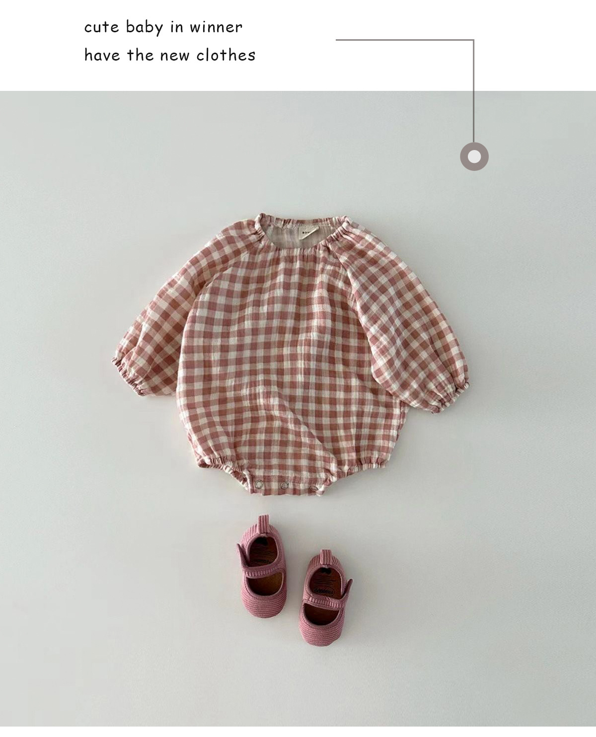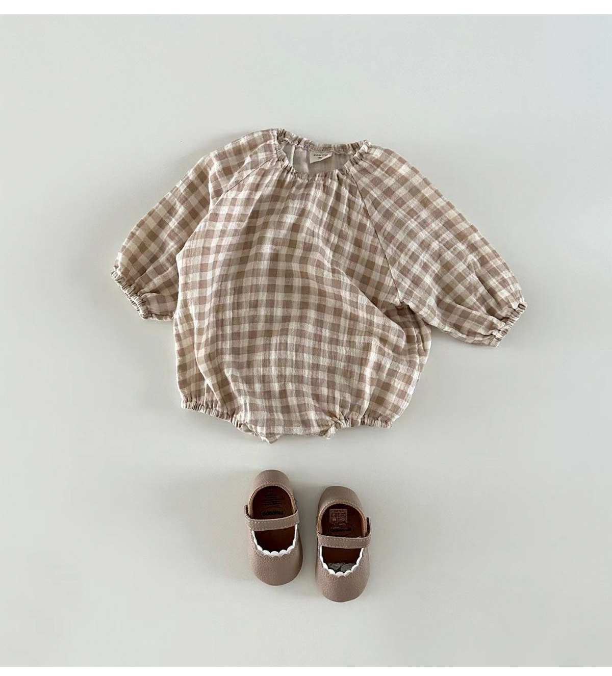 Ins 한국 새로운 꽃 점프 수트 아기와 유아 면사 격자 무늬 인쇄 가방 뚱뚱한 옷 아기 등반 옷스토어 가기