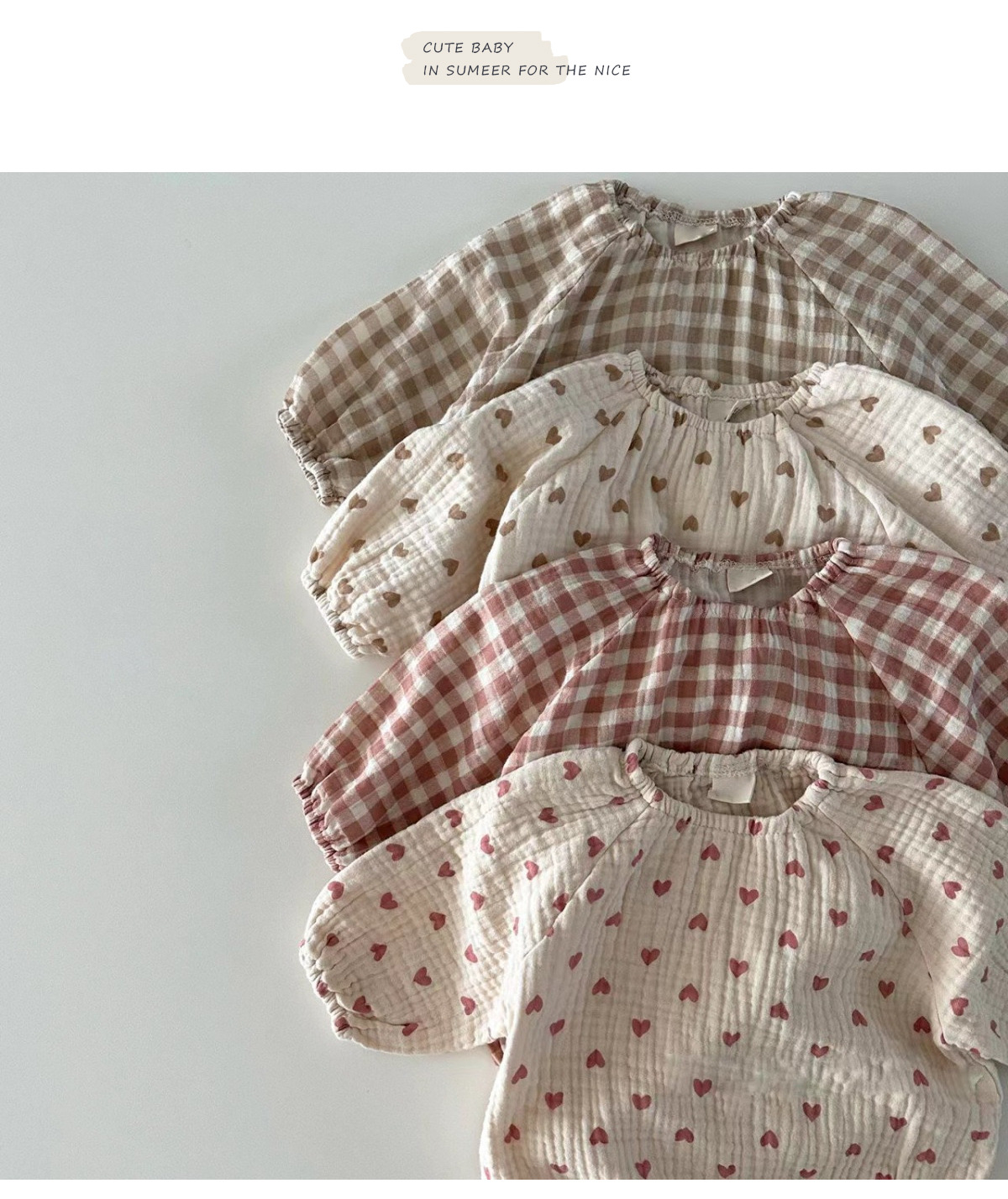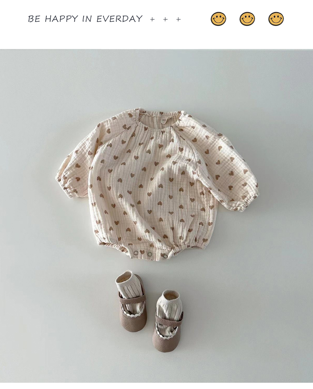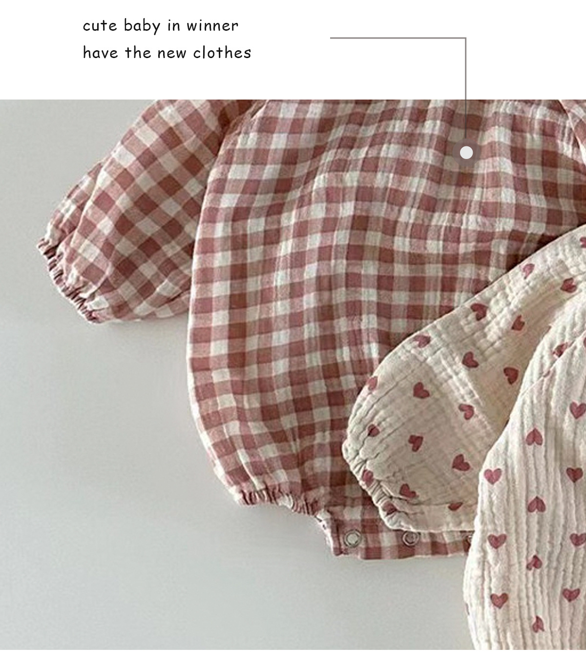 Ins 한국 새로운 꽃 점프 수트 아기와 유아 면사 격자 무늬 인쇄 가방 뚱뚱한 옷 아기 등반 옷