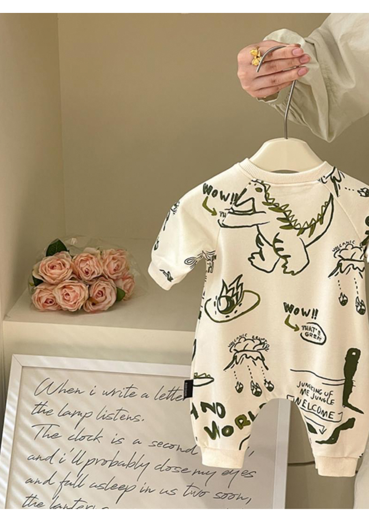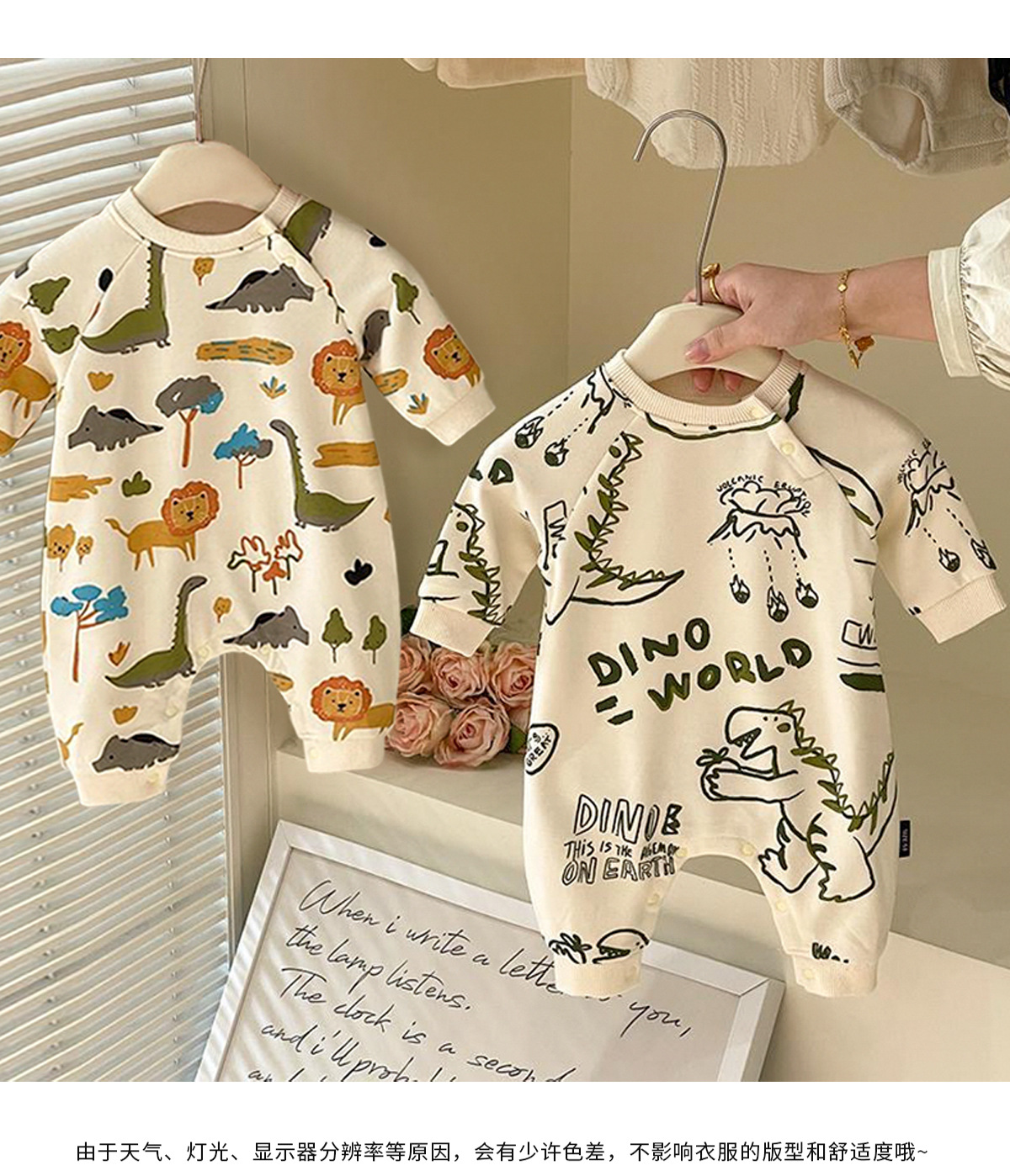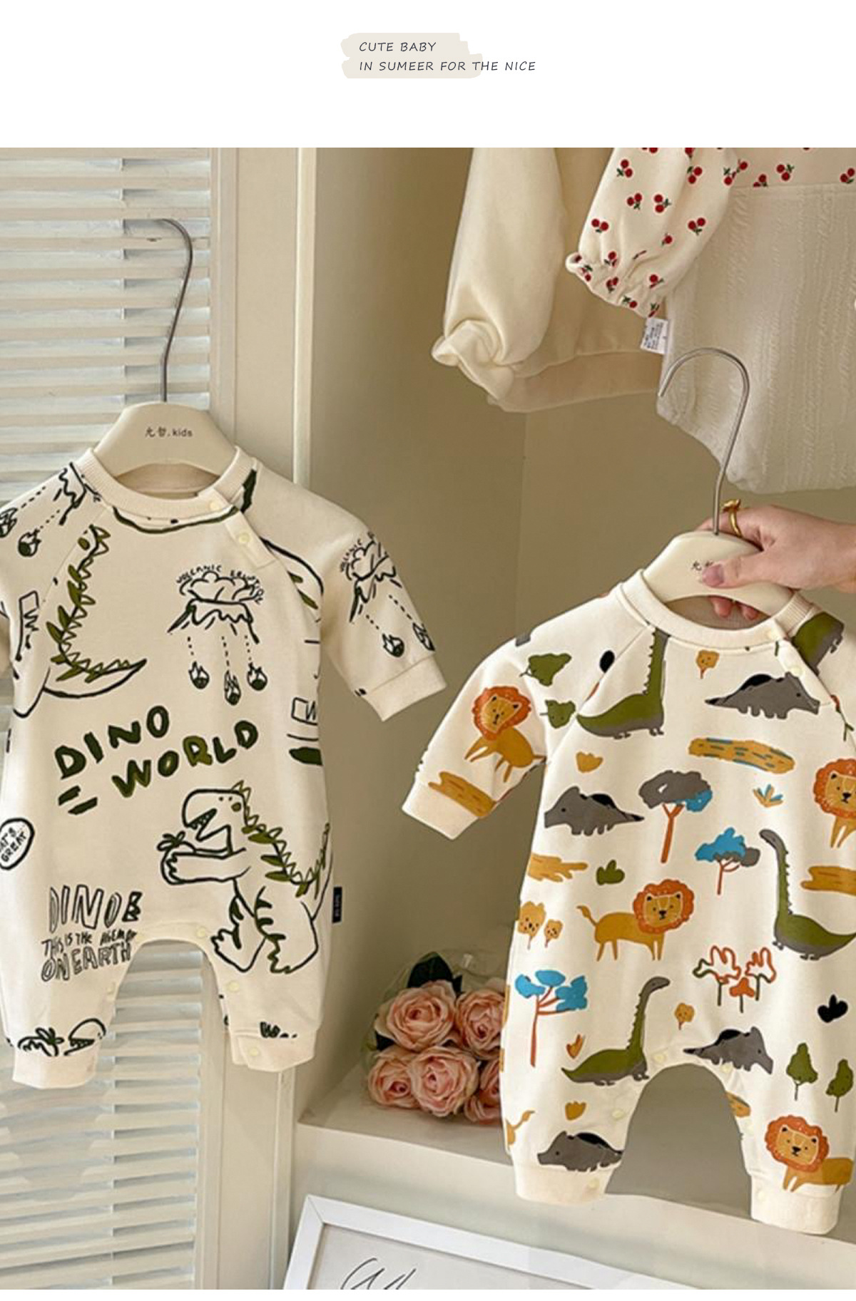 아기 가을 겨울 새로운 공룡 테마 동물 긴팔 소년 소녀 가을 바디 수트
