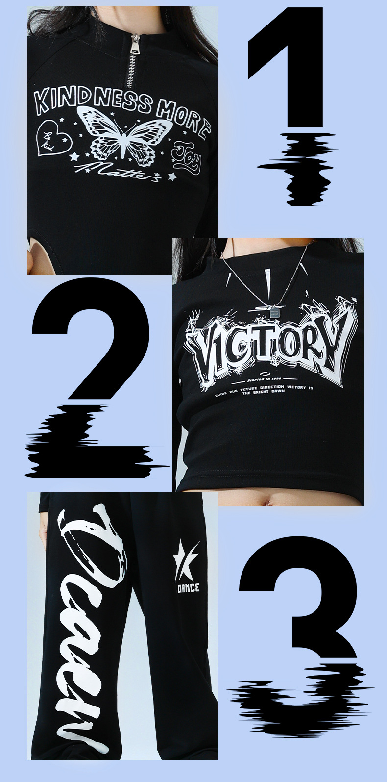 • 긴 소매: 싱글 A587 블랙 레터 프린트 탑