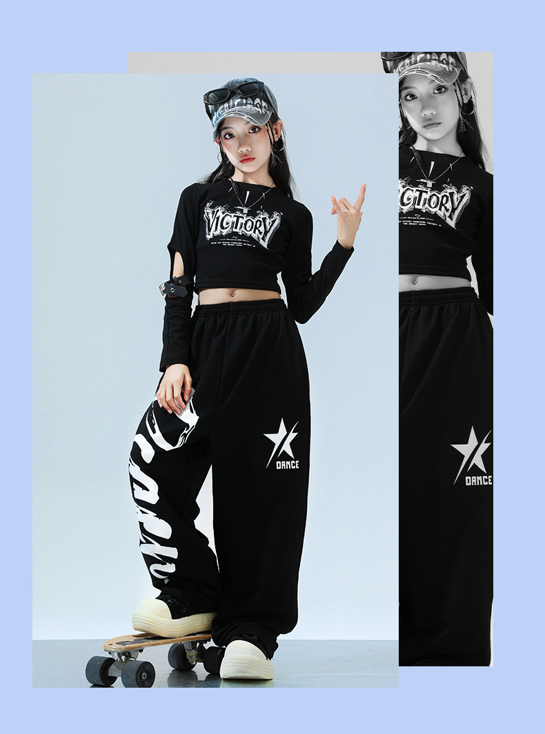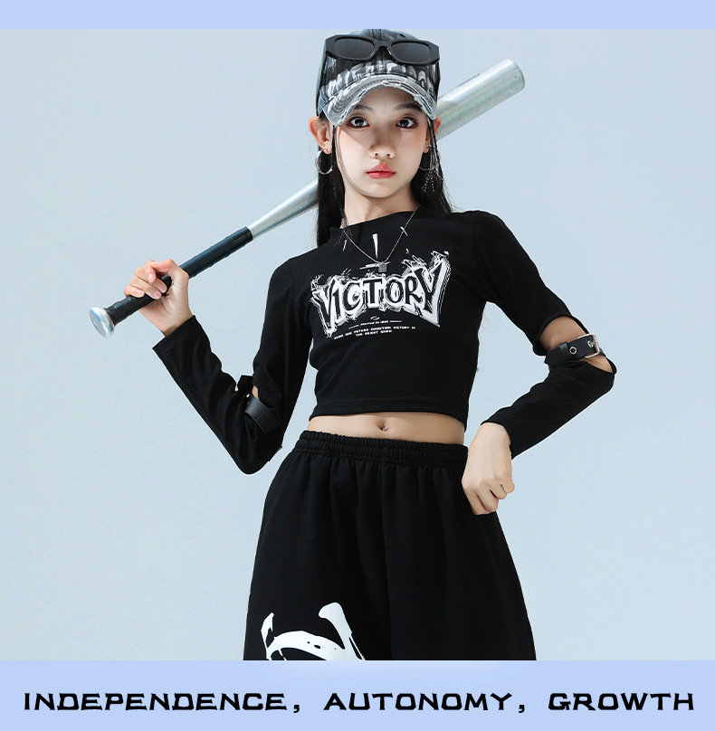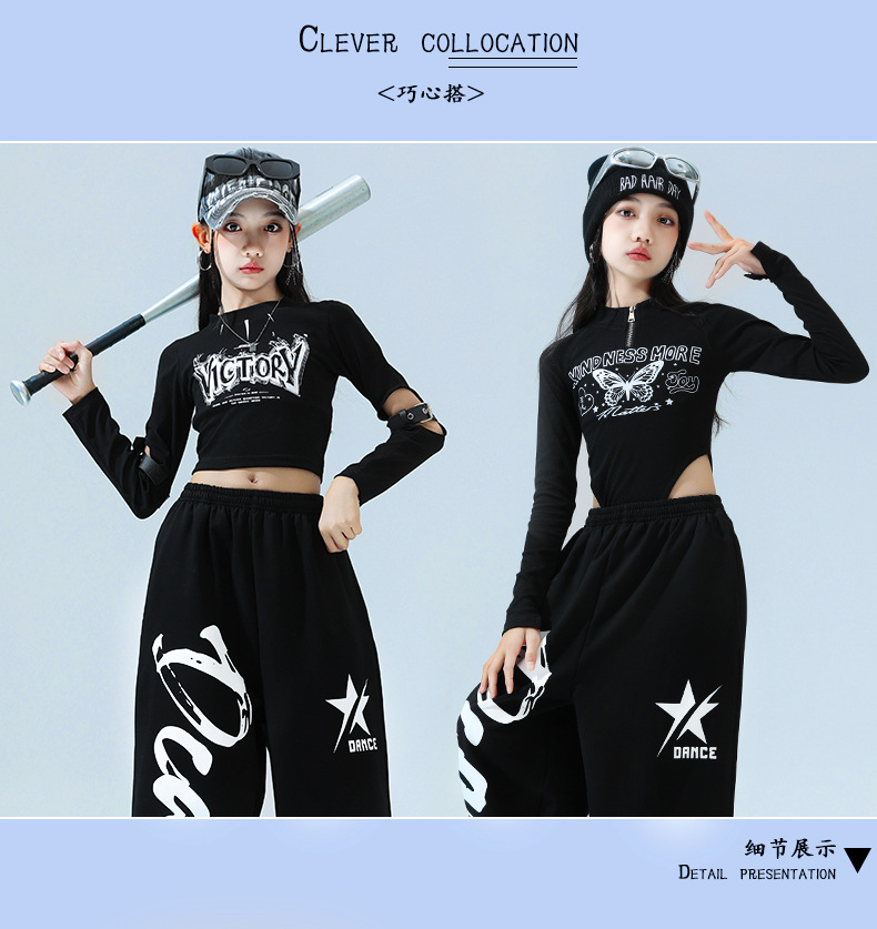 어린이 재즈 댄스 의상 폭발 거리 세트 Navel JAZZ 스트리트 댄스 공연 의상 소녀 댄스 쇼 패션 의상
