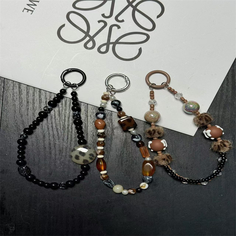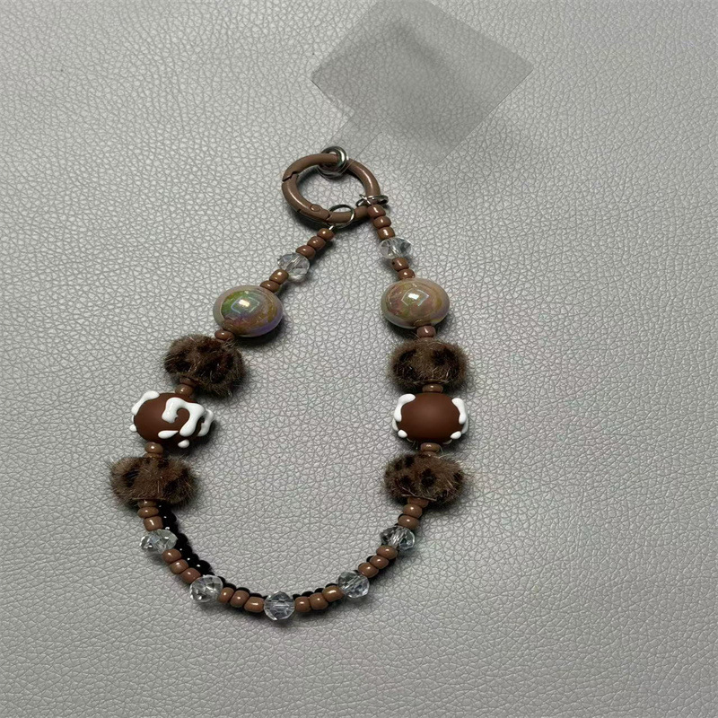 • 플러시 레오파드 프린트 비즈 행잉 체인 + 카드