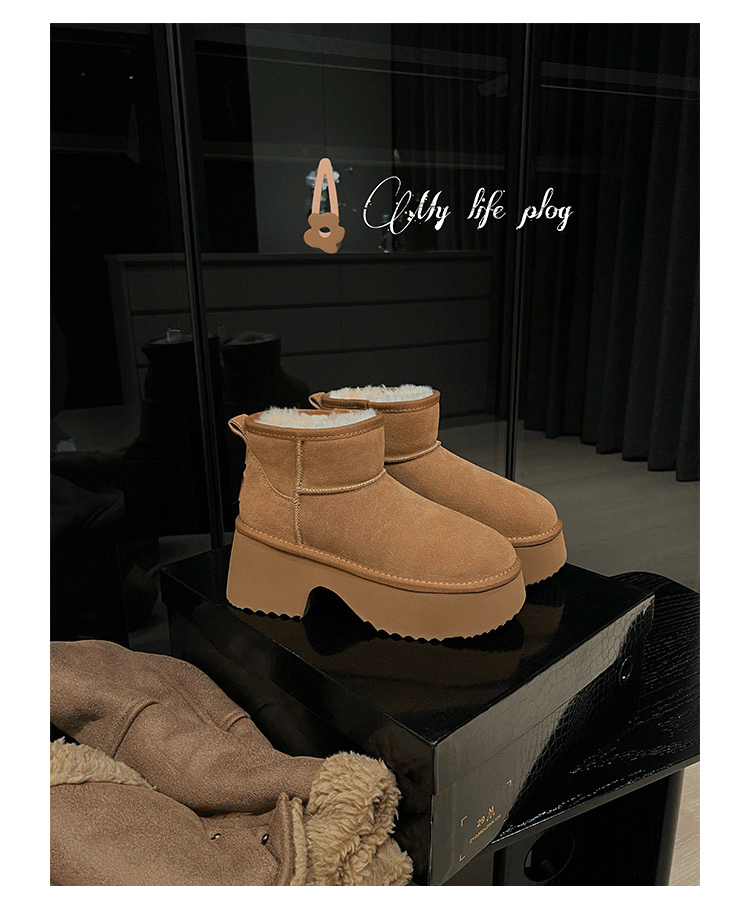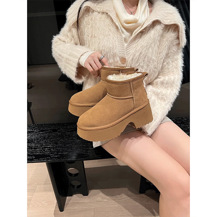 두꺼운 밑창 강화 인어 스노우 부츠 여성의 겨울 새로운 두꺼운 벨벳 따뜻한 가죽 양모 코튼 신발 두꺼운 뒤꿈치 코튼 부츠스토어 가기