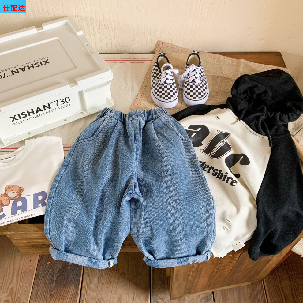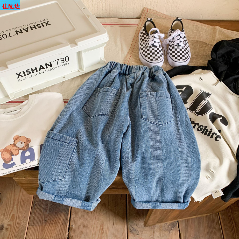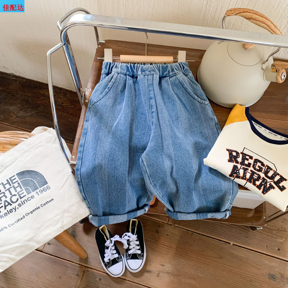 어린이 바지 2024 Boncheng 봄 새 소년 한국 스타일 수직 청바지 느슨한 무 바지 유행 F0029스토어 가기