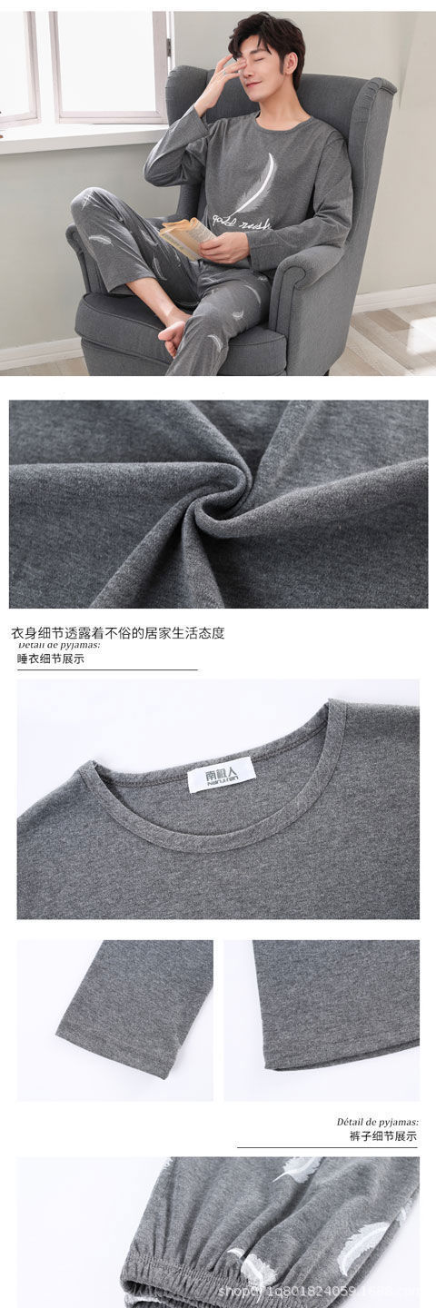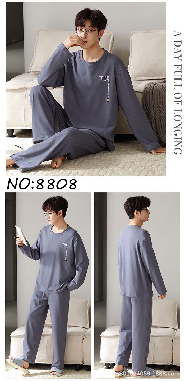 [밀크 실크] 잠옷 남성용 긴 소매 봄 · 가을 느슨한 플러스 사이즈 청소년 캐주얼 남성용 얇은 가정 옷스토어 가기