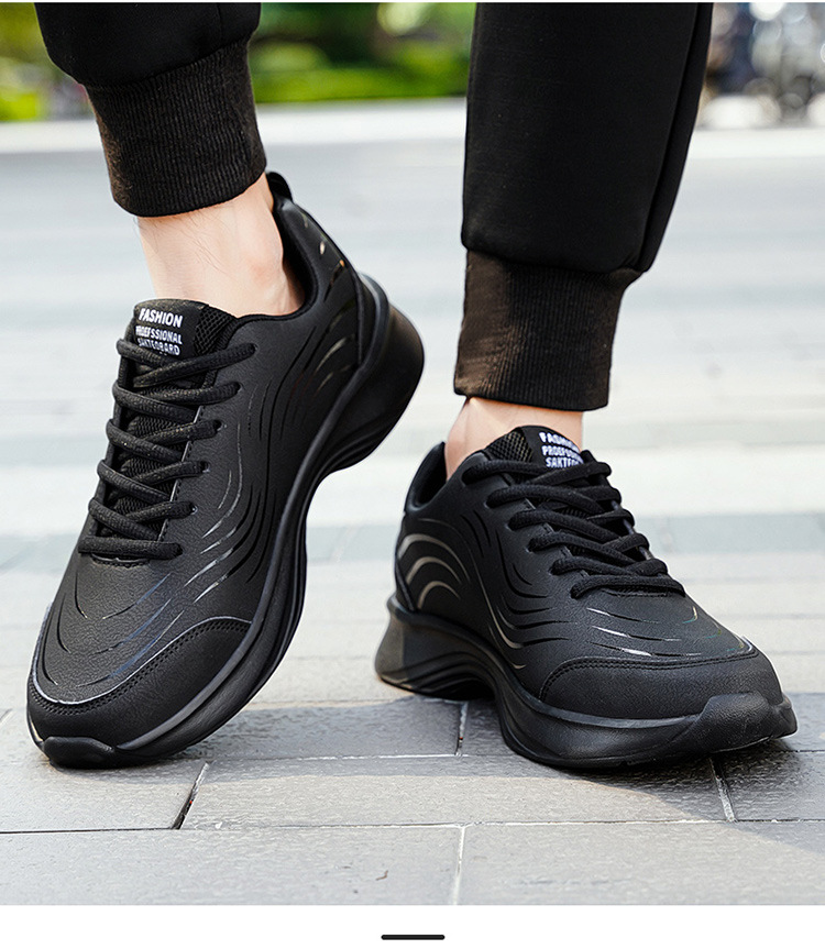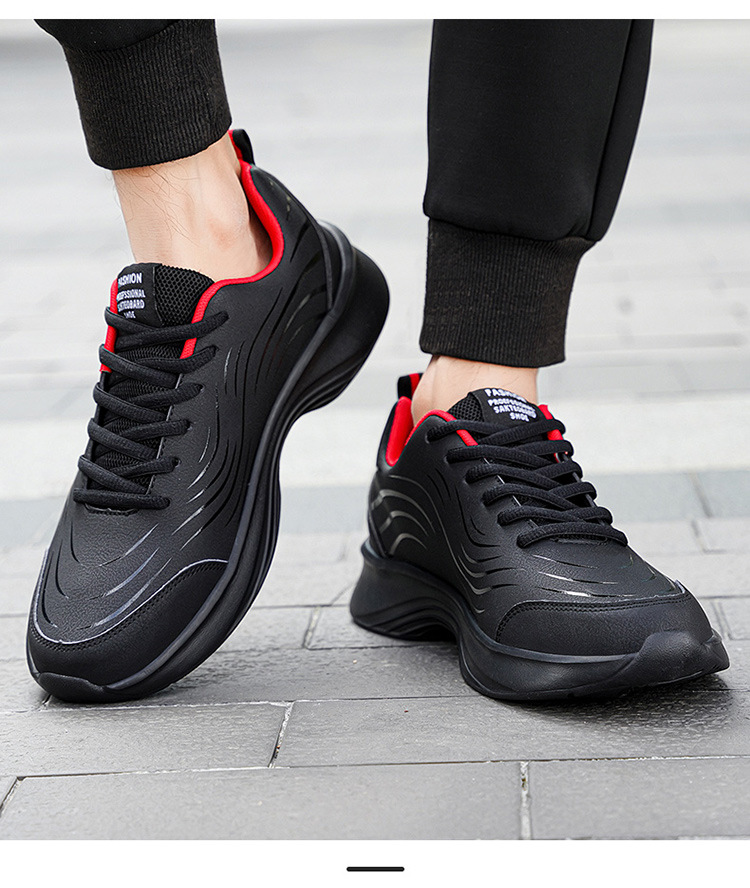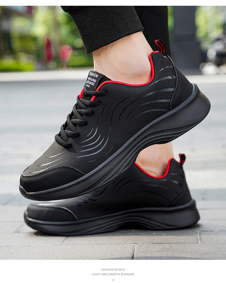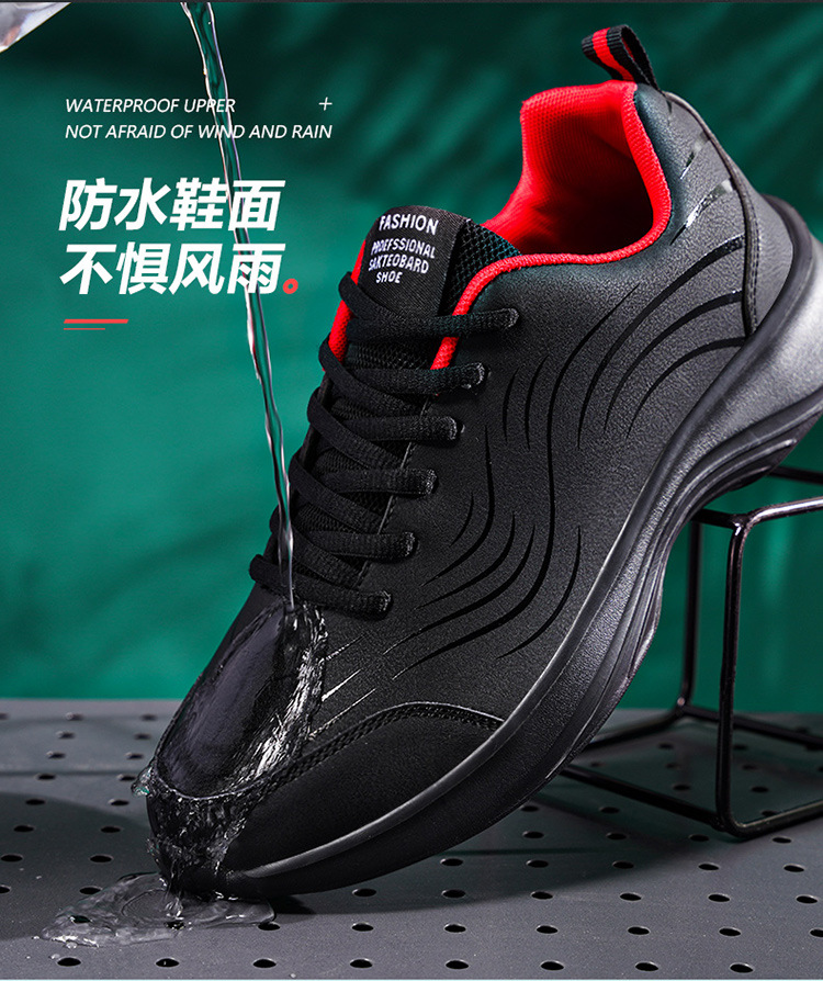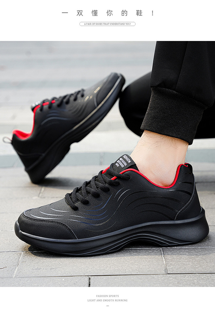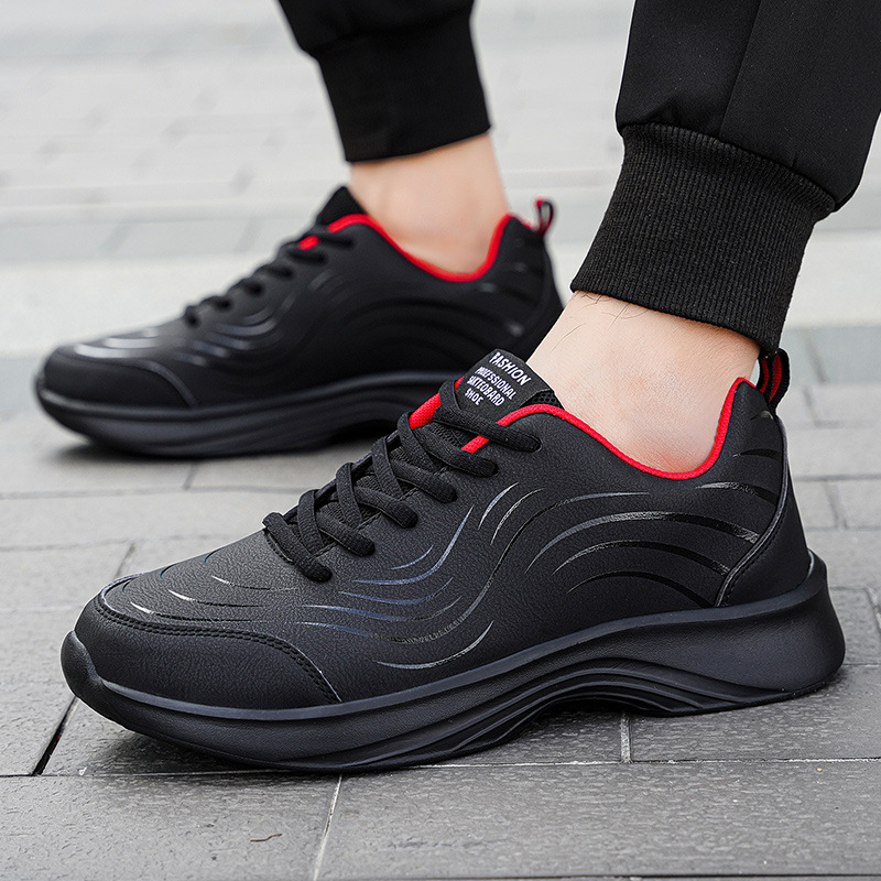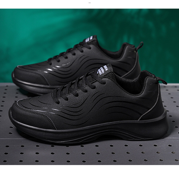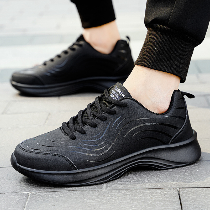 남자 신발 2024 가을과 겨울 검은 가죽 운동화 방수 미끄럼 방지 캐주얼 러닝 슈즈 경량 소프트 하단 올 매치스토어 가기