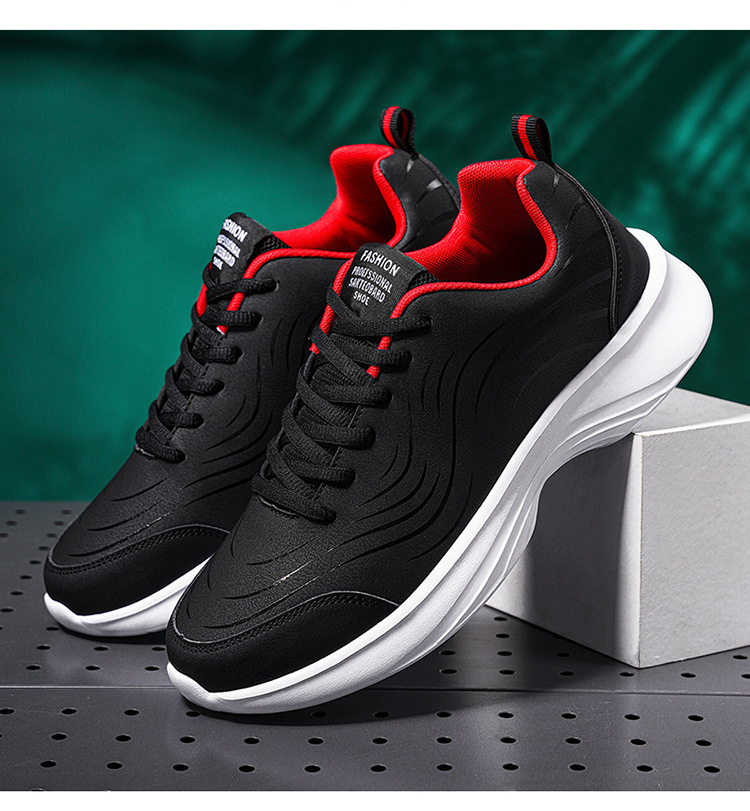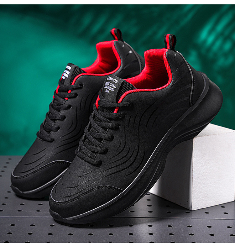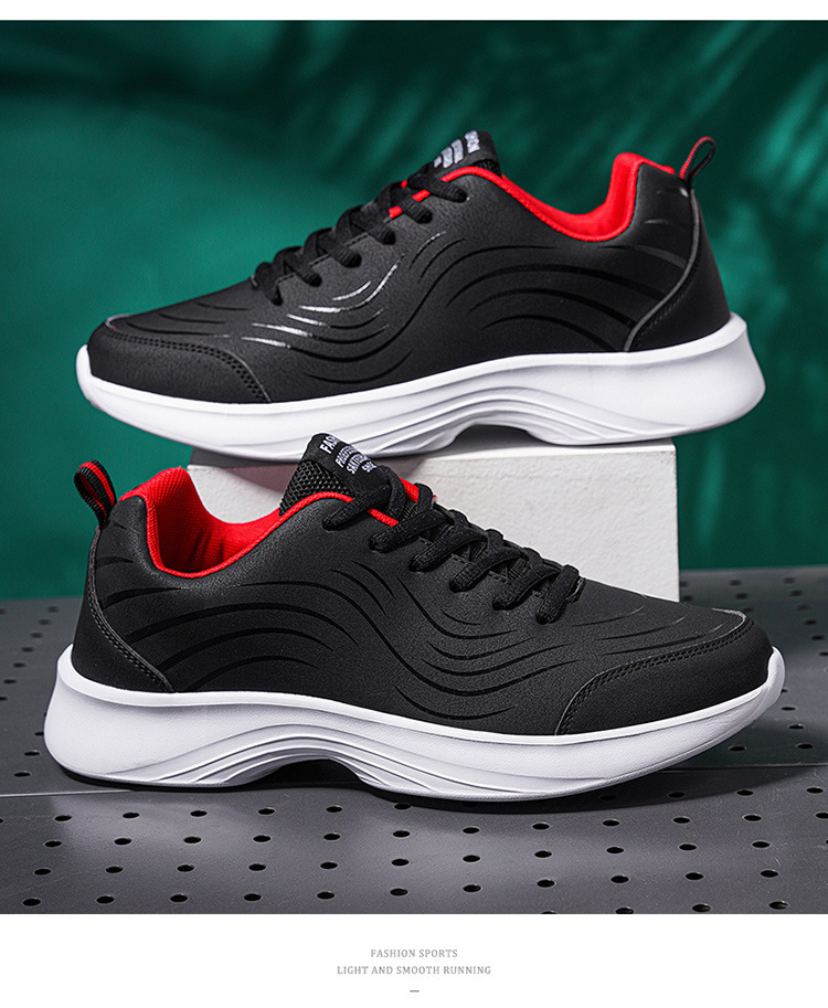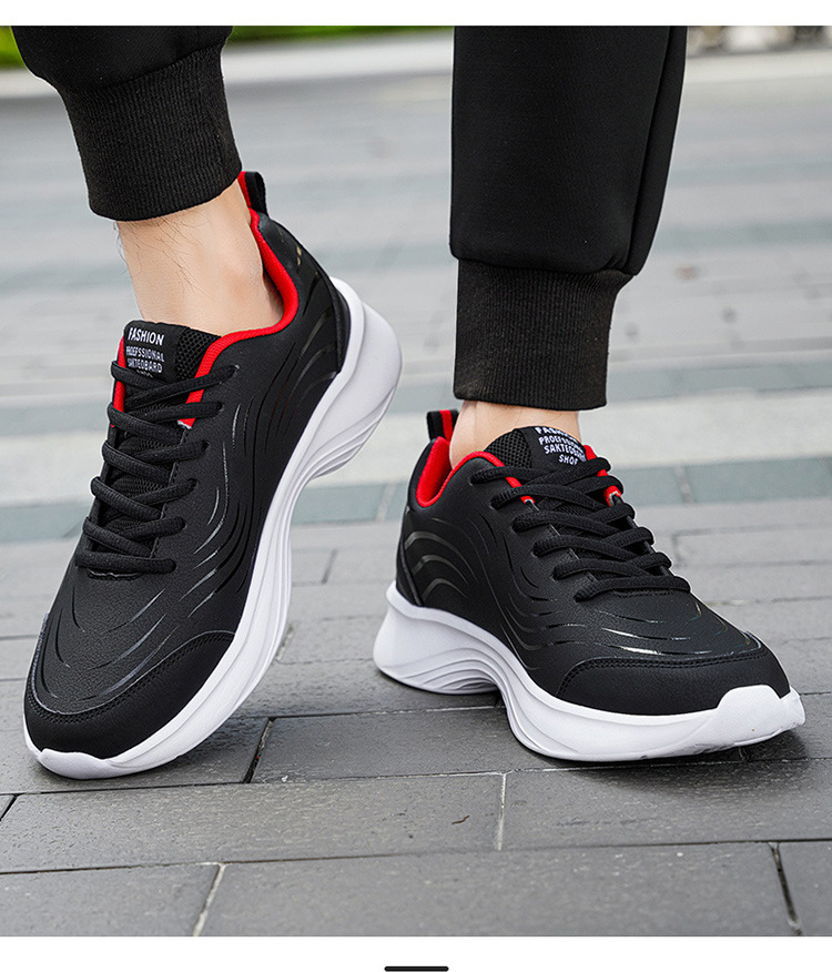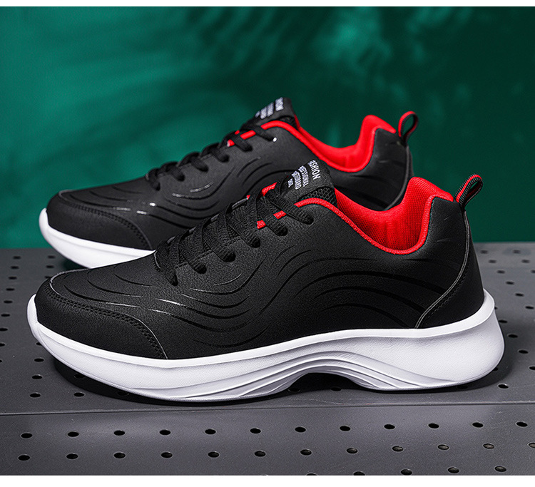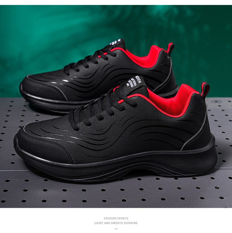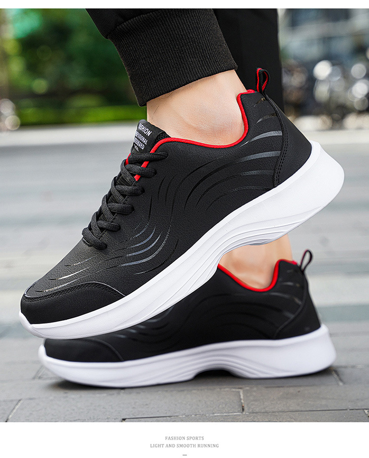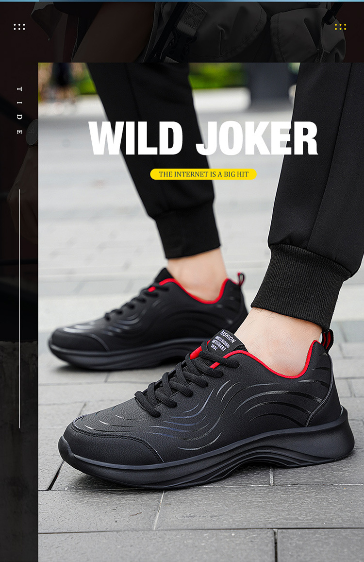 남자 신발 2024 가을과 겨울 검은 가죽 운동화 방수 미끄럼 방지 캐주얼 러닝 슈즈 경량 소프트 하단 올 매치스토어 가기