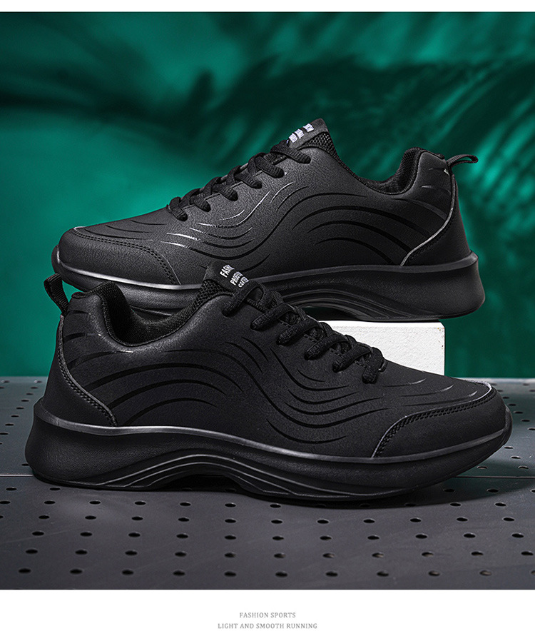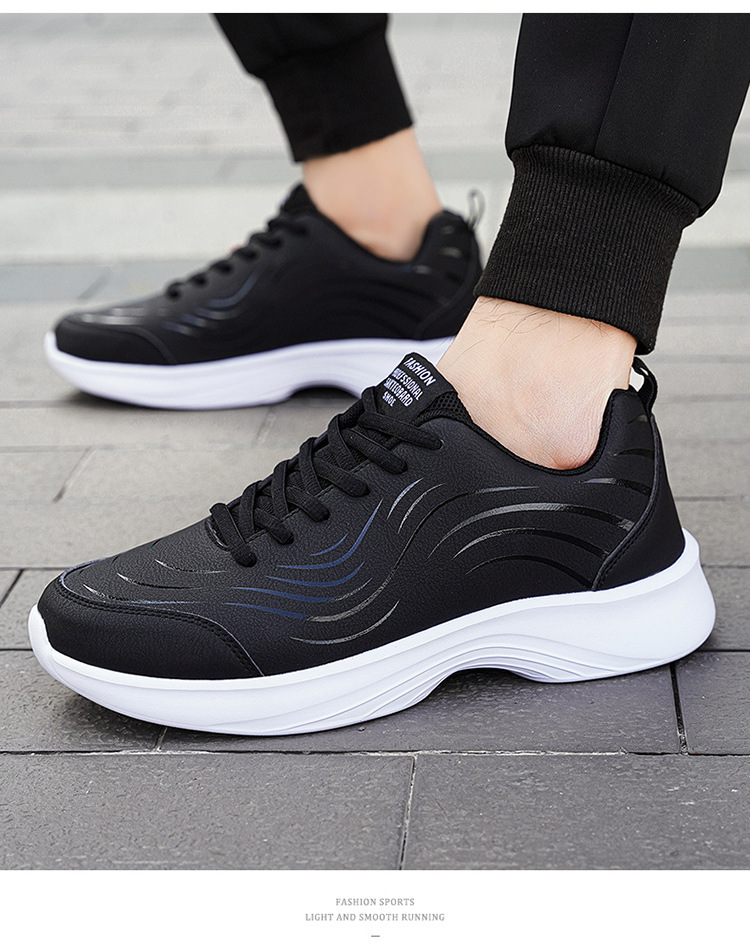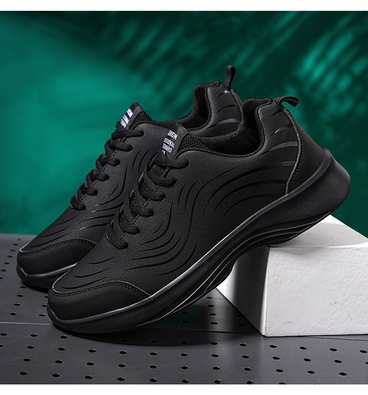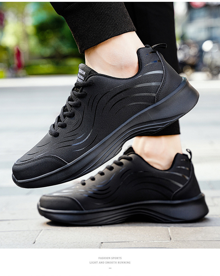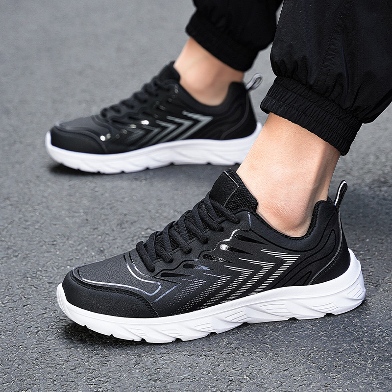 남자 신발 2024 가을과 겨울 검은 가죽 운동화 방수 미끄럼 방지 캐주얼 러닝 슈즈 경량 소프트 하단 올 매치
