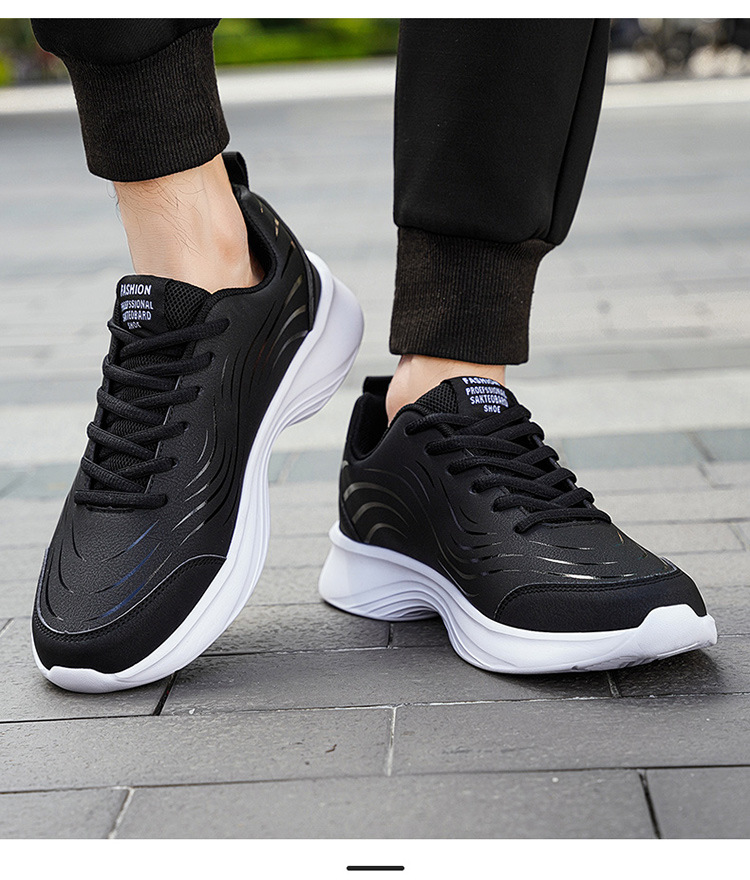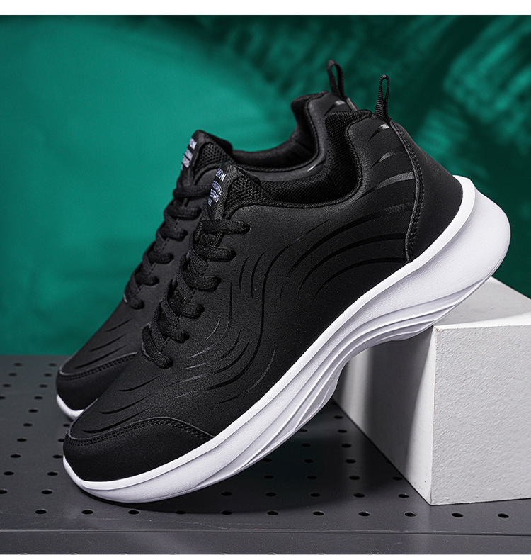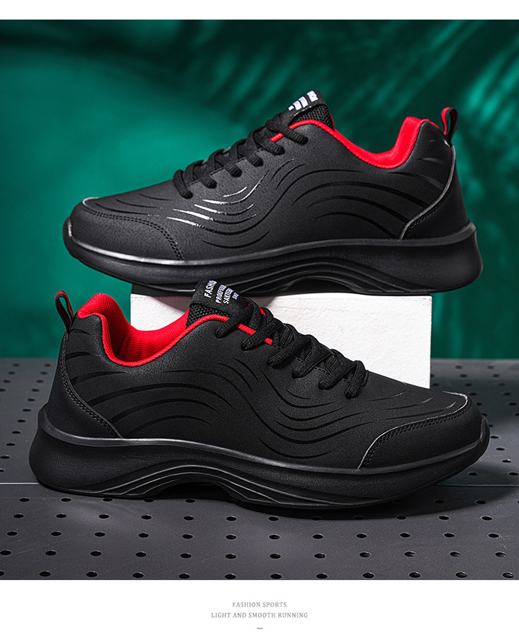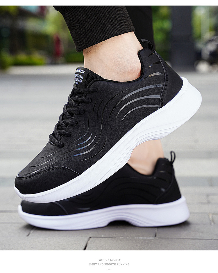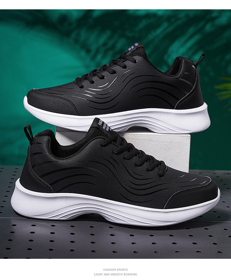남자 신발 2024 가을과 겨울 검은 가죽 운동화 방수 미끄럼 방지 캐주얼 러닝 슈즈 경량 소프트 하단 올 매치