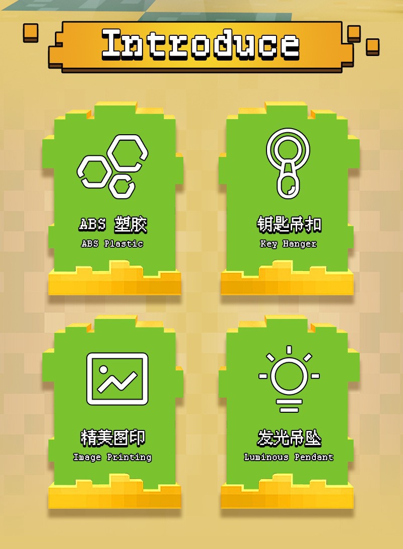 MC 미니 내 세계 빛나는 키 체인 블록 빛 새로운 이상한 펜던트 작은 장난감 창조적 인 장난감스토어 가기