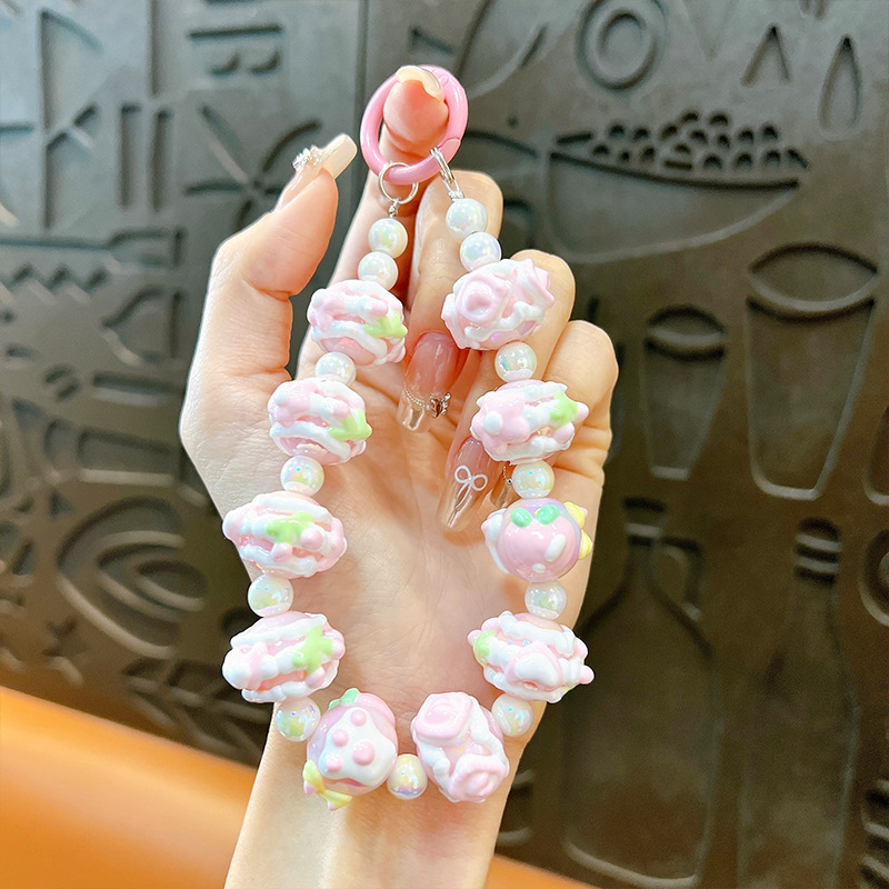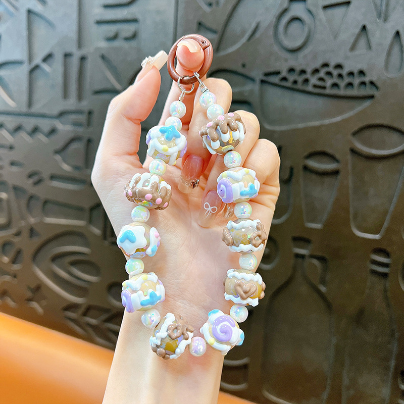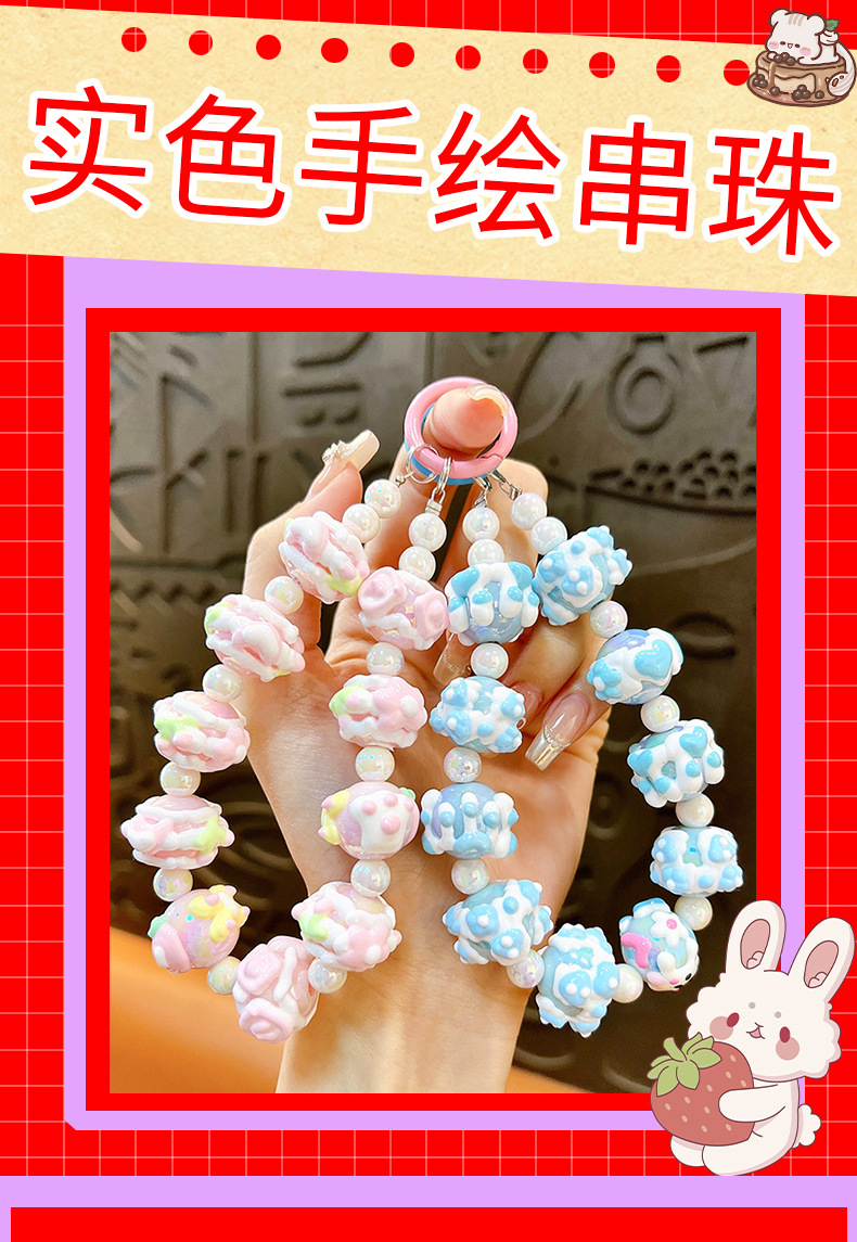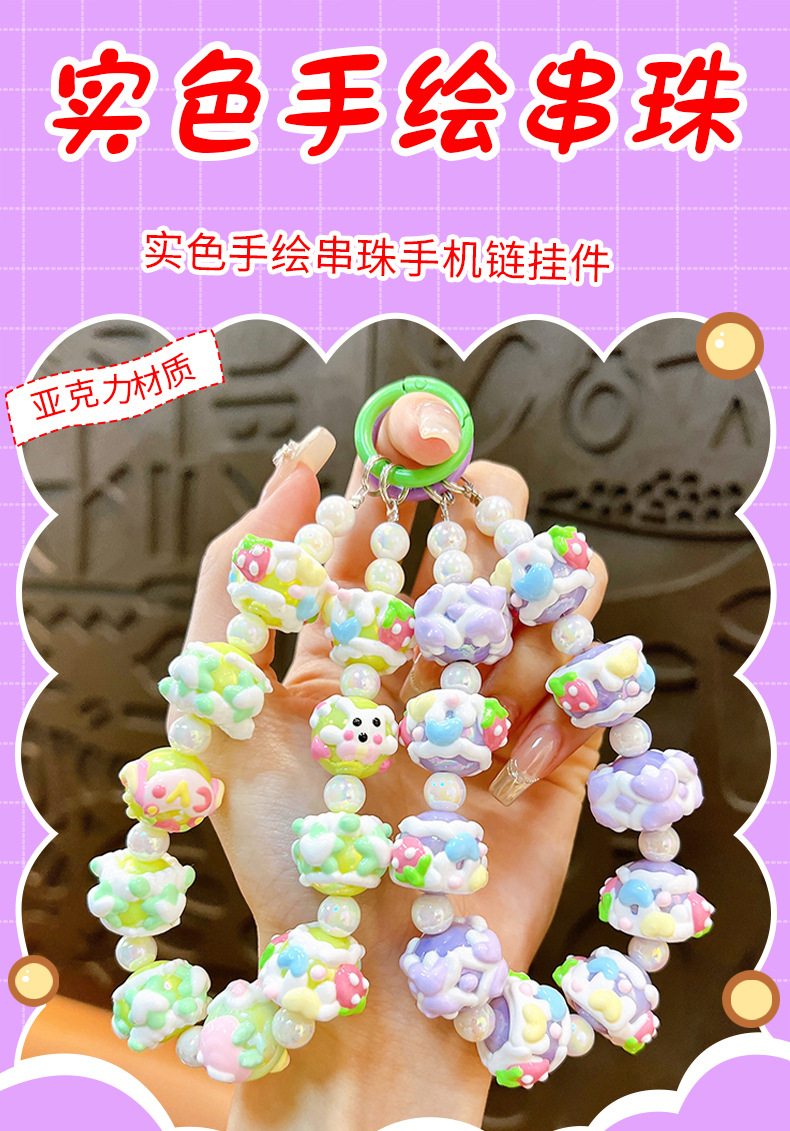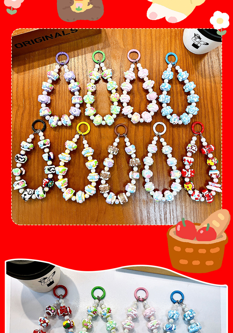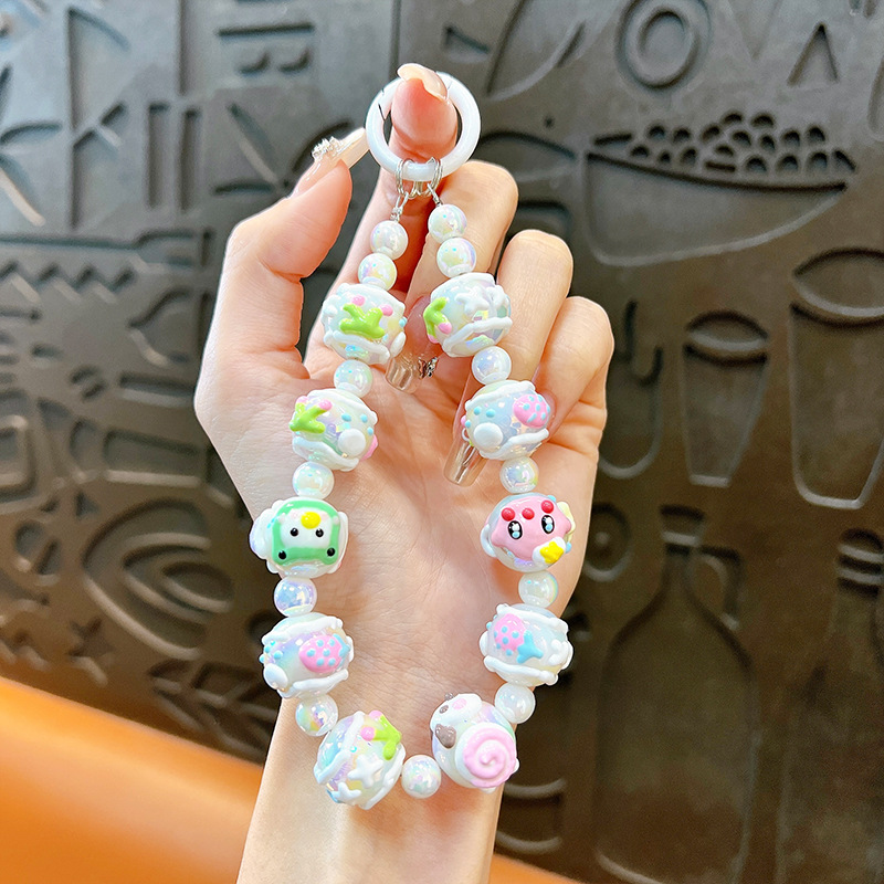 손으로 그린 구슬 휴대 전화 체인 키 체인 귀여운 가방 펜던트 휴대 전화 액세서리 열쇠 고리 공급으로 생방송 소리를 흔들어스토어 가기