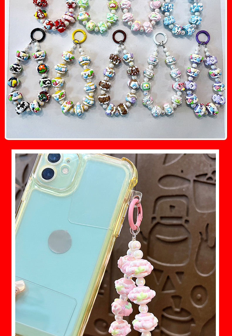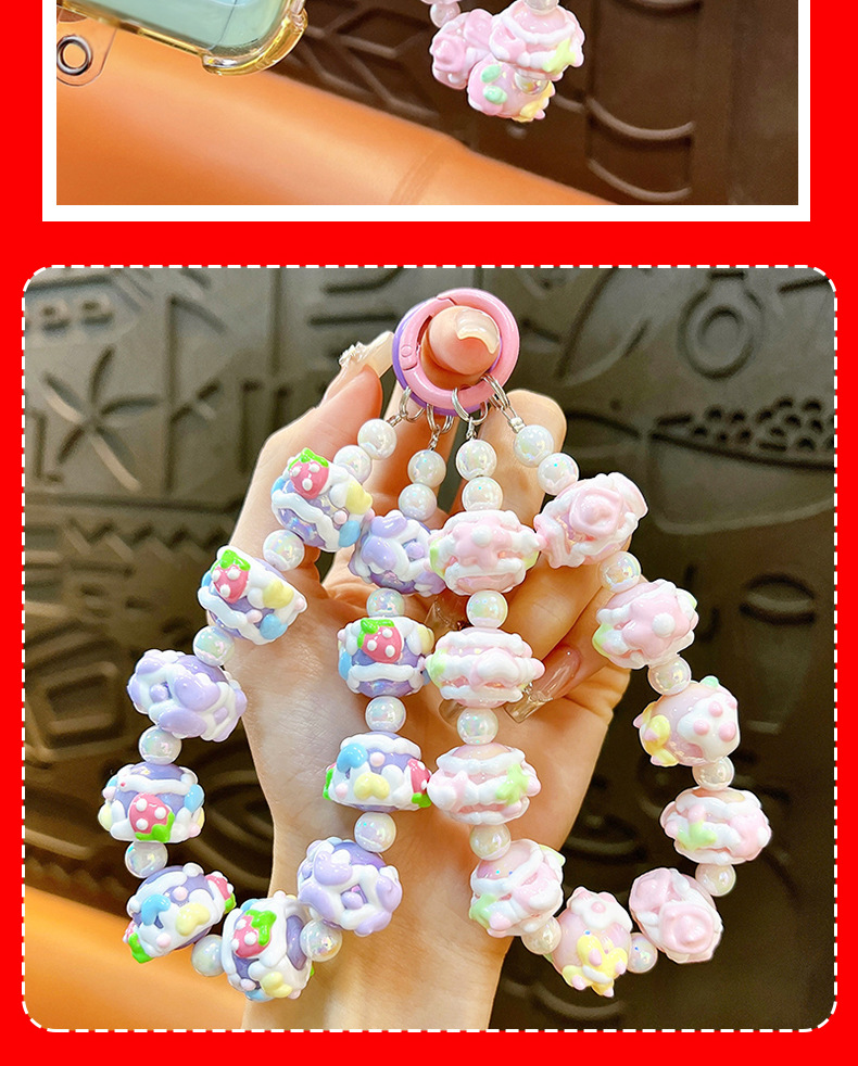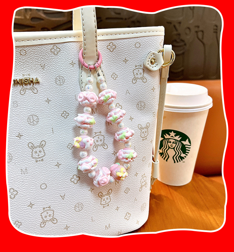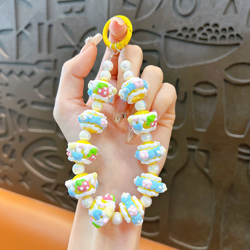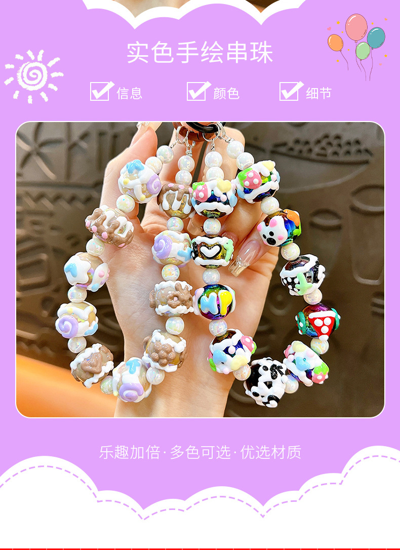 손으로 그린 구슬 휴대 전화 체인 키 체인 귀여운 가방 펜던트 휴대 전화 액세서리 열쇠 고리 공급으로 생방송 소리를 흔들어스토어 가기