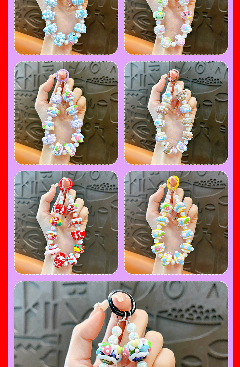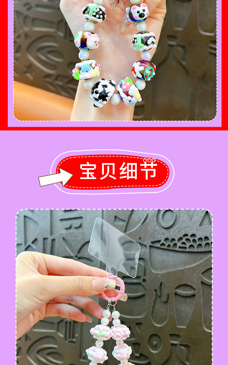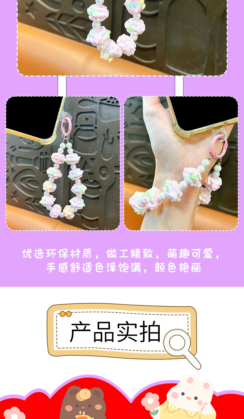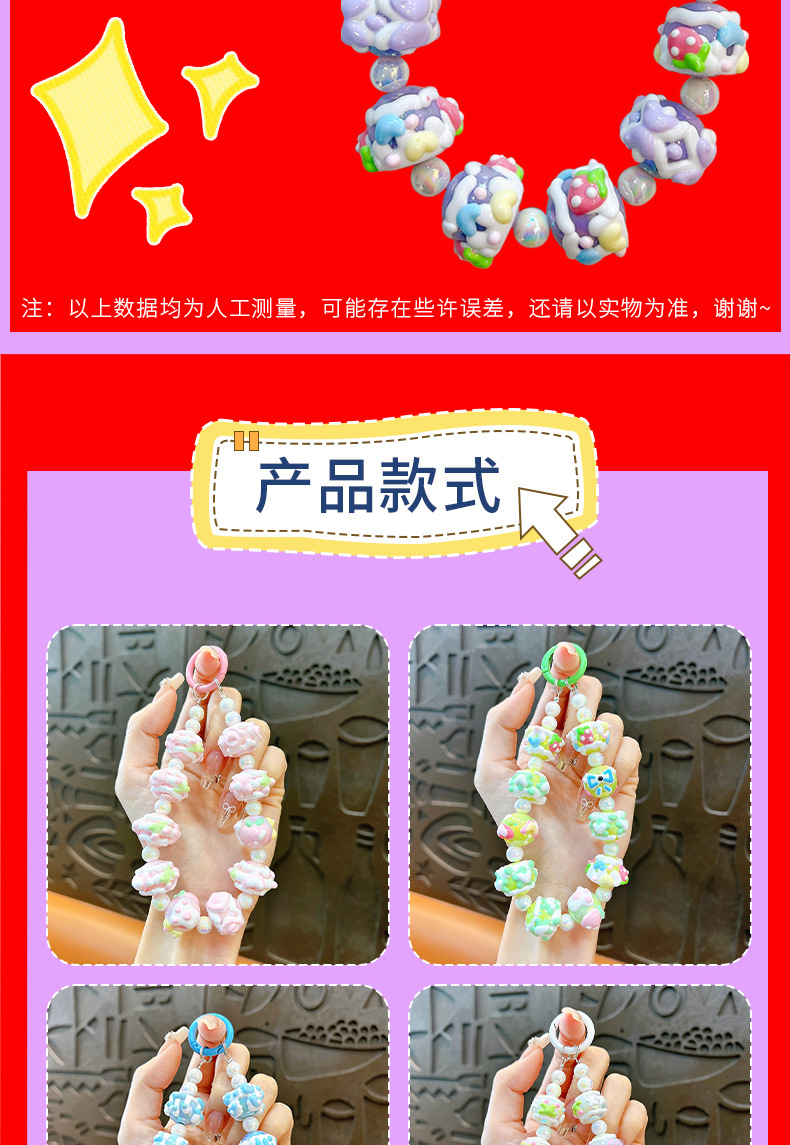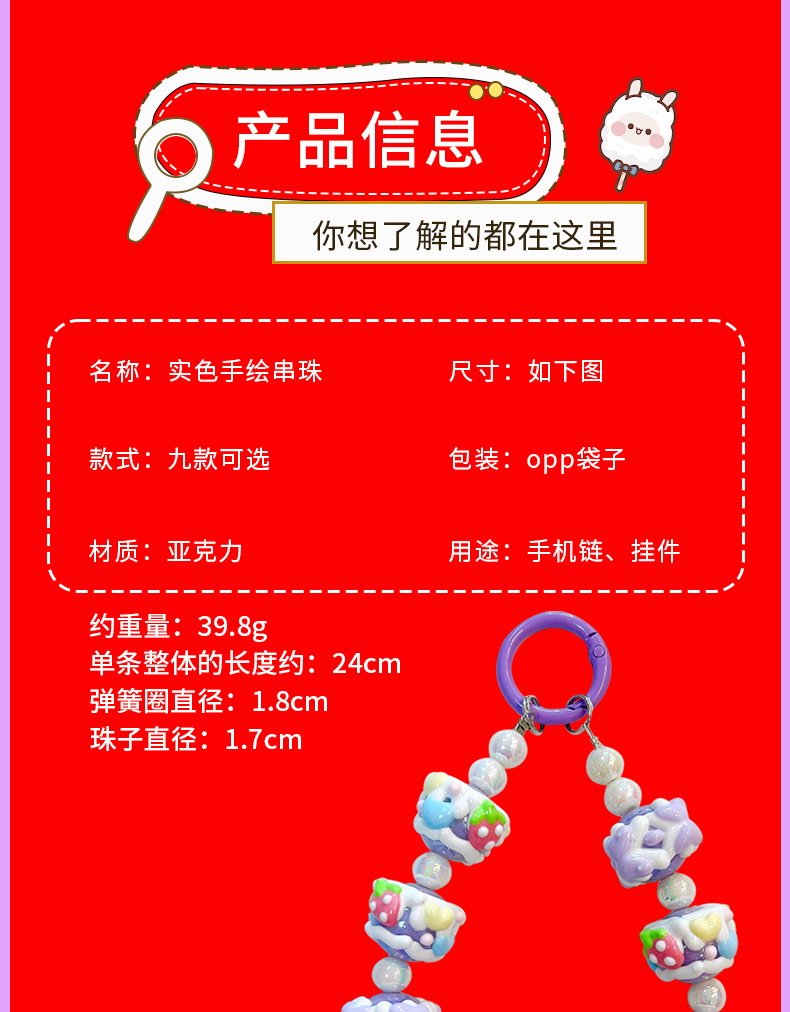 손으로 그린 구슬 휴대 전화 체인 키 체인 귀여운 가방 펜던트 휴대 전화 액세서리 열쇠 고리 공급으로 생방송 소리를 흔들어스토어 가기