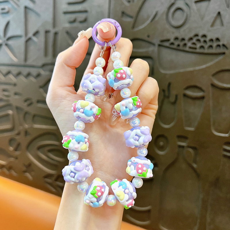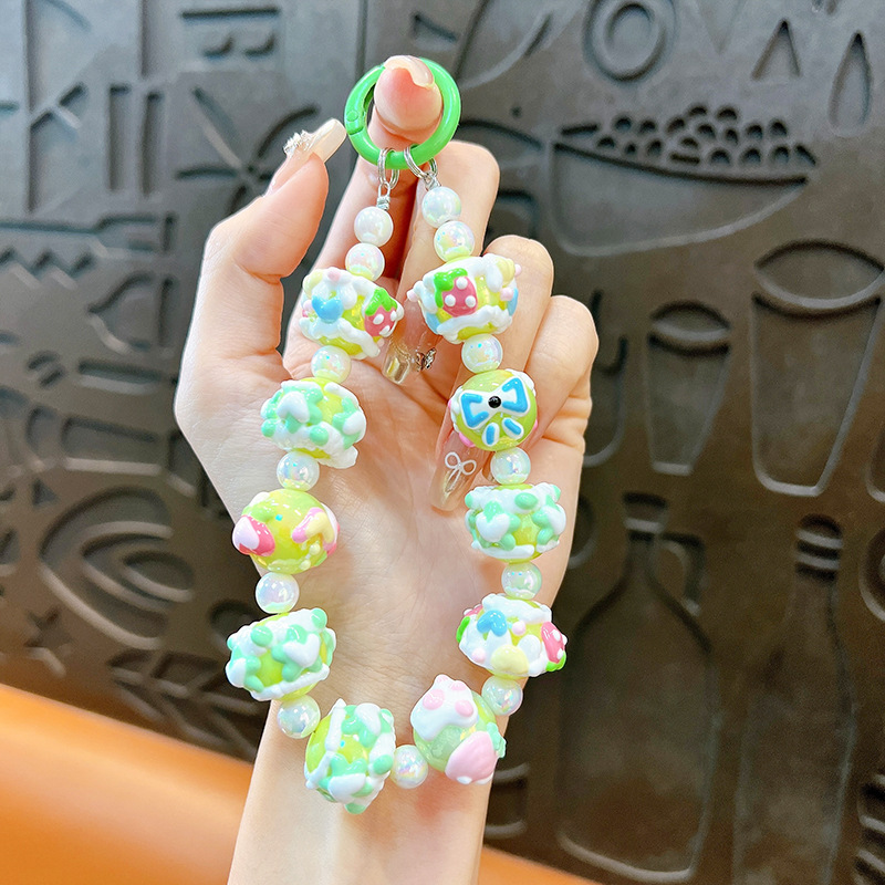 손으로 그린 구슬 휴대 전화 체인 키 체인 귀여운 가방 펜던트 휴대 전화 액세서리 열쇠 고리 공급으로 생방송 소리를 흔들어