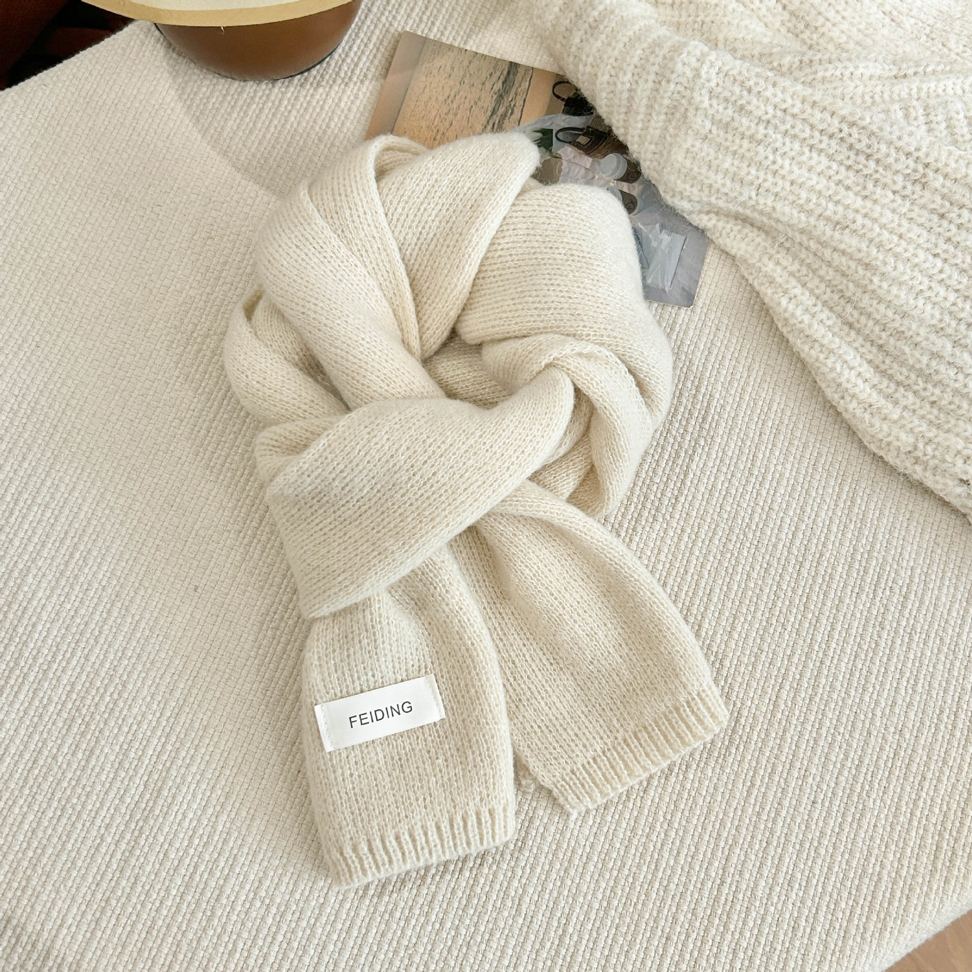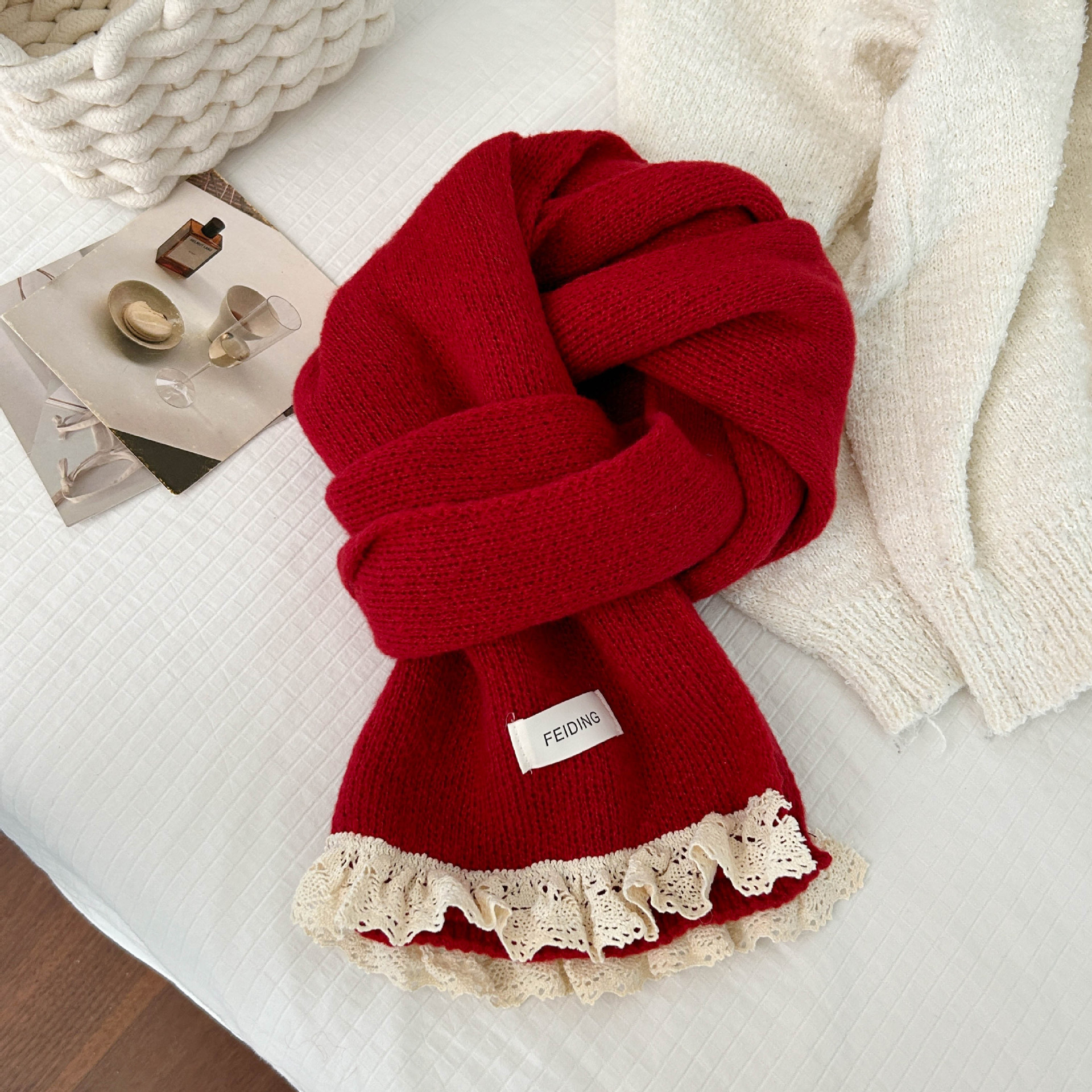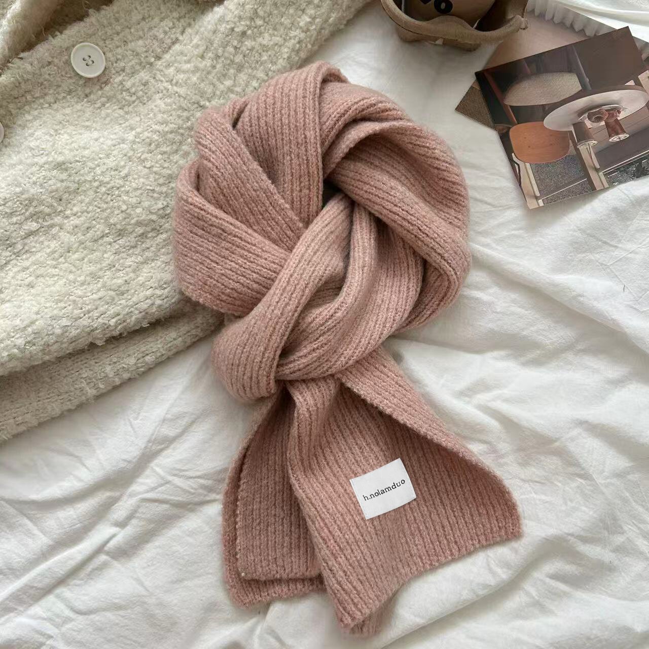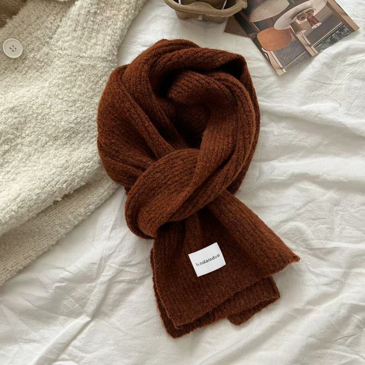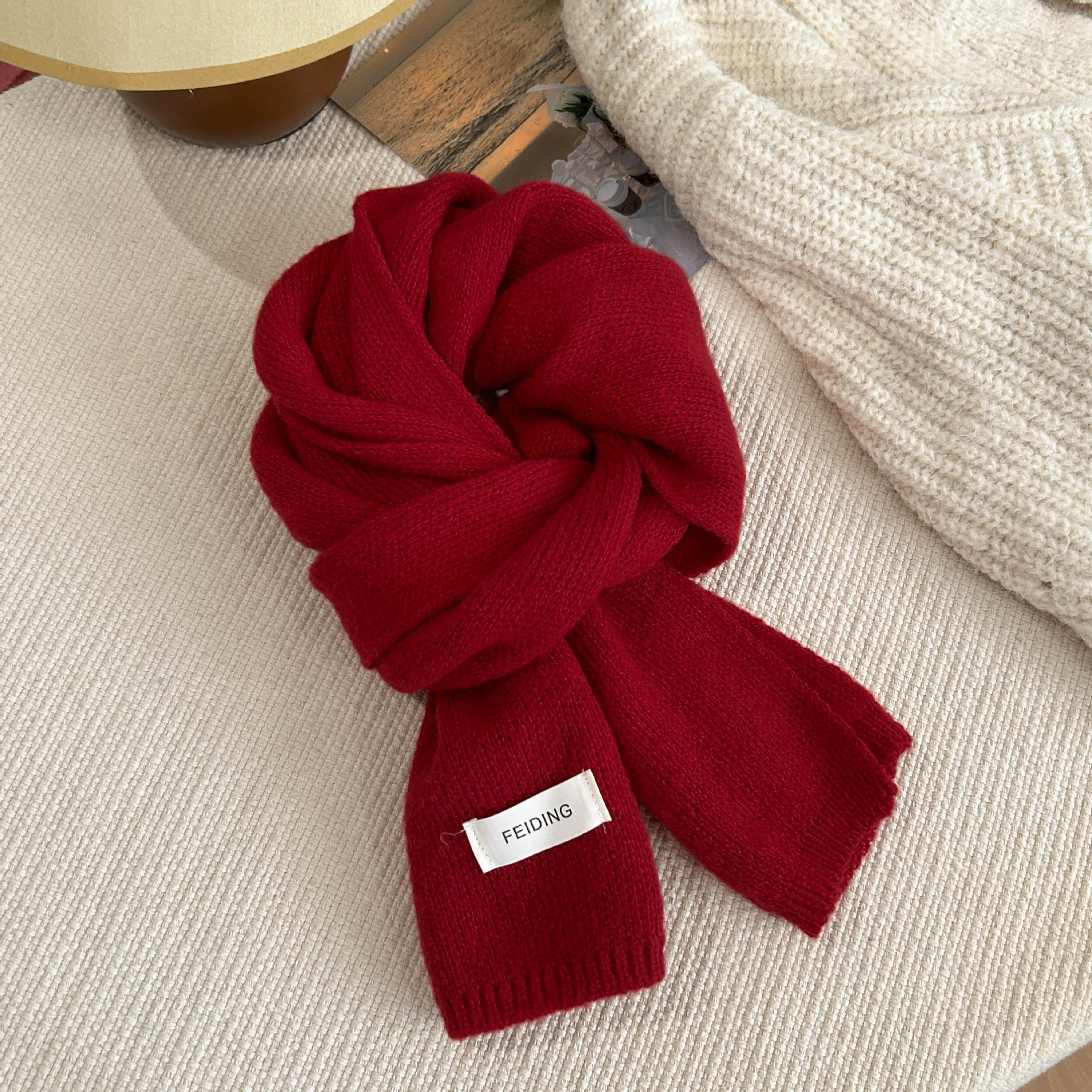 여성용 앙코라 레드 울 스카프 2025 새로운 겨울 다목적 한국 스타일 스카프 솔리드 컬러 따뜻한 니트 대학 스타일스토어 가기
