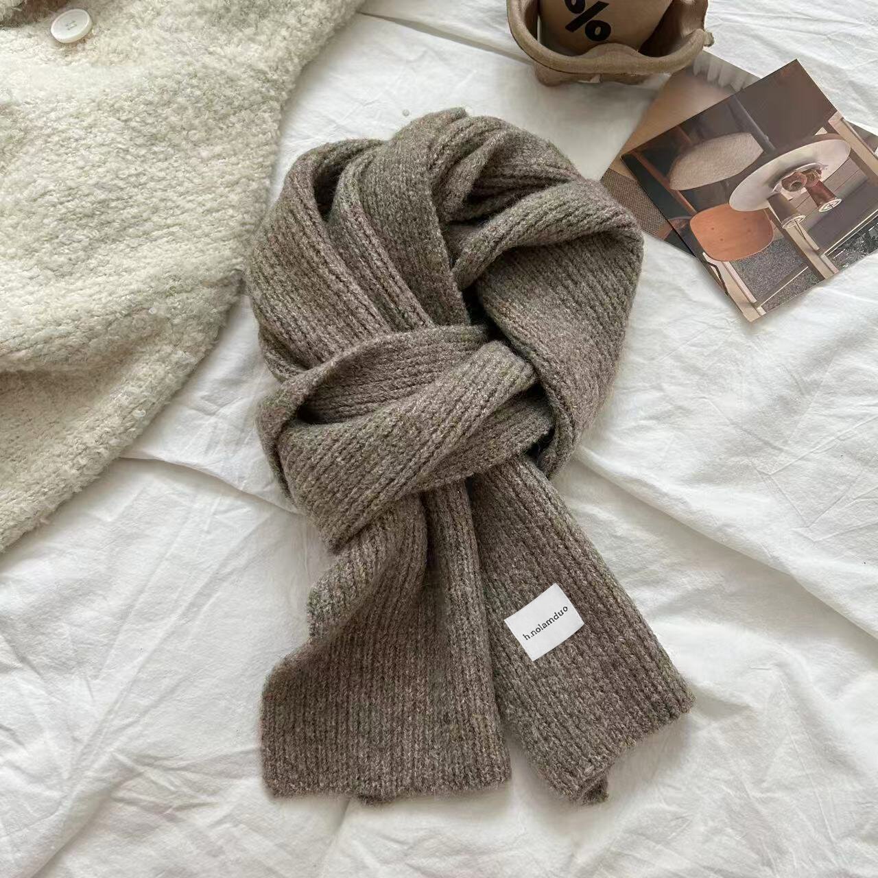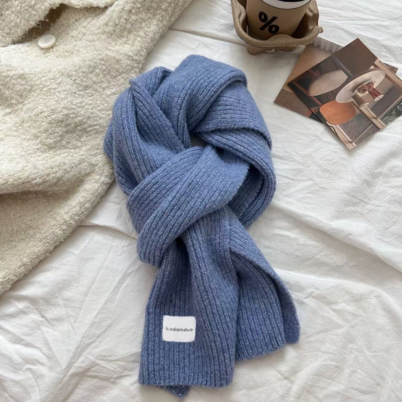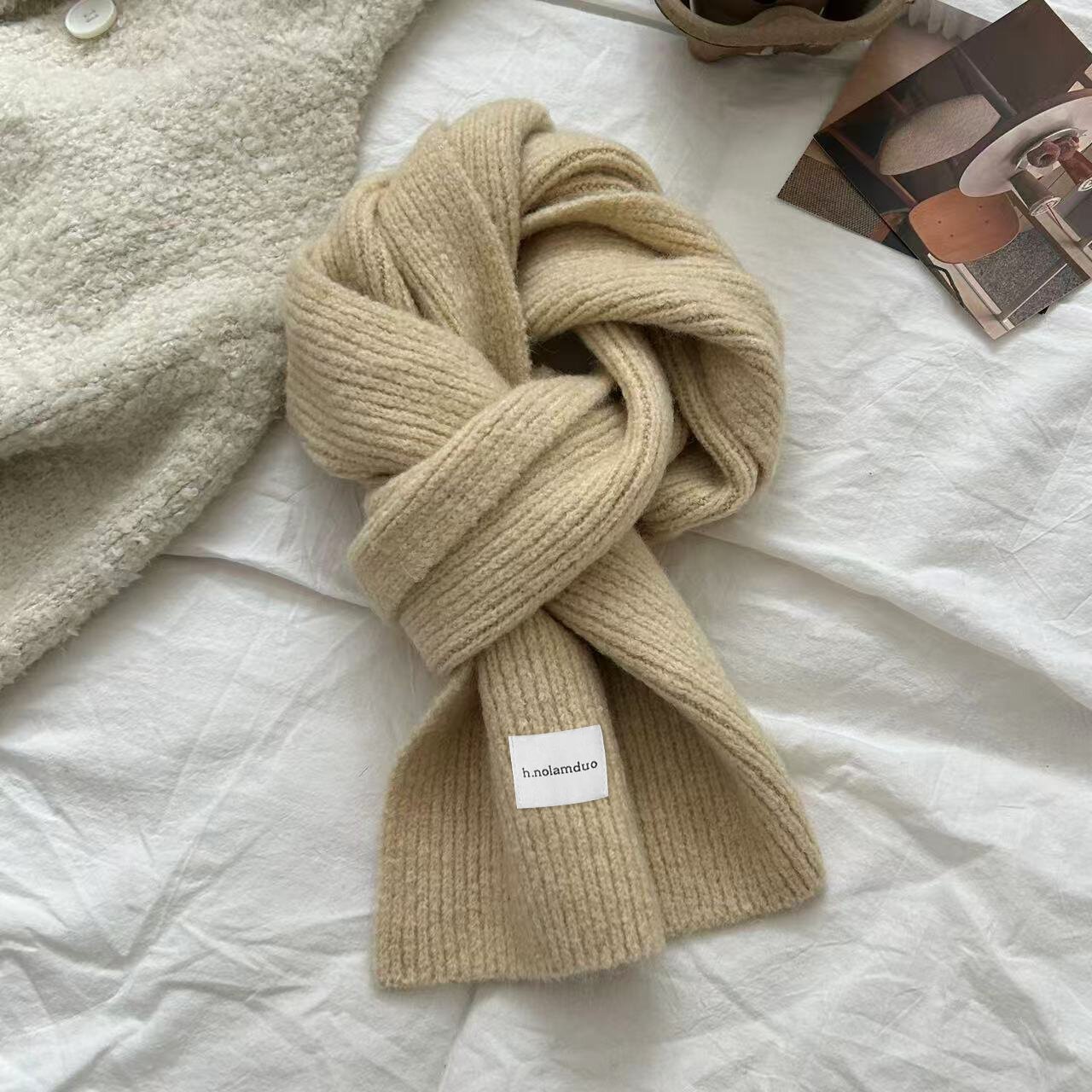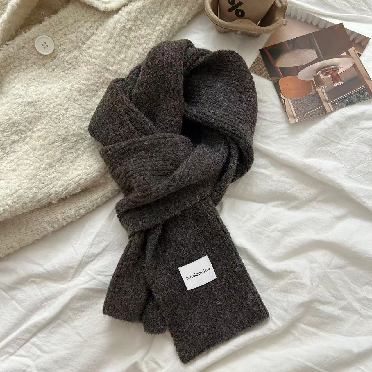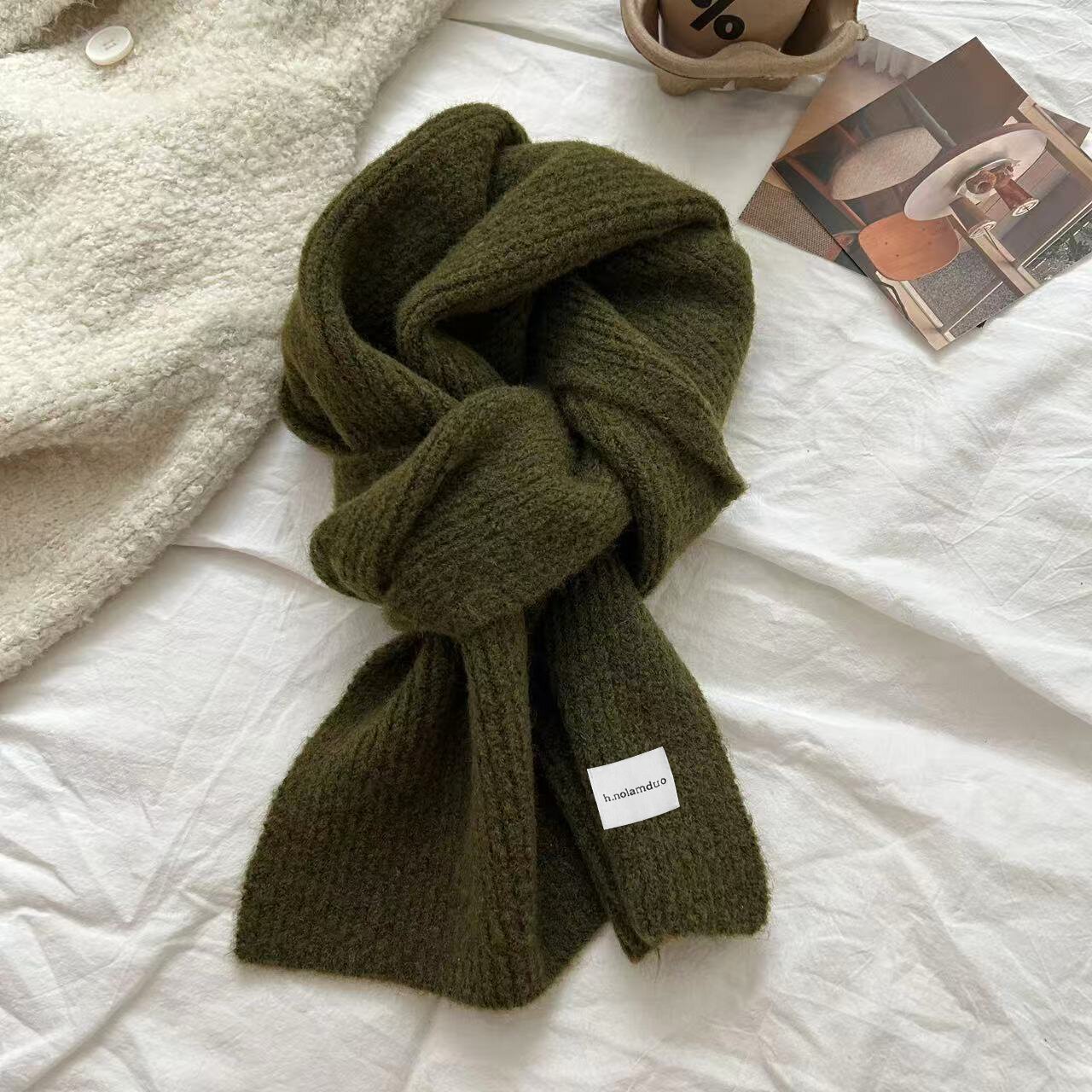 여성용 앙코라 레드 울 스카프 2025 새로운 겨울 다목적 한국 스타일 스카프 솔리드 컬러 따뜻한 니트 대학 스타일스토어 가기